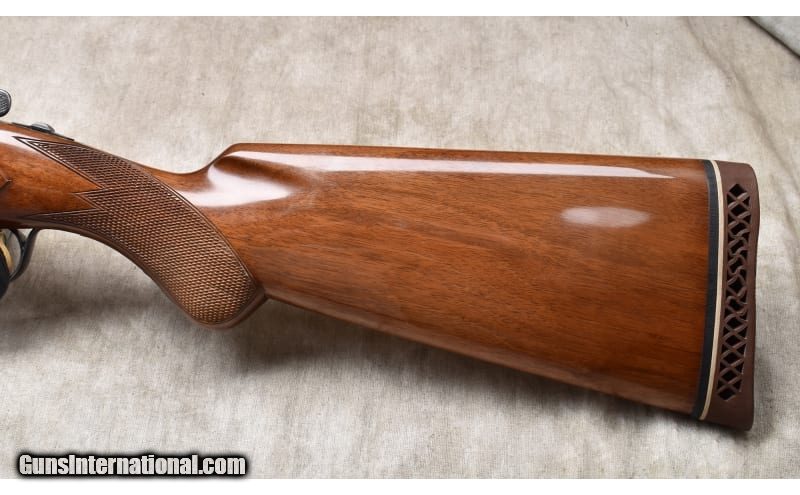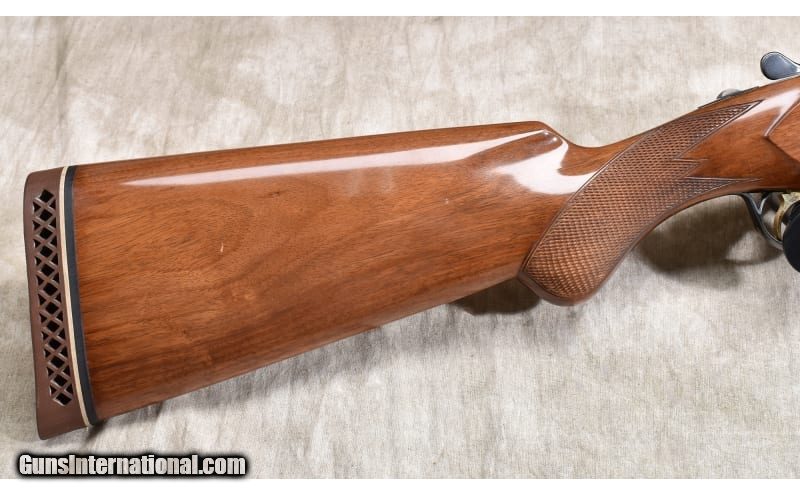 Description: Miroku developed the over/under with Charles Daly just before they began working the Citori for Browning. This one shows the beginnings of that famous Citori and features semi-bevertail fore end, round knob walnut stock, and sharp checkering. The receiver is engraved, and the engraving is filled with gold. 12 Gauge SOLD Chambers: "2 rounds, 2-3/4 inch Metal Condition: Very good. Wood Condition: Very good. Bore Condition: Shiny and bright. Barrels: 30-inch Triggers: Factory single selective trigger. Stock Dimensions: 13-3/4 inch LOP Fore End: Matching checkered walnut. Butt Pad: Ventilated rubber pad. Weight: 7 lb - 8 oz Sights: Ventilated rib with gold bead. Chokes: Fixed Full and Imp Mod Item Location: Rogers |