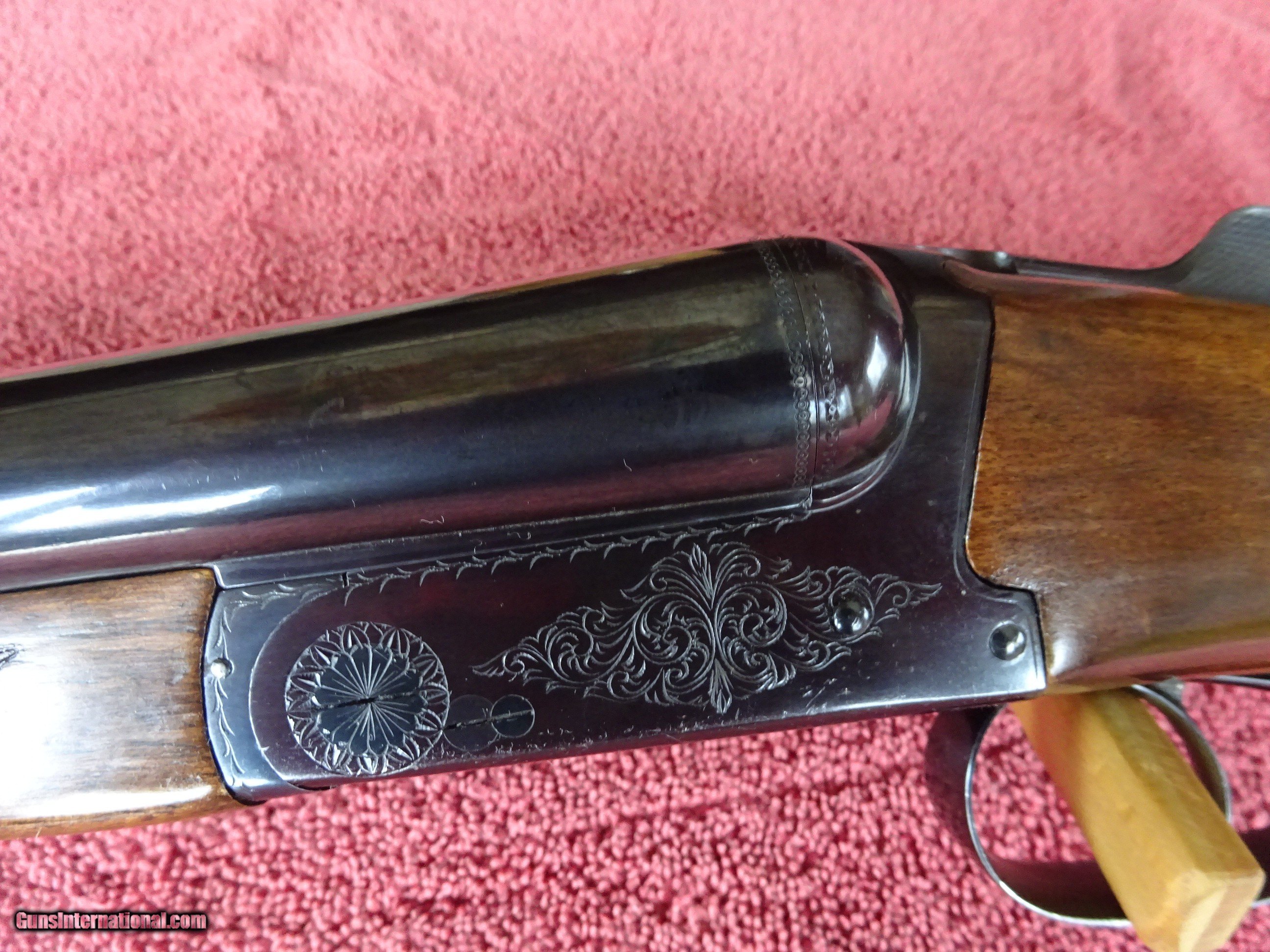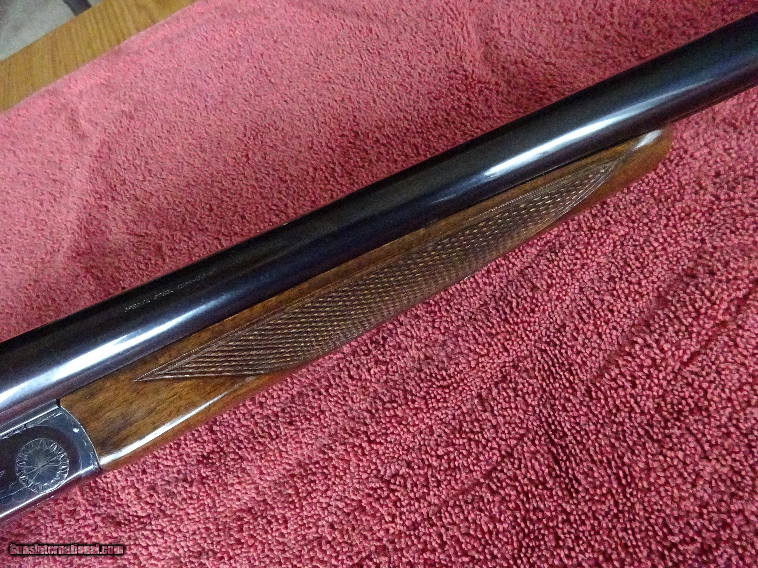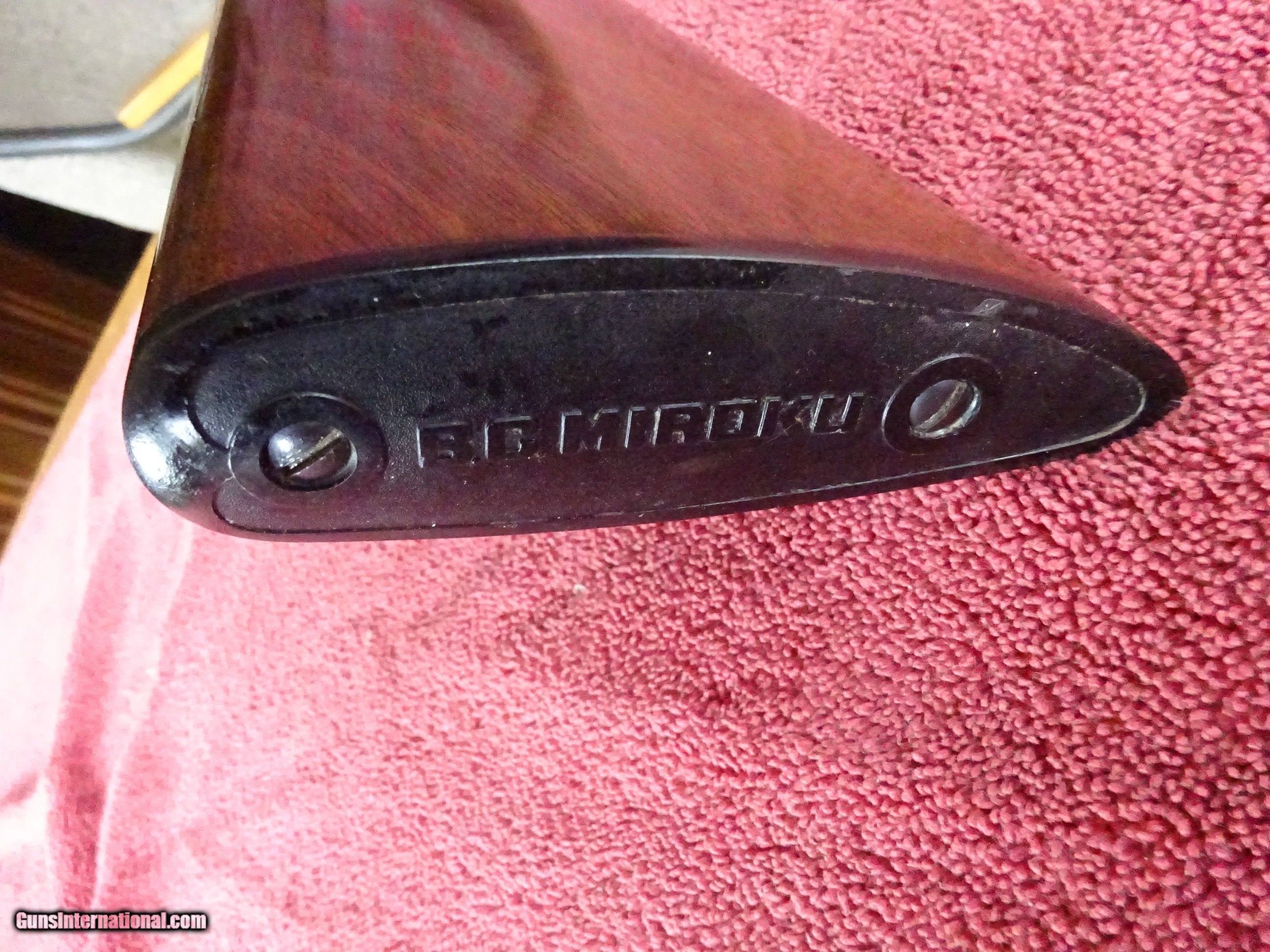 Description: B. C. MIROKU SPORTER, 12 GAUGE SIDE X SIDE. (MUCH LIKE A BROWNING BSS ONLY DOUBLE TRIGGERS, SPLINTER FOREARM AND A POUND LIGHTER) 26" BARRELS, IMCYL. AND MODIFIED, EXCELLENT BLUE, MIRROR-PERFECT BORES, SINGLE BEAD SIGHT, AUTOMATIC EJECTORS. BOXLOCK FRAME WITH SCROLL ENGRAVING PATTERN, ENGRAVED SCREWS. STRAIGHT GRIP STOCK, SPLINTER FOREARM, NEAR-PERFECT CHECKERING AND WOOD FINISH. MIROKU MARKED BUTTPLATE, 1 1/2" X 2 1/2" X 14 1/4", 6 POUNDS 8 OUNCES. MADE BEFORE THE BROWNING BSS OR WINCHESTER 101 MODELS IN THE SAME FACTORY IN JAPAN. THIS IS A MUCH NICER HANDLING GUN THAN A BSS. SAME LOOK AND QUALITY. SCARCE GUN MADE IN THE 1960s. $2250.00 + $70.00 Insured shipping to an FFL address. Layaway is available. See all Pats gun listings on this site! We also have hundreds of ORIGINAL gun company advertising & memorabilia pieces available for sale on our site SPORTINGCOLLECTIBLES. We have no reprints or reproductions. Email for more information. If you need to call, morning or evening is best, and please note the Seller's Inventory number. SOLD Curio/Relic: Yes |