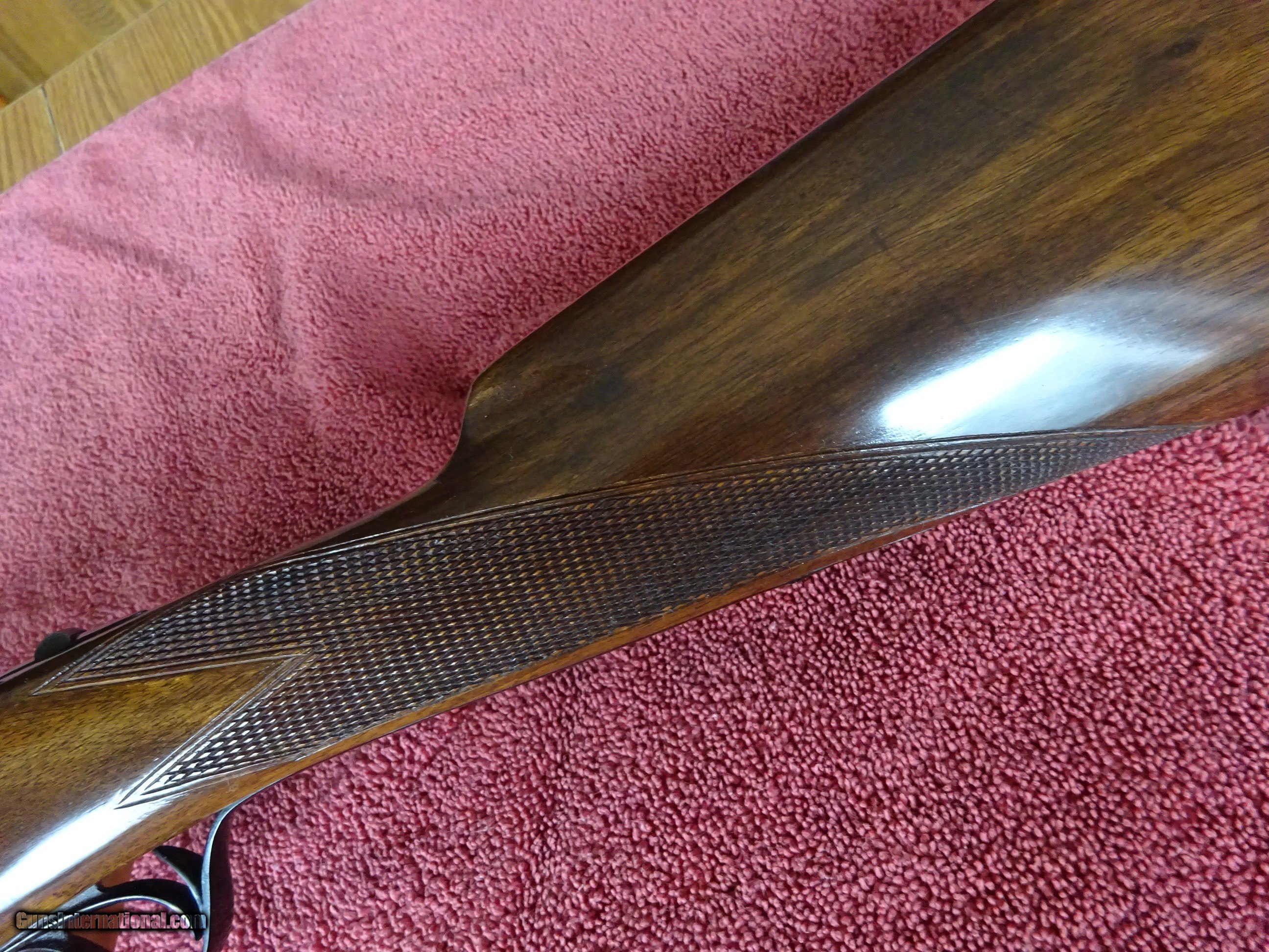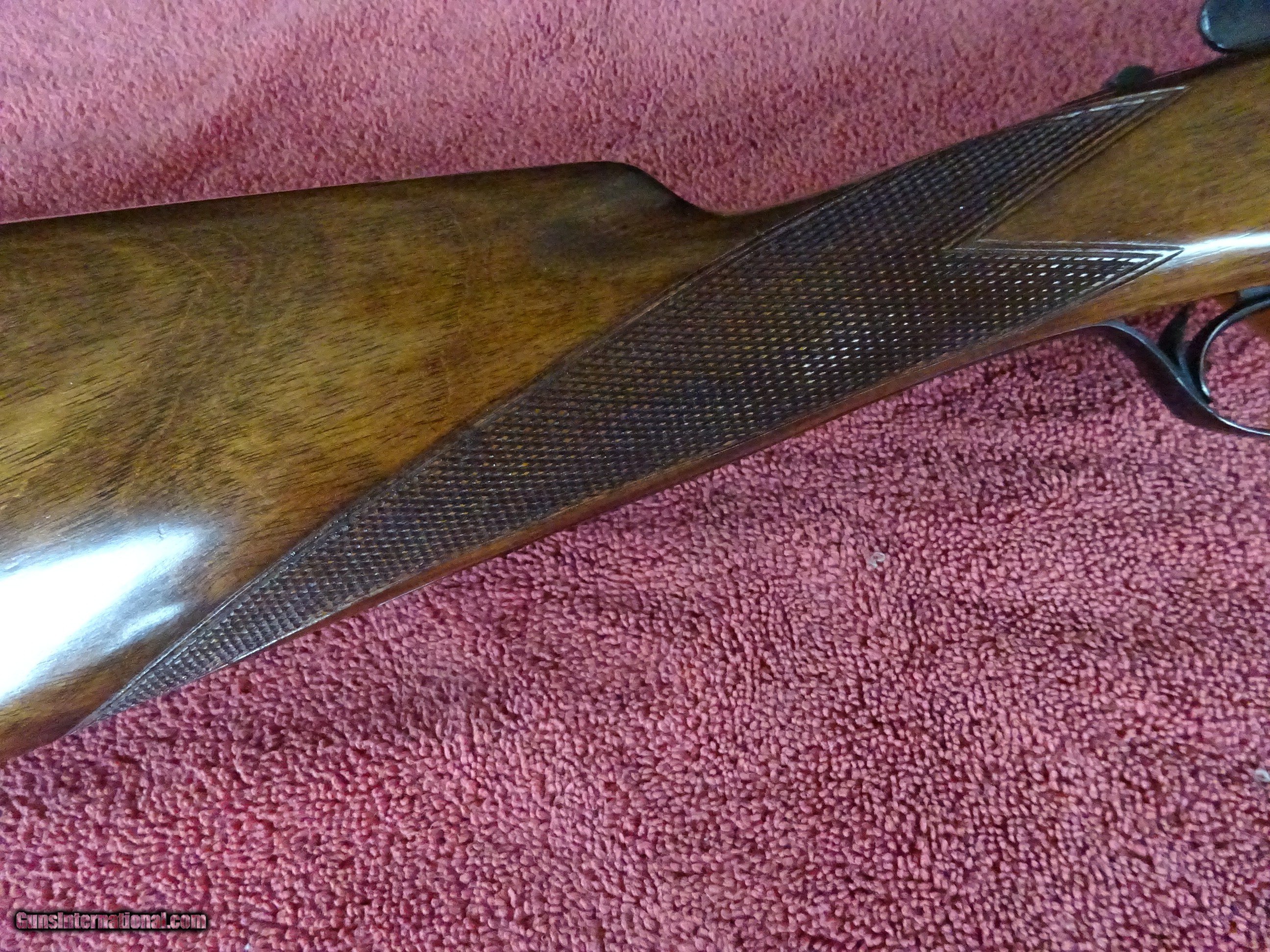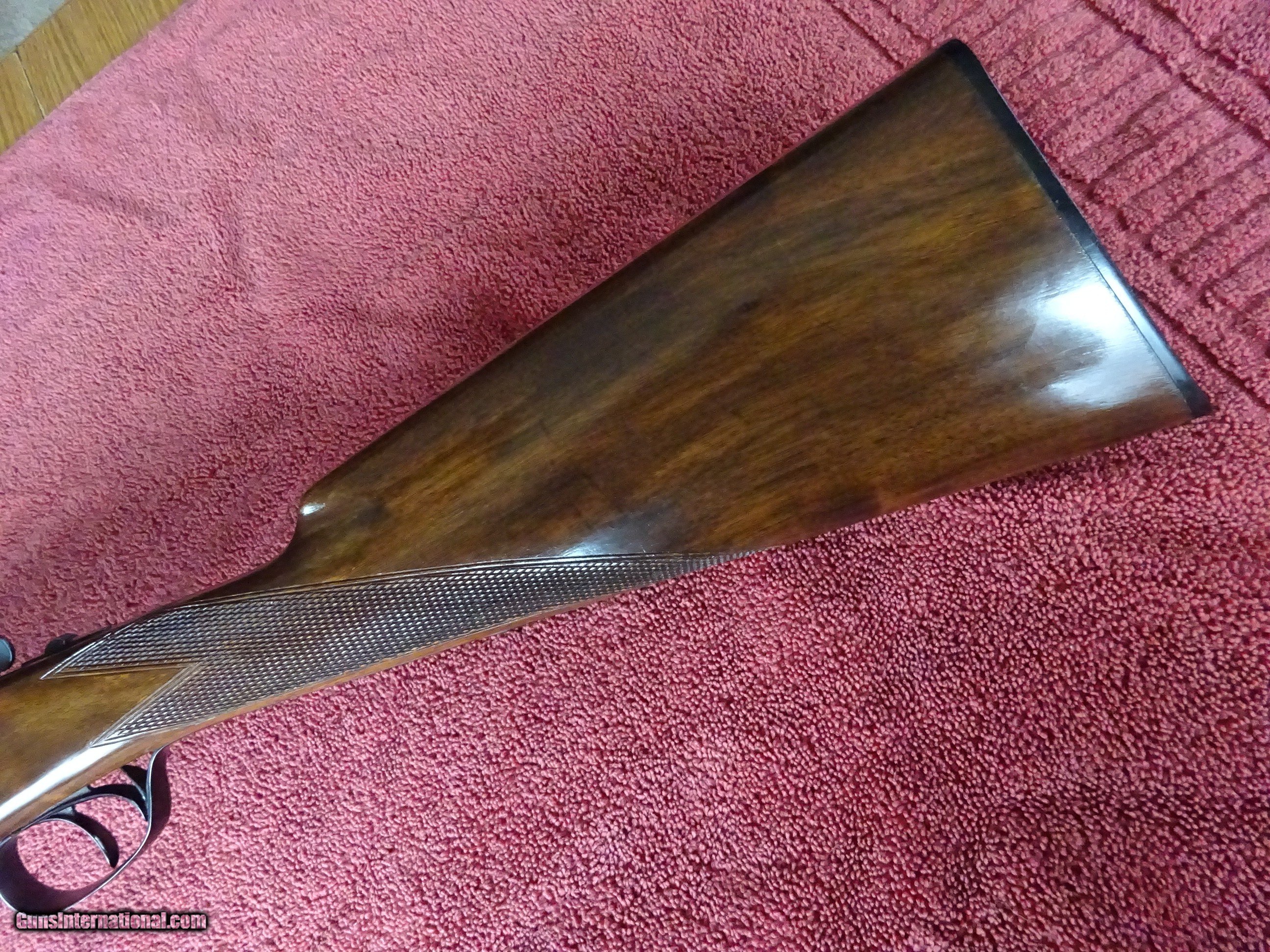 Description: B. C. MIROKU SPORTER, 12 GAUGE SIDE X SIDE. (MUCH LIKE A BROWNING BSS ONLY DOUBLE TRIGGERS, SPLINTER FOREARM AND A POUND LIGHTER) 26" BARRELS, IMCYL. AND MODIFIED, EXCELLENT BLUE, MIRROR-PERFECT BORES, SINGLE BEAD SIGHT, AUTOMATIC EJECTORS. BOXLOCK FRAME WITH SCROLL ENGRAVING PATTERN, ENGRAVED SCREWS. STRAIGHT GRIP STOCK, SPLINTER FOREARM, NEAR-PERFECT CHECKERING AND WOOD FINISH. MIROKU MARKED BUTTPLATE, 1 1/2" X 2 1/2" X 14 1/4", 6 POUNDS 8 OUNCES. MADE BEFORE THE BROWNING BSS OR WINCHESTER 101 MODELS IN THE SAME FACTORY IN JAPAN. THIS IS A MUCH NICER HANDLING GUN THAN A BSS. SAME LOOK AND QUALITY. SCARCE GUN MADE IN THE 1960s. $2250.00 + $70.00 Insured shipping to an FFL address. Layaway is available. See all Pats gun listings on this site! We also have hundreds of ORIGINAL gun company advertising & memorabilia pieces available for sale on our site SPORTINGCOLLECTIBLES. We have no reprints or reproductions. Email for more information. If you need to call, morning or evening is best, and please note the Seller's Inventory number. SOLD Curio/Relic: Yes |