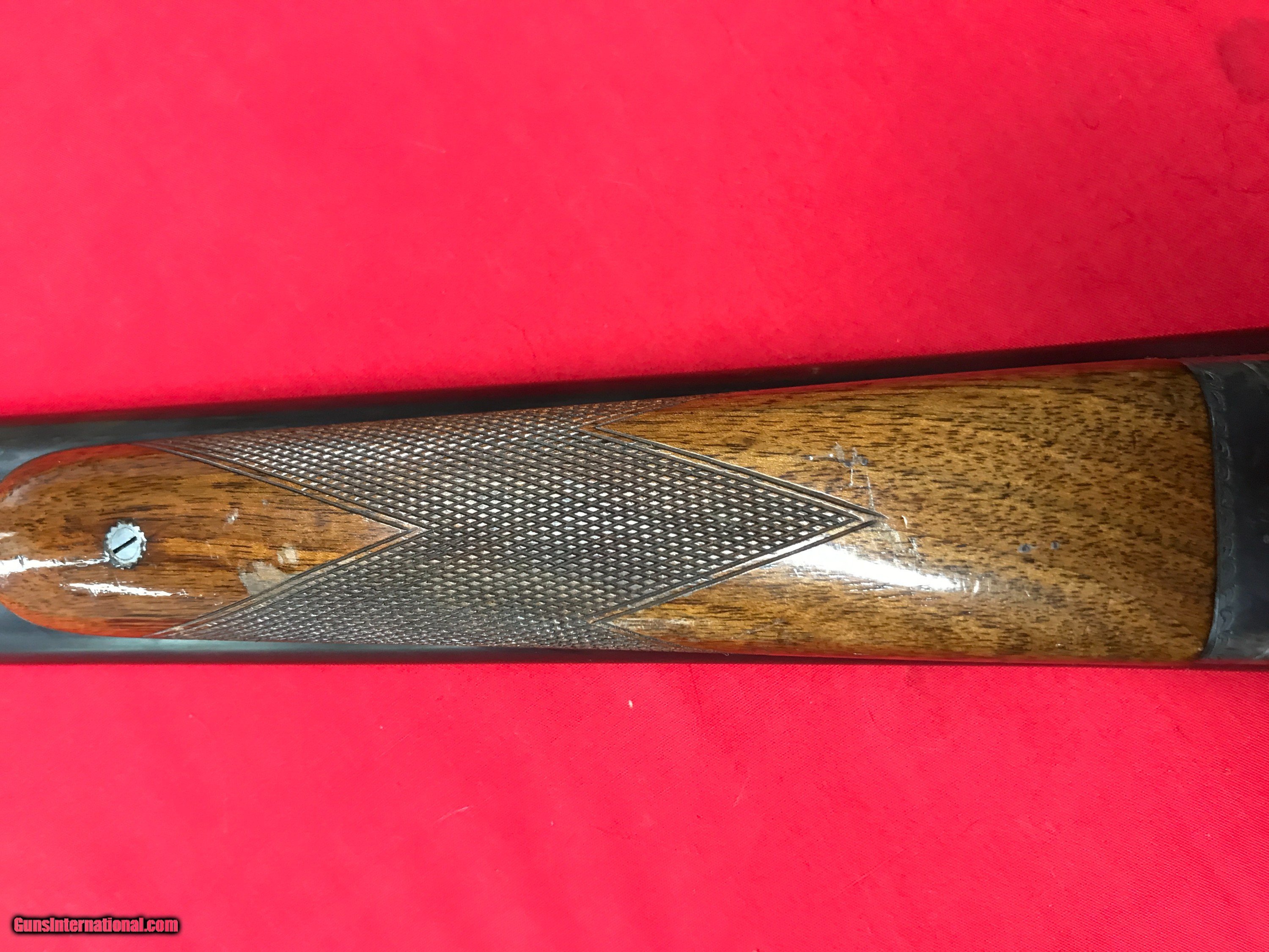 Description: This fine shotgun was made in Japan by Miroku , circa 1970…The 28" barrels are choked cylinder and full. 2 ¾" chambers, with excellent bores…This is an extractor gun with double triggers…15" length of pull over vented pad. Drops are 1 ¾ and 3 inches…Fine checkering at wrist and forend…Weighs just under seven pounds…Overall fine condition, with dark case colors. There is a crease in the wood on the left side by the stock head. And there is evidence of light pitting and blue touch up on the barrels…If this gun reminds you of the Browning BSS, it is because the Browning is an enhanced copy of the Miroku 500…Ship to ffl or c&r… SOLD Curio/Relic: Yes |