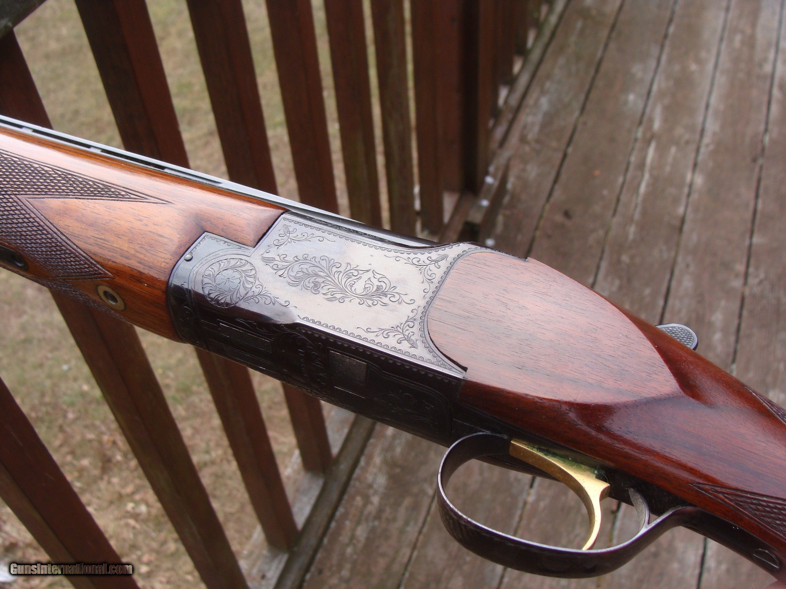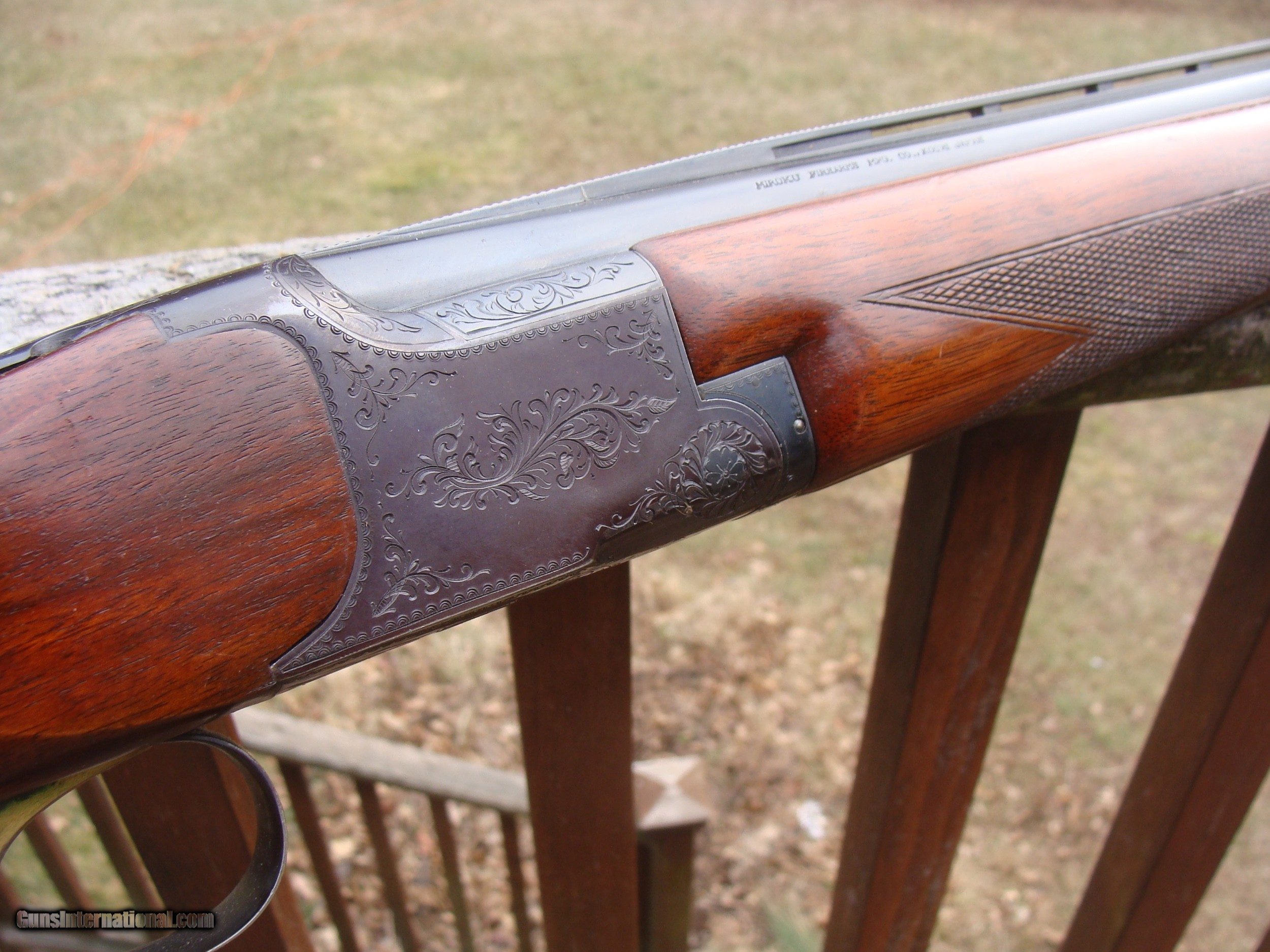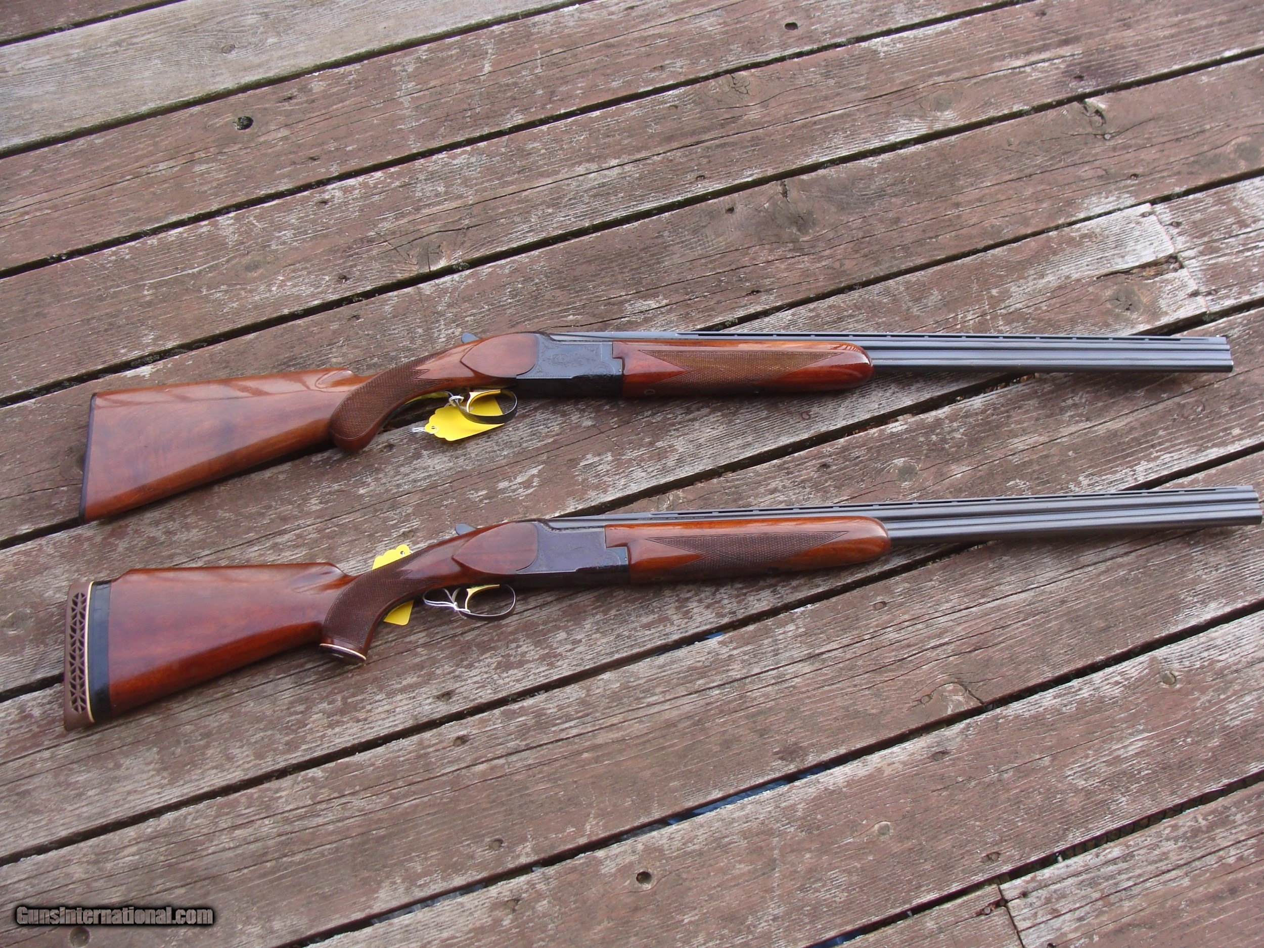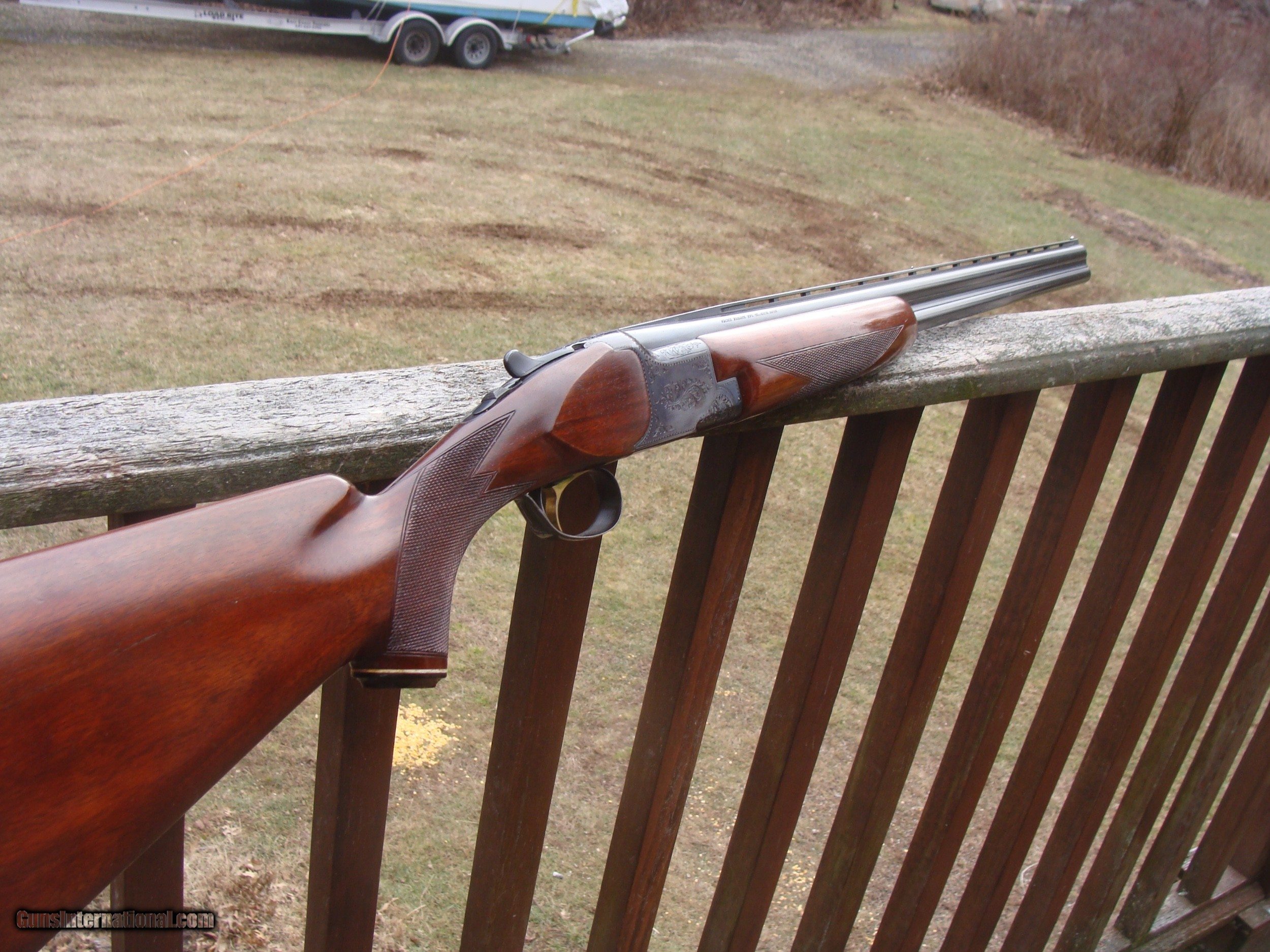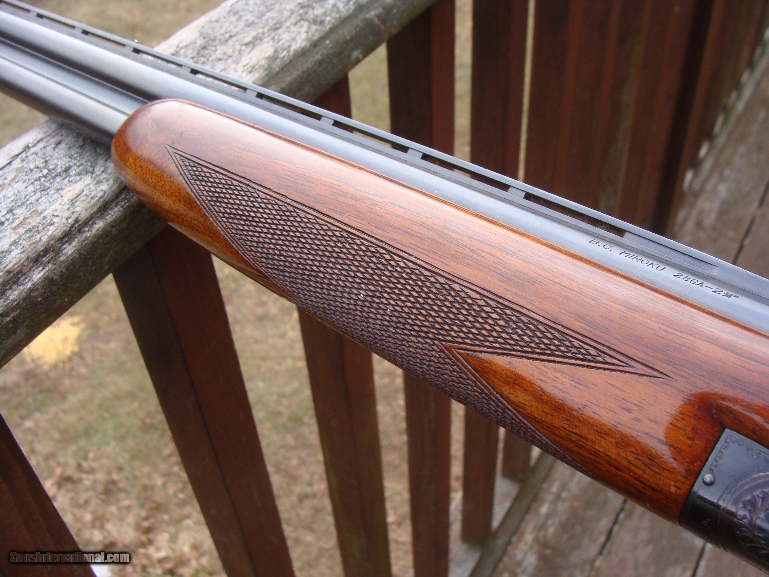 Description: We are always excieted to get in a sub guage Miroku or Charles Daly Miroku (same gun...this one does not have the Charles Daly marking but they are the same, made in the same plant in Japan as are the Browning Citori's) Handsom rich redish browns walnut stock set with excellent sharp hand checkering, single H safety (same as Browning), single trigger with ejectors. If this were marked Browning it would be thousands more. Stock shortened for a jr shooter then addeded pad and spacers to 13 7/8 LOP to end of pad. Mirror bore, not dents or ding and no meaningful marks except some scratching and loss of finish on trigger guard. Nice slender delicate wrist, a joy to handle. Top lever is strait and gun locks up perfeclty. Note: in some of the pics are two guns; the 2d gun without the recoil pad and spacers is a 410 (Marked Charles Daly/ Miroku) The 410 is also listed here on Gunsinternational....BUY BOTH...THE 410 IS $ 100.00 LESS WE ARE AN FFL 01 IN THE NORTHEAST WHERE MANY FINE US MADE GUNS WERE PRODUCED. WE OFTEN GET FAIRLY HARD TO FIND AND OFTEN LIGHTLY USED AND UNIQUE GUNS. WE SOMETIMES GO CONSIDERABLE DISTANCES TO GET THESE. WE PAY FAIR PRICES FOR THEM AND PRICE THEM FAIRLY, USUALLY BELOW WHAT OTHERS ARE ASKING. OUR MARGINS ARE TYPICALLY VERY MODEST SUCH THAT WE DO NOT HAVE ROOM TO NEGOIATE PRICES IN MOST CASES. WE HAVE OVER 1500 SALES ON ALL SITES WITH AN A+ RATING ON ALL (WE ALSO KEEP AN INVENTORY OF OLDER PERIOD CORRECT SCOPES; CALL WITH NEEDS) WE MOSTLY PICK VERY CLEAN GUNS, PRICE THEM FAIRLY AND WORK WITH MODEST MARGINS WE ARE HAPPY TO TAKE CONSIGNMENT GUNS AND COLLECTIONS OR WILL BUY YOURS OUTRIGHT. WE SOMETIMES ARE EMPLOYED FOR ESTATE PURPOSES AND VALUATIONS. CT RESIDENTS MUST CONTACT US TO UNDERSTAND OUR IN STATE TRANSFER POLICIES. WE CAN TAKE A CREDIT CARD HOWEVER THERE IS A 3% ADD ON BASED ON THE TOTAL FOR USE OF A CARD. IT IS ALWAYS THE BUYERS RESPONSIBILITY TO GET US A COPY OF YOUR RECEIVING FFL'S LIC AND WE REQUIRE A COPY OF YOUR PHOTO ID BEFORE THE GUN SHIPS YOU MUST CALL YOUR FFL.WE DO NOT CALL FOR YOU. LAYAWAY PURCHASES NOT COMPLETED OR ANY RETURNED ITEM UNLESS NOT AS DESCRIBED ARE SUBJECT TO A 10% RELISTING/RESTOCKING FEE AND MUST BE RETURNED WITH NO MARKS OR SCRATCHES, SENT BACK INSURED, PRIORITY SIGNATURE REQUIRED WE DO NOT OFFER AN INSPECTION PERIOD PER SE HOWEVER GUNS MAY BE RETURNED IF NOT EXACTLY AS DESCRIBED UNDER NO CIRCUMSTANCE MAY ANY GUN TO BE RETURNED HAVE BEEN REMOVED AT ANY TIME FROM RECEIVING FFL DEALERS PREMISIS AND RETURNS MUST 1ST BE APPROVED BY US IN WRITING. Shipping is $ 45.00 to any location in the lower 48 states. SOLD |