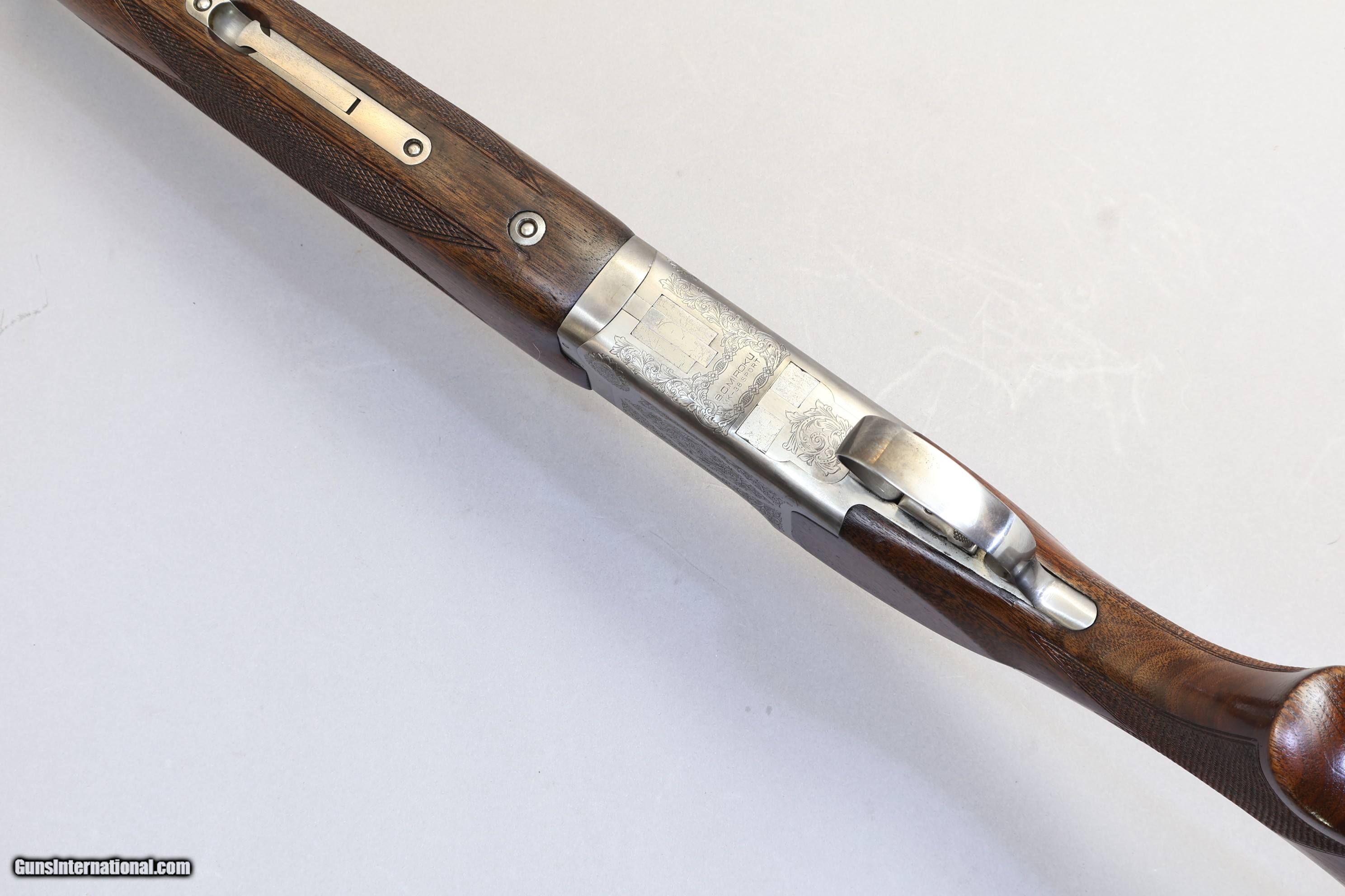 Description: Miroku MK38 Sport Over/Under, 12 Ga, 30" Barrels 2 1/2" Chambers | Left: Cyl / Right: Mod | Overall Length 47" Miroku MK38 Sport Over/Under, 12 Ga, a Japanese-made sporting over/under shotgun built with 30" barrels, 2 1/2" chambers, and a ventilated parallel rib. It features a wood stock with a pistol grip and a two-choke setup (Left: Cylinder; Right: Modified) for versatile field performance. Overall condition is really good to excellent. Wood is an appealing deep brown with very few handling marks. There is a very small indent on left hand side of stock, but can only been seen in the right light. Checkering on stock and Schnabel fore end is still in pretty sharp nick. Has it's original Miroku rubber recoil pad. Fore-end had a small crack where wood meets the metal, but this has been professionally repaired and is incredibly difficult to see. The price has been set with this in mind. Barrels are still in great shape with blueing retained, although a little wear towards at the muzzle end but nothing to take away from the overall look of the gun. White bead sight. Slight right cast. Tight break action and ejectors firing well. Dating to 1995 in Japan. LOP 14 5/8", LOP to Wood 13 3/4", DAC 1 1/2", DAH 1 7/8", Cast: Slight Right. Weight 7 2/5 lbs.