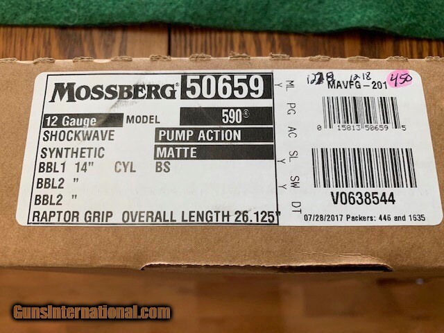 MOSSBERG 590 SHOCKWAVE, 12 GA., 14” BARREL, NEW UNFIRED IN THE BOX
