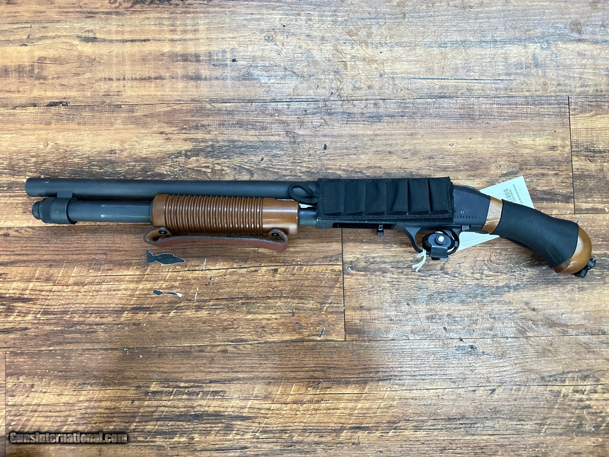 Description: Guns Listing ID: 554683 GREAT CONDITION , CUSTOM GRIP HANDLE. HAS GLUED ON VELCRO FOR SHELL SADDLE SOLD Manufacturer: MOSSBERG Model: 590 Shockwave Condition: Used - Non-Certified Barrels: 14 BARREL Action: PUMP ACTION Gauge Info: 12 GA Finish: 2-tone |