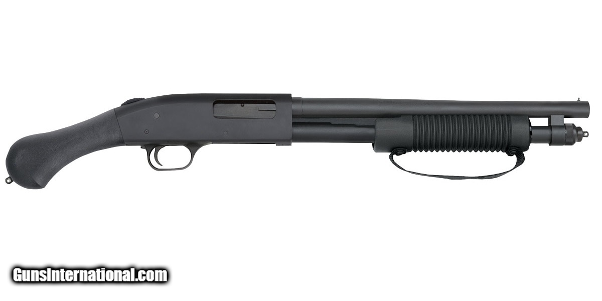 Description: Manufacturer: Mossberg & Sons Model: 590 Shockwave SKU: 50649 Gauge: .410 Bore, 3" Chamber Capacity: 6 Rounds Barrel Length: 14.375" Heavy-Walled, Matte Blued Sight: Bead Choke: Cylinder Bore Stock:?Raptor Grip / Corn Cob Forend w/ Strap Weight: 4.24 lbs Length: 26.37" The Mossberg 590 Shockwave .410 Bore firearm is the pinnacle of home defense firearms. This weapon comes from the factory with a 14" barrel, and a Shockwave Raptor bird?s head grip for maximum maneuverability. The Raptor grip is uniquely shaped to minimize recoil. The overall length is just over 26 inches, making it fully compliant within the terms of ?firearm?, this is not a short-barreled shotgun and does not fall under Class 3/NFA firearms under federal law. The Mossberg 590 Shockwave feaures dual shell extractors, ambidextrous top-mounted polymer safety, steel-to-steel lockup of barrel to receiver, twin action bars for non-binding pump action, sling swivel point on the magazine cap, and open bottom loading port for a quick visual magazine check. SOLD |