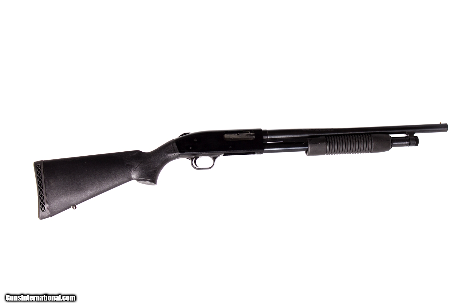 MOSSBERG 500 HOME DEFENSE 12 GAUGE 18.75 BARREL CYLINDER CHOKE GOLD BEAD SIGHT BLACK SYNTHETIC STOCK 14.5 INCH LOP.This gun is in excellent condition and is covered by Dury's Lifetime Warranty.