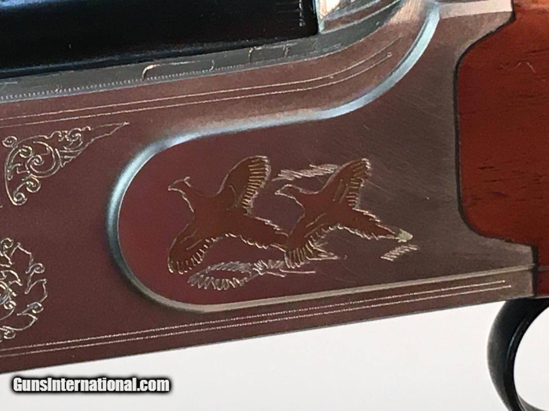 Description: This Mossberg Silver Reserve 12 Guage O/U sports 23/4-3" chambers. It is field ready and although it has been hunted it is has been well cared for. The bores are very clean. smooth and shiny. No pits. The O/U combines excellent accuracy and performance with Single Select trigger. The silver engraving is handsome especially when paired with the gold inlaid scene of flushing peasants. The gun is designed to fit like a glove bringing you instinctively onto target. Due to back surgeries I am forced to sell this gun.SOLD PENDING FUNDS SOLD Shotgun Gauge: 12 Gauge Manufacturer: Mossberg Model: Silver Reserve Barrel Length: 26 Chambers: 2 3/4 & 3 Condition: 90-95% Metal Condition: Very Good 88 to 90% Wood Condition: Very Good. Gun has been hunted. Small ding or 2 Bore Condition: Excellent with no pits Barrels: 26" Vent Rib Barrel Type: Blued Action: Sliver Scroll with Inlaid Gold Triggers: Single with Barrel Selector Stock: Walnut Stock Dimensions: Overall Length 43 Rib: Vented Weight: 7lbs Item Location: Missouri |