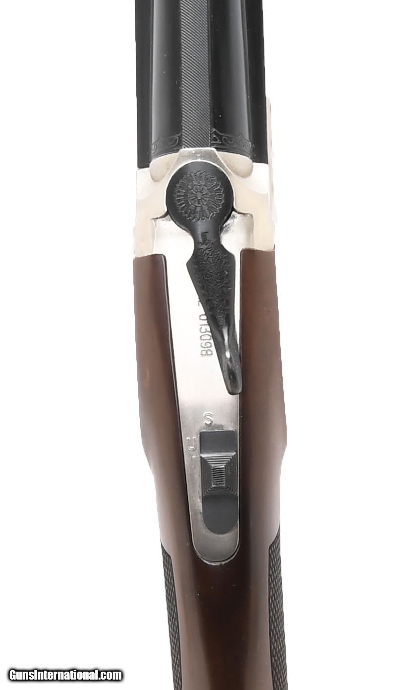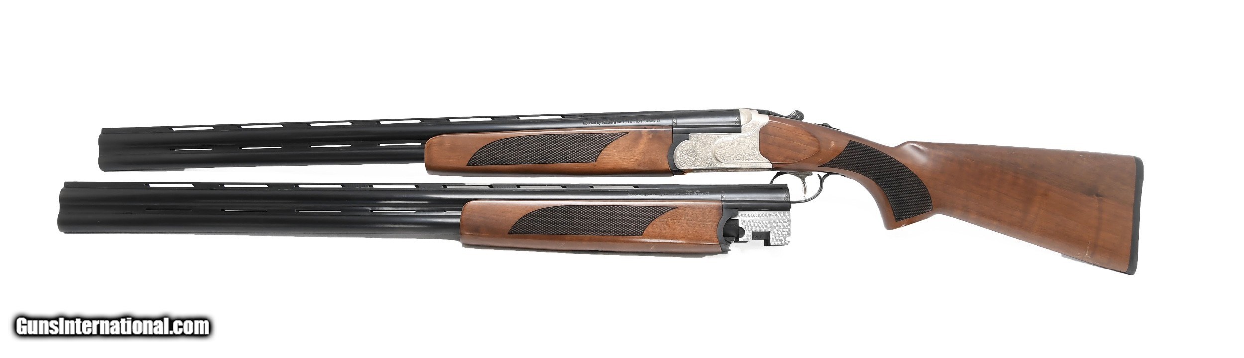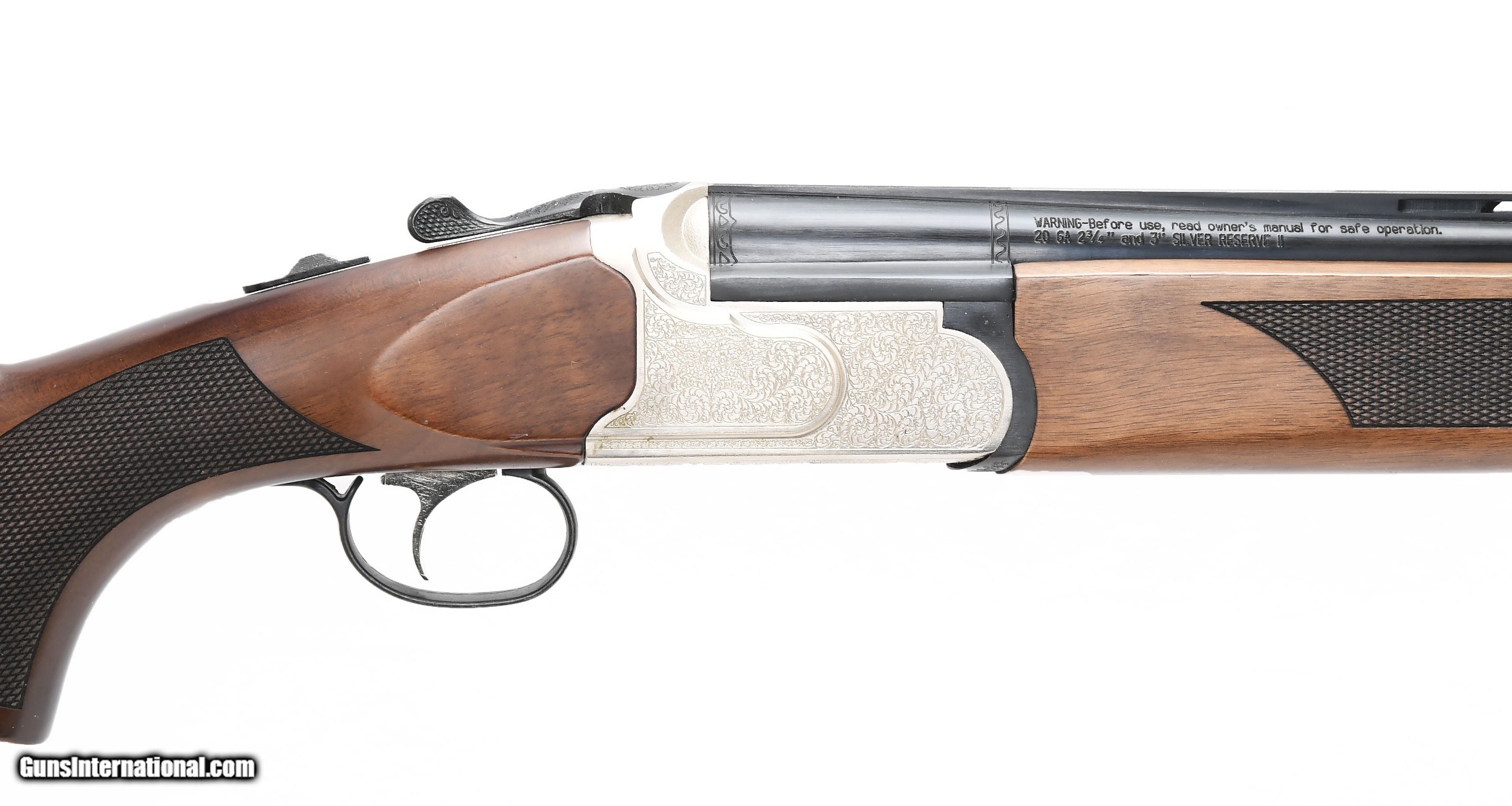 Description: SOLD Mossberg Silver Reserve 12 gauge & 20 gauge O/U set. 20 gauge has 26" barrels with vent rib and choke tubes, IC & Mod. The 12 gauge has 28" vent rib barrels with choke tubes, SK & IC. Both sets are 2 3/4" & 3" chambered, individual forearms and automatic ejectors Coin finished receiver has a non-automatic safety with barrel selector. The buttstock has a 14 1/8" LOP with 1 1/2" DAC and 2 1/2" DAH. The gun weighs 6 lbs. 15 oz. with the 12 gauge barrels and 7 lbs. 4 oz. with the 20 gauge barrels. Just the opposite of what I would expect!! Overall condition is 97% with a few handling marks on the stock and forearm with 98%+ metal. Mechanically excellent. $495.00 SN: SR12 013098 SOLD |