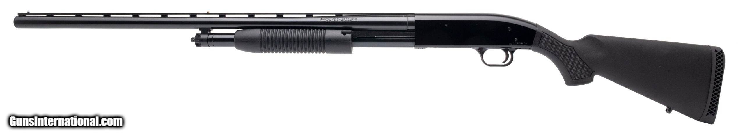 Description: "SN: MV1089474. Modern production, 12 gauge with a 28"" vent rib barrel w/removable IC choke chambered for 2 3/4"" & 3"" shells. Bore is very good. Pump-action field shotgun with blued finish, and black synthetic forend & stock with a 14.25"" LOP. Finish shows light handling marks. Overall condition is near excellent. Price: $249.95 Contact Seller |