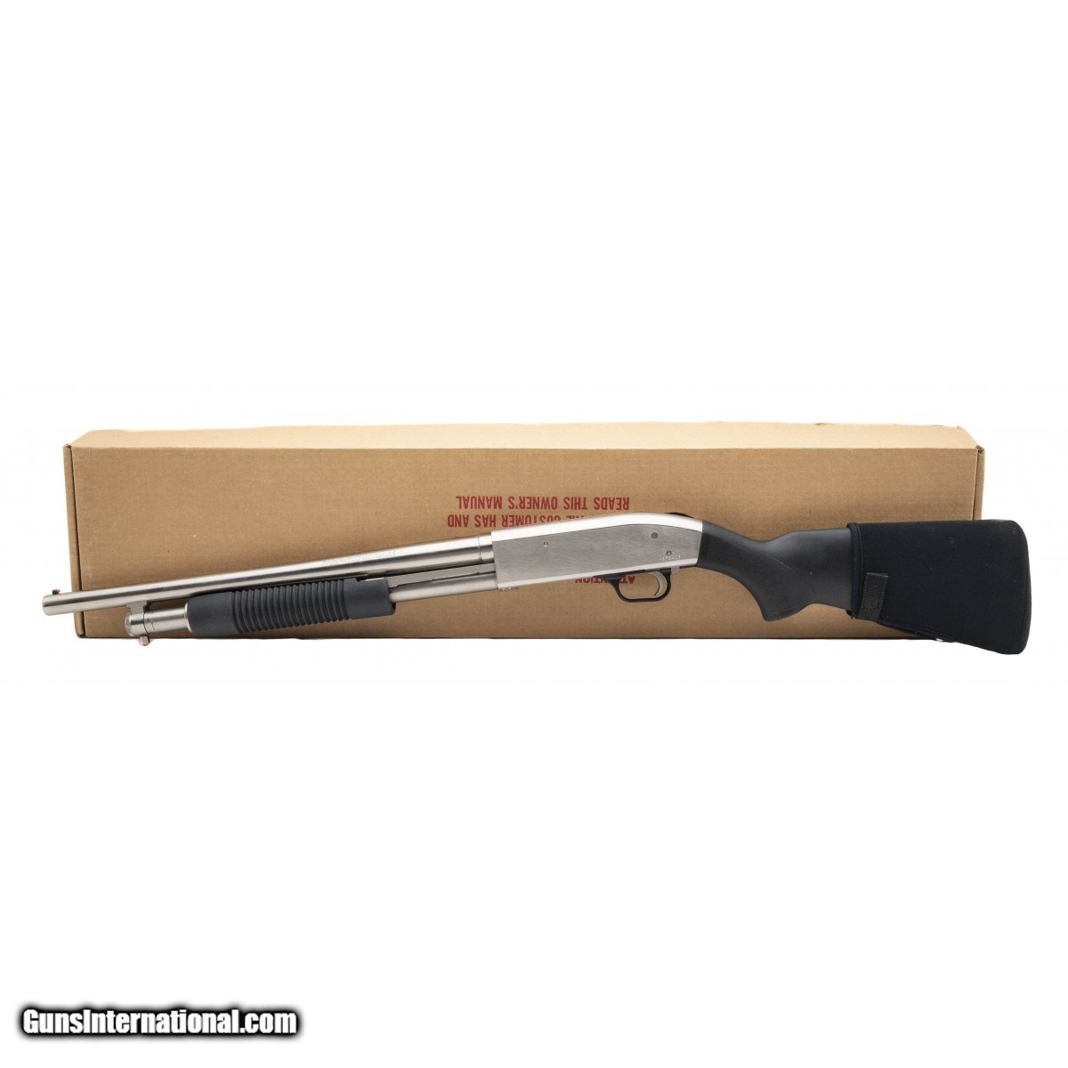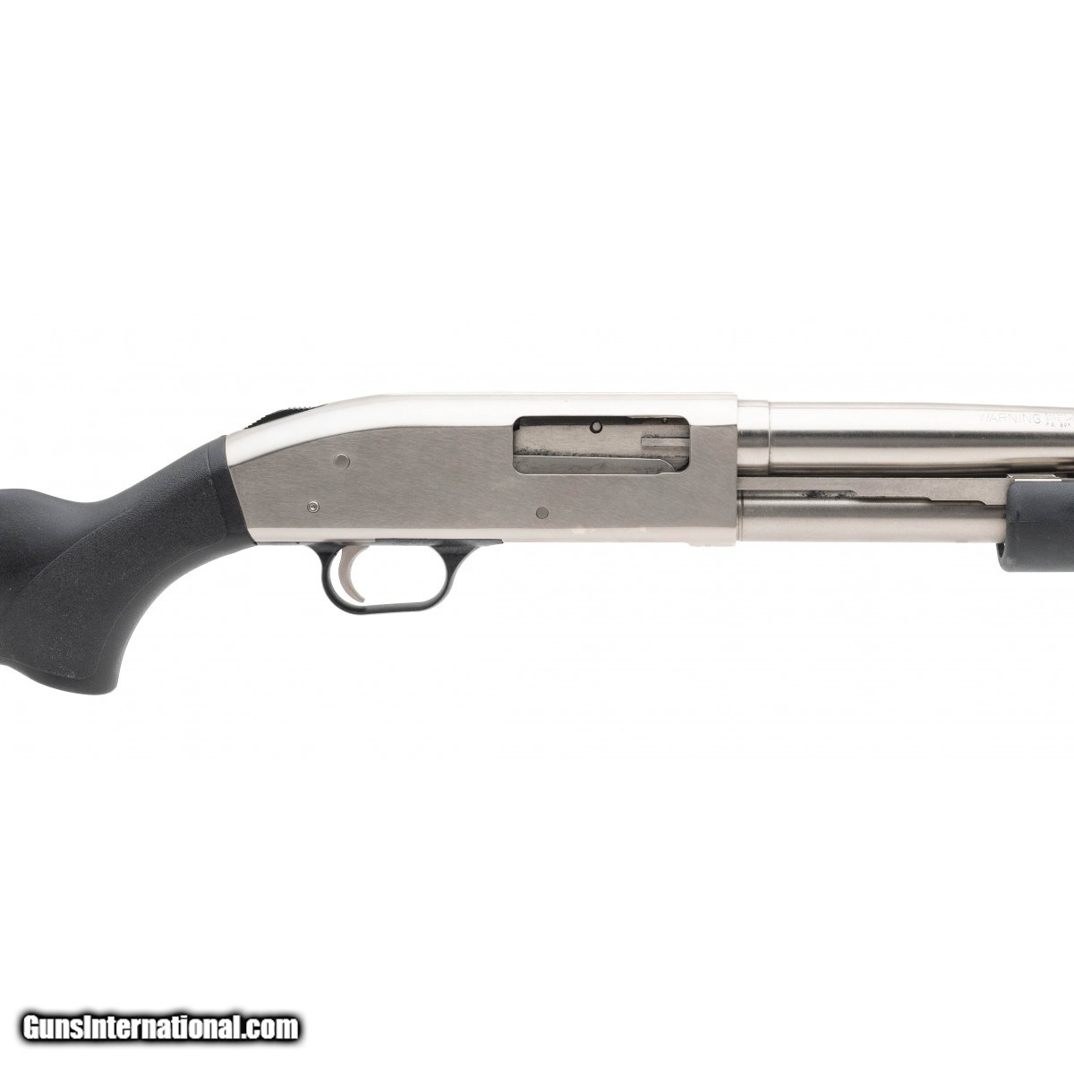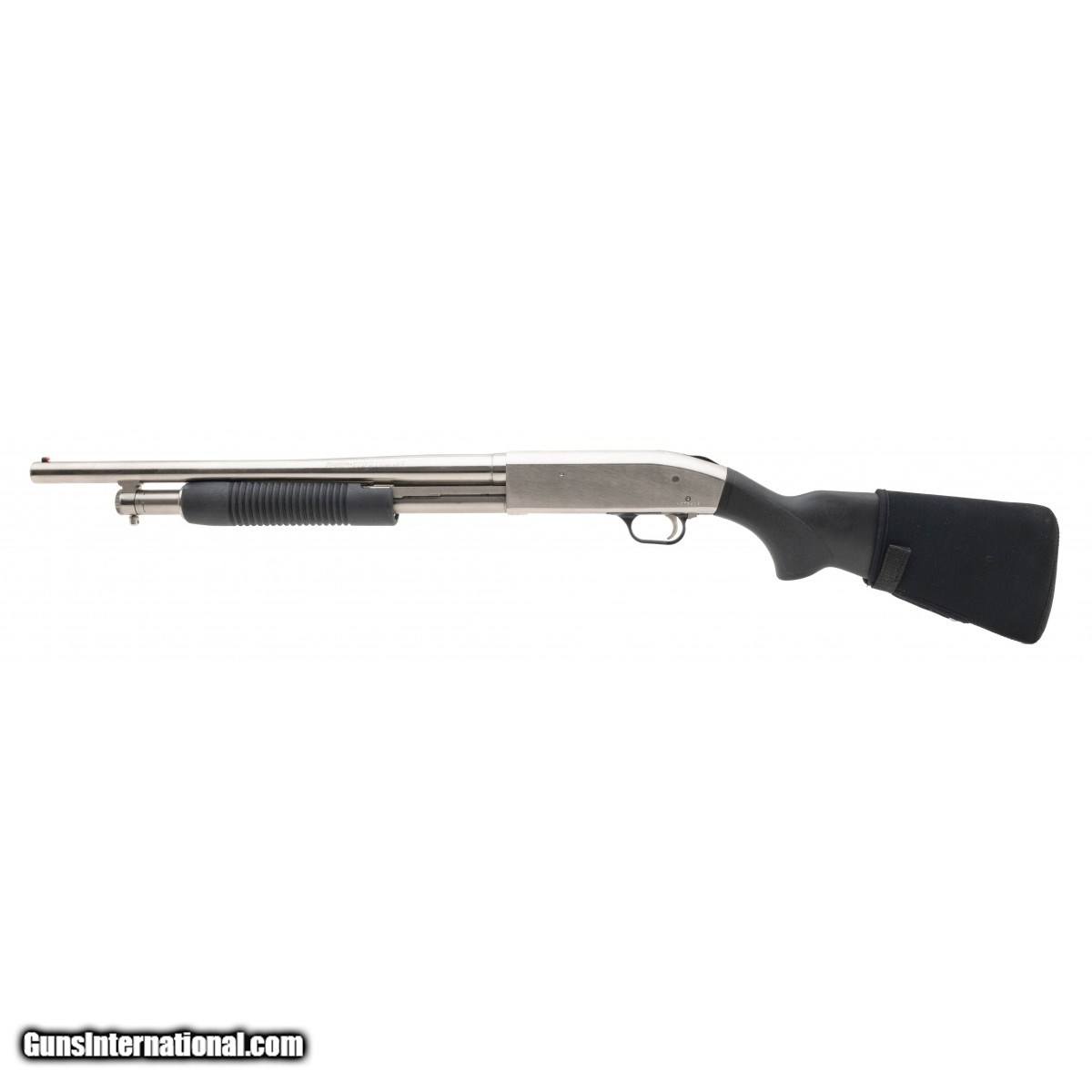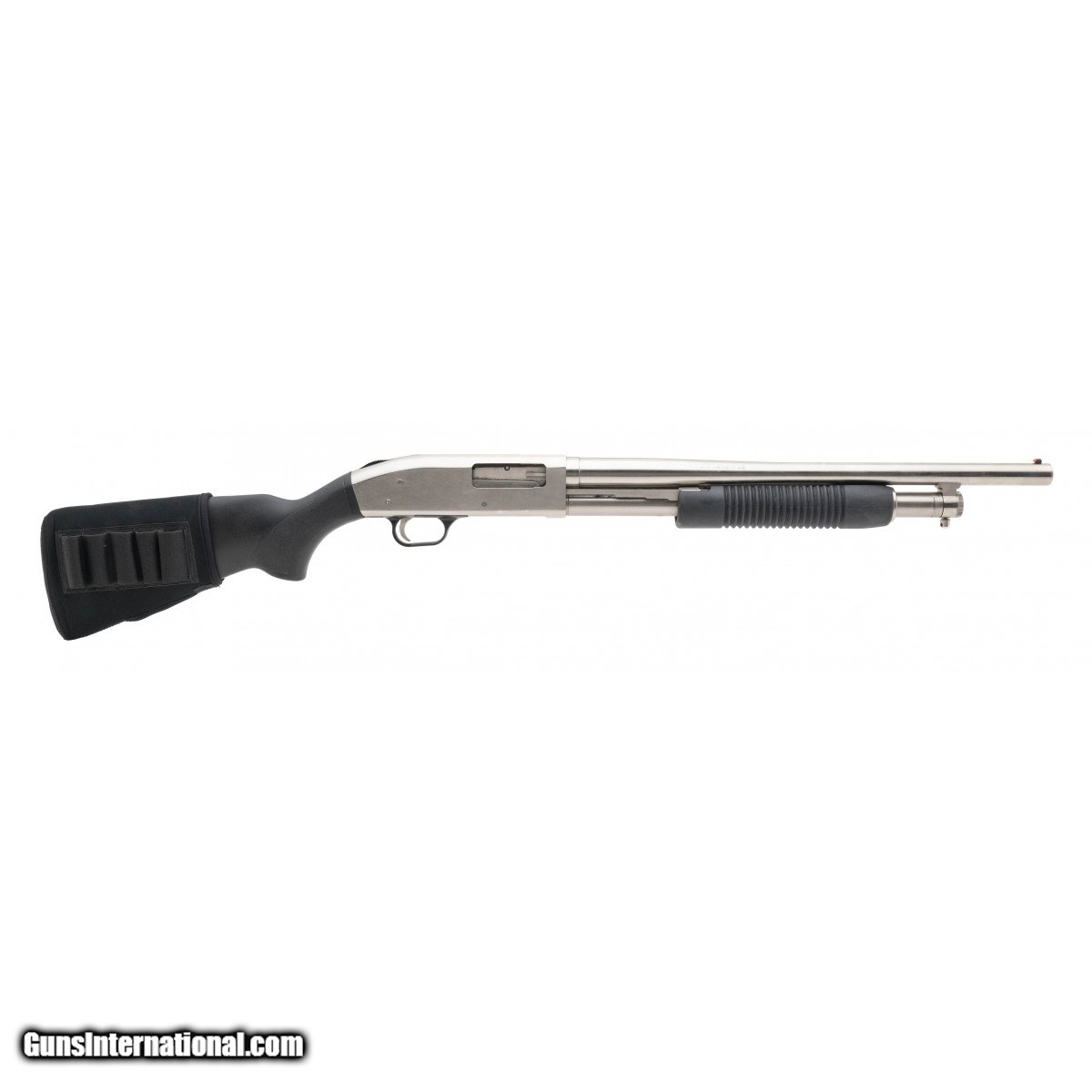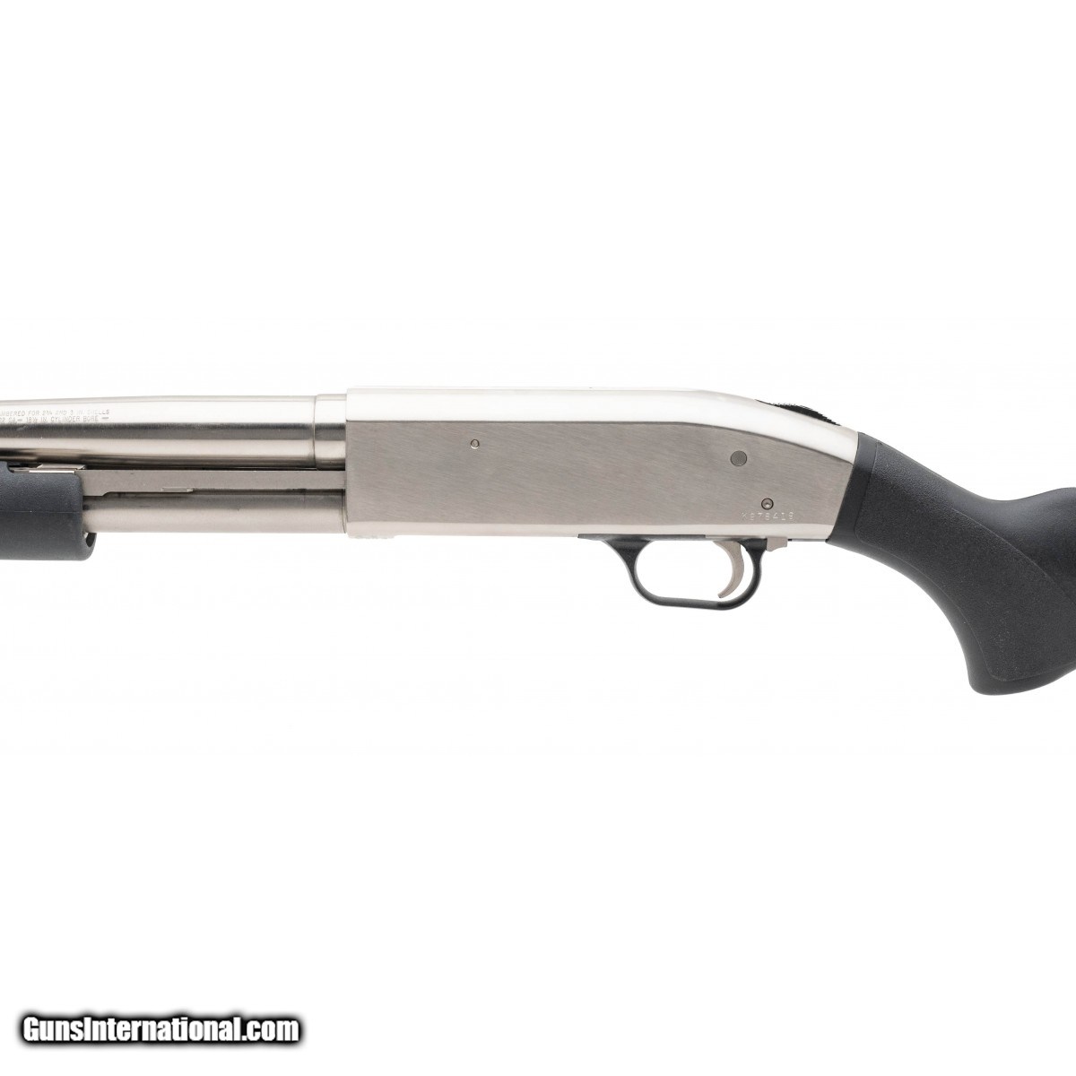 SN:MVP50273. Modern Production. 12 Gauge with a 18.5 barrel. Bore is excellent. Pump action stainless steel shotgun. Metal is excellent. polymer stock is in excellent condition. Has shell holder and fiber optic bead front sight. Overall condition is excellent. Comes with box.