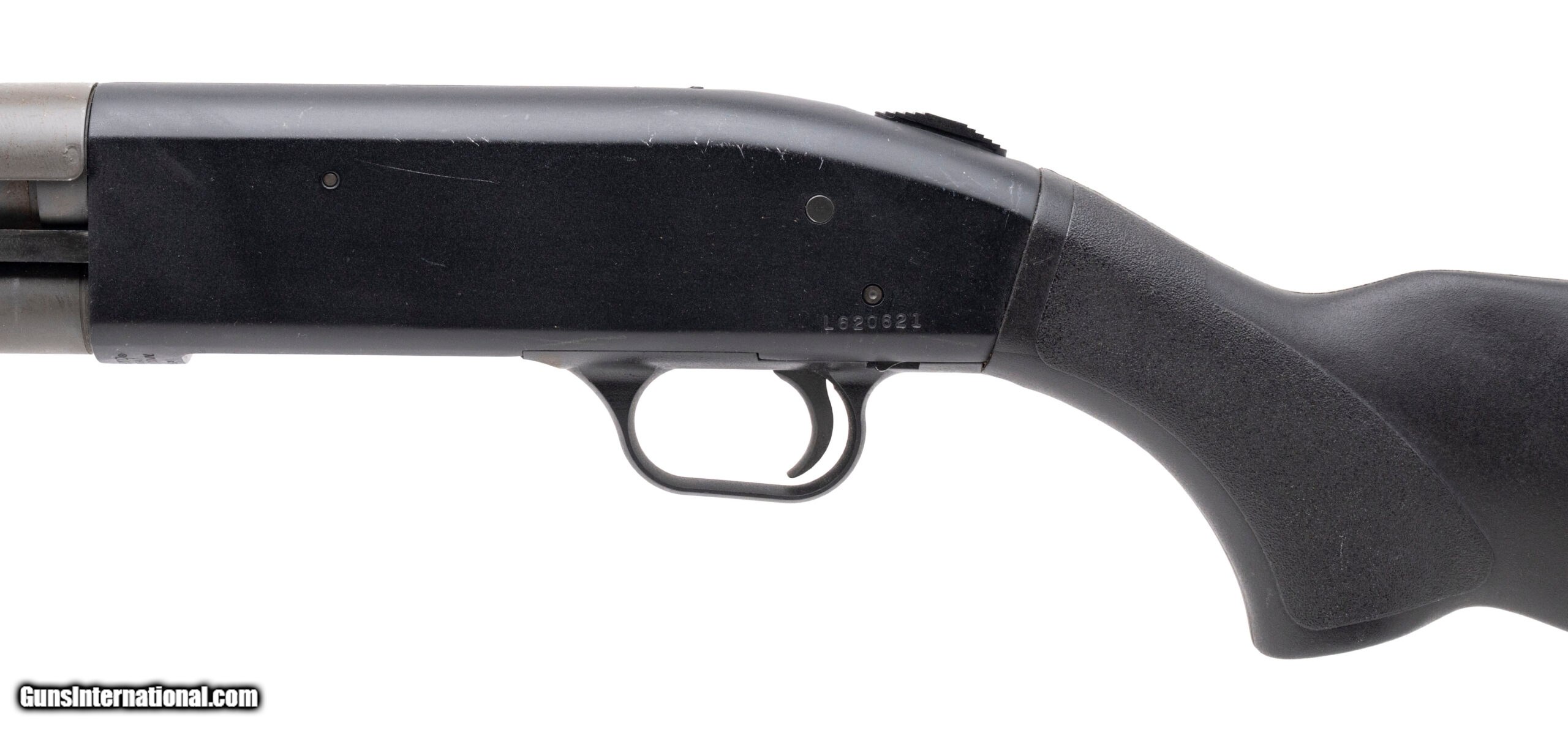 Description: "SN: L620621. Modern production, 12 gauge with a 21"" cyl. bore barrel chambered for 2 3/4"" & 3"" shells. Bore is excellent. Pump-action defense shotgun with a bayonet lug, perforated heat-shield, matte black finish, and black synthetic stock & forend with a 14"" LOP. Finish shows moderate handling marks throughout. Overall condition is very good. Price: $525.00 Contact Seller |