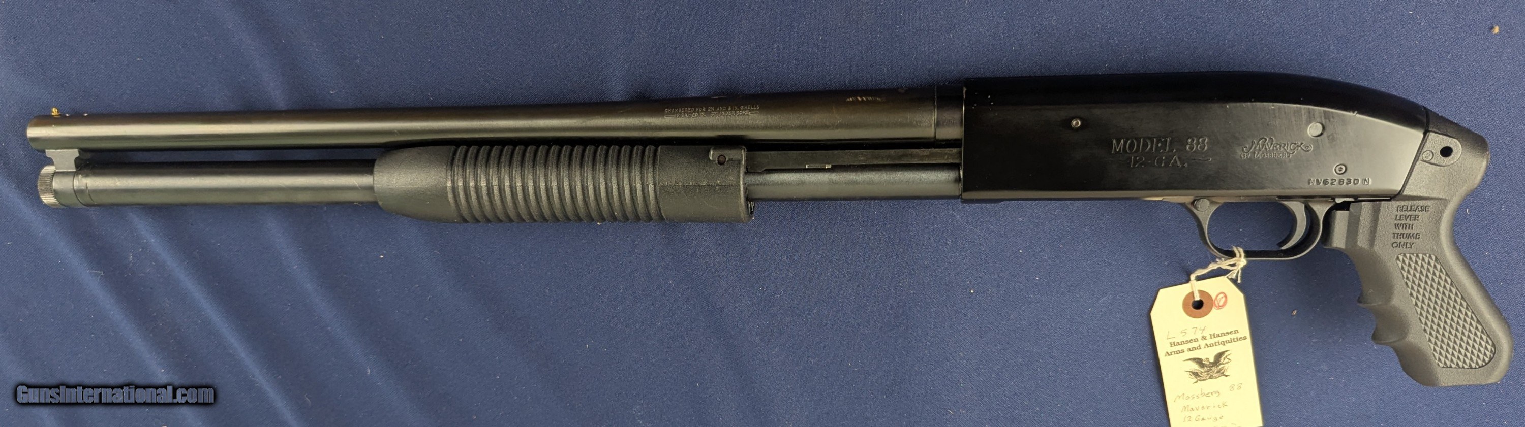 Description: Monthly Special Mossberg Maverick 88 12 GA w/Extended Tube and Full Optional Stock Offered here and just acquired along with many dozens of new firearms is this used Mossberg 88 Maverick model with DESIRABLE extended tube. The extended tube on the 20” barrel increases the standard magazine capacity to 7 shells plus one in chamber. The shotgun retains the large majority of its finish (all on barrel) and most on enameled receiver (save for a few scratches) and comes with its original all weather stock which is an optional accessory to mount. Great riot or safety shotgun. L574 L563 Standard shipping for this item is $42. however final shipping amount is based upon geographical area. Handling is $18.00 for longarms only. We gladly accept money orders, bank checks and personal checks. Credit card orders (VISA AND MASTER CARD ONLY) charged 3.95% additional for use.ifle PLEASE CALL DALIA AT 203-257-5256 TO GIVE CREDIT CARD I NFORMATION. Also, please view our at hansenguns. Click on "Online Catalog" and see All OF OUR NEW ITEMS LISTED CONSECUTIVELY or search online on that site with the ID “lope”...... OFFERED ONLINE AND AVAILABLE IN OUR RETAIL GALLERY IN SOUTHPORT, CT. Visit us also on Facebook at ://facebook/hansenguns/?fref=ts. We also own and/or operate Hansen Cartridge Co. and the Ruger Collectors Assc.(RCA). Hansen & Hansen wishes to expedite each order received, however we ship 80-100 items weekly, therefore orders paid by money orders or bank checks are cleared for shipping 5-7 days after deposited funds show in our account. Shipping date is scheduled ONLY AFTER VERIFICATION TAKES PLACE AND FFL/C&R IS RECEIVED (IF APPLIES). This is 5-7 days after WE receive order by mail - NOT customer date mailed and postmarked and after credit card funds are posted. Credit card orders exceeding $500 must be cleared through customer’s bank before shipping. Personal checks are accepted but orders are held UP TO 3 WEEKS after deposit of funds before items released for shipping. IF you have special instructions or require overnight or expedited shipping please advise at time of ordering and we will gladly prioritize shipping FOR AN ADDITIONAL CHARGE. THIS IS OUR POLICY and we encourage s to PLEASE READ AND UNDERSTAND OUR POLICY BEFORE . We would be pleased to answer ANY questions by phone (our toll free number is 1-800-571-7337 or e-mail cwlopiaol. Shotgun Gauge: 12 Gauge Price: $295.00 Buy Now Contact Seller |