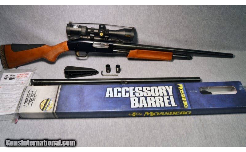 Description: This Mossberg Model 500 is a right hand pump action shotgun in 12 Ga. It has a Nikon Slug Hunter scope. This shotgun comes with two extra barrels, extra cheek pad and extra chokes as shown. The forearm is a checkered grip hardwood with finger grooves. 12 Gauge SOLD Chambers: 2-3/4" and 3 Metal Condition: Fair. Some wear and pitting Wood Condition: Fair some wear and handling marks Bore Condition: Good/very good Barrels: 24 Triggers: Factory Butt Pad: Factory rubber Weight: 9.2 lbs Sights: Nikon Slug Hunter Item Location: Cheektowaga, NY |