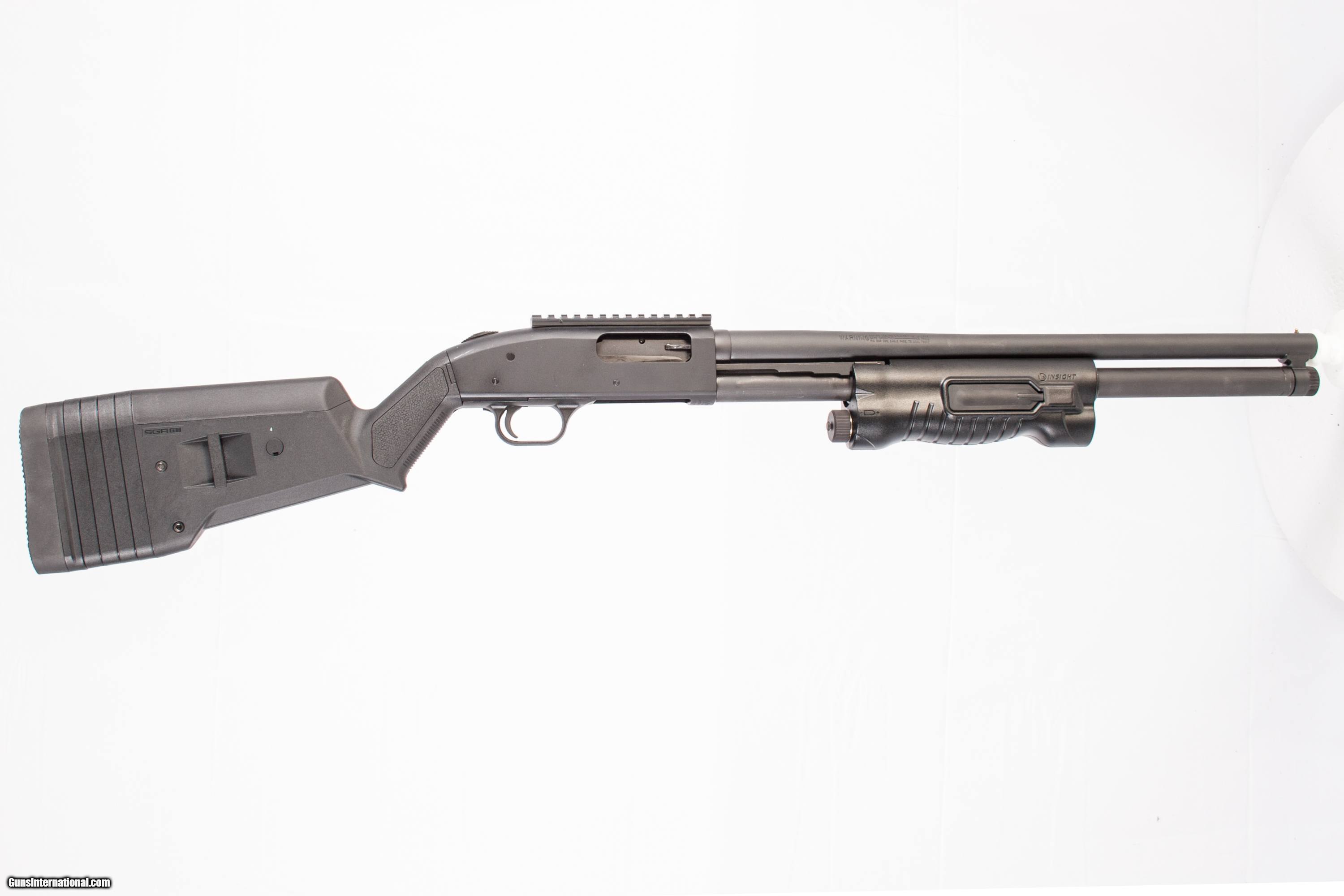 MOSSBERG 500 CHAMBERED IN 12GA WITH A 20.5 INCH BARREL BRIGHT BORE AND A MAGPUL STOCK. THIS GUN IS IN EXCELLENT CONDITION AND IS COVERED BY DURY'S LIFETIME WARRANTY.