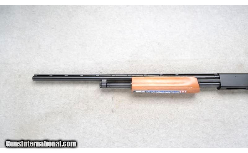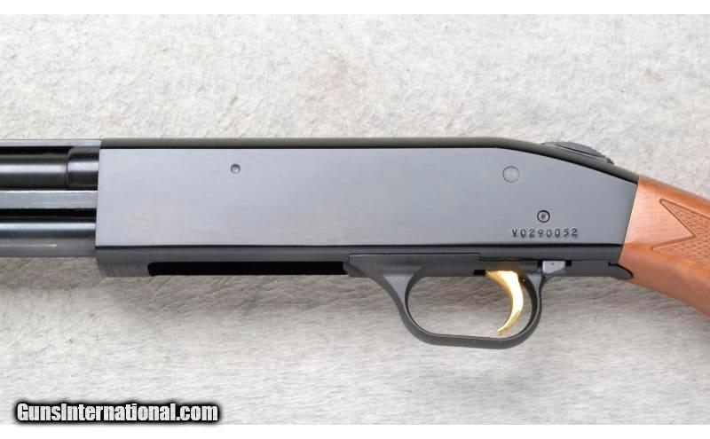 Description: This Mossberg Model 500 is a right hand pump action shotgun in .410 Bore. It has a 24 inch barrel with a ventilated rib. A white bead front sight and a brass bead middle sight. With a 3 inch chamber it has a fixed full choke. The butt stock is a checkered grip hardwood pistol grip. The forearm is a checkered grip hardwood with finger grooves. .410 Bore SOLD Chambers: 3 inch. Metal Condition: Excellent. Wood Condition: Excellent. Bore Condition: Shiny. Barrels: 24 inch barrel with a ventilated rib. Stock Dimensions: LOP 14 inch. Fore End: Checkered grip hardwood with finger grooves. Butt Pad: Mossberg brown rubber recoil pad. Weight: 6 lb. 4 oz. Sights: White bead front. Brass middle bead. Chokes: Fixed Full. Item Location: Richfield, WI |