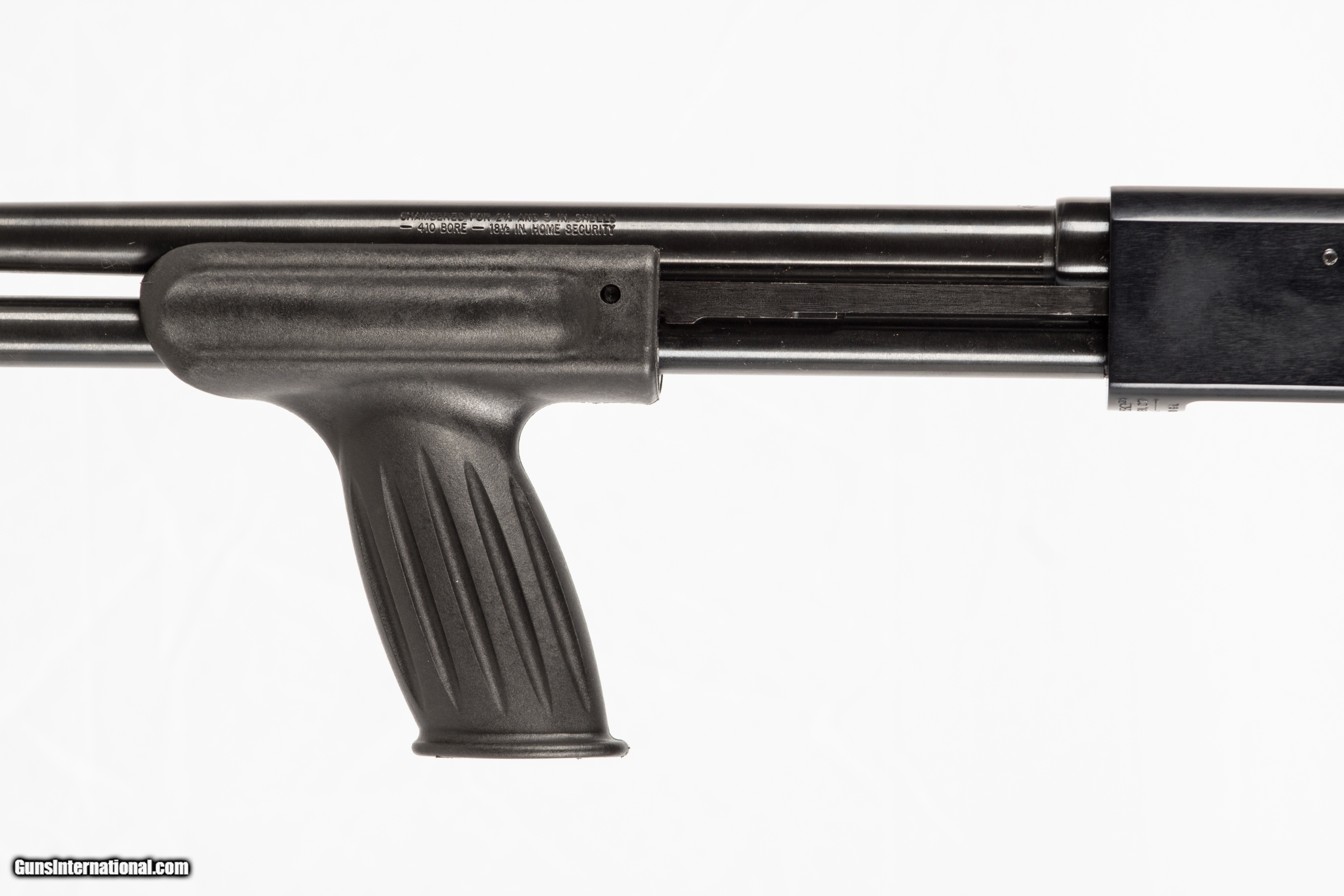 Mossberg 500 with a 16 inch barrel chambered for 410 GA bright & shiny bore and forward vertical grip. This gun is in excellent condition and is covered by Dury's Lifetime Warranty.