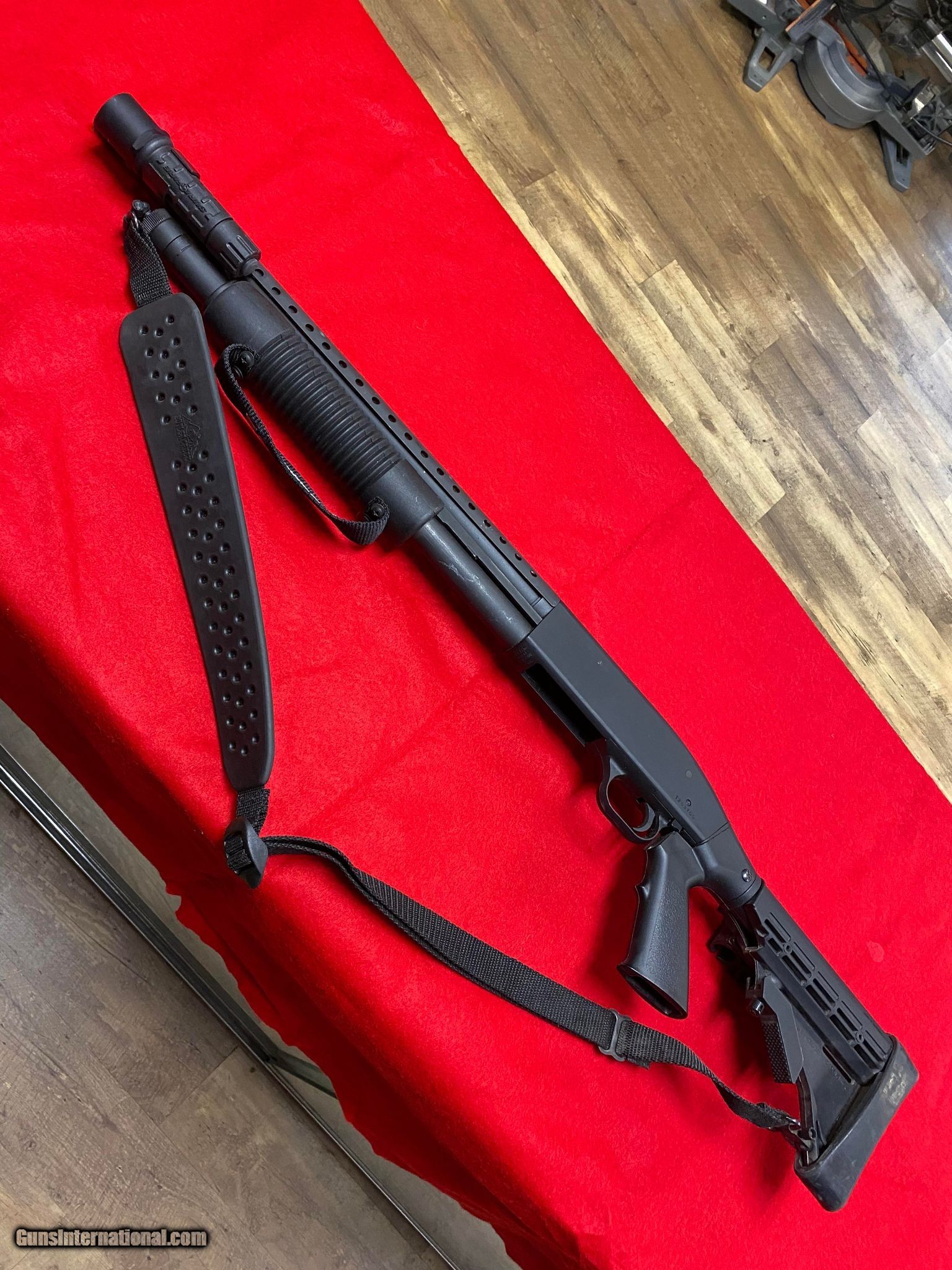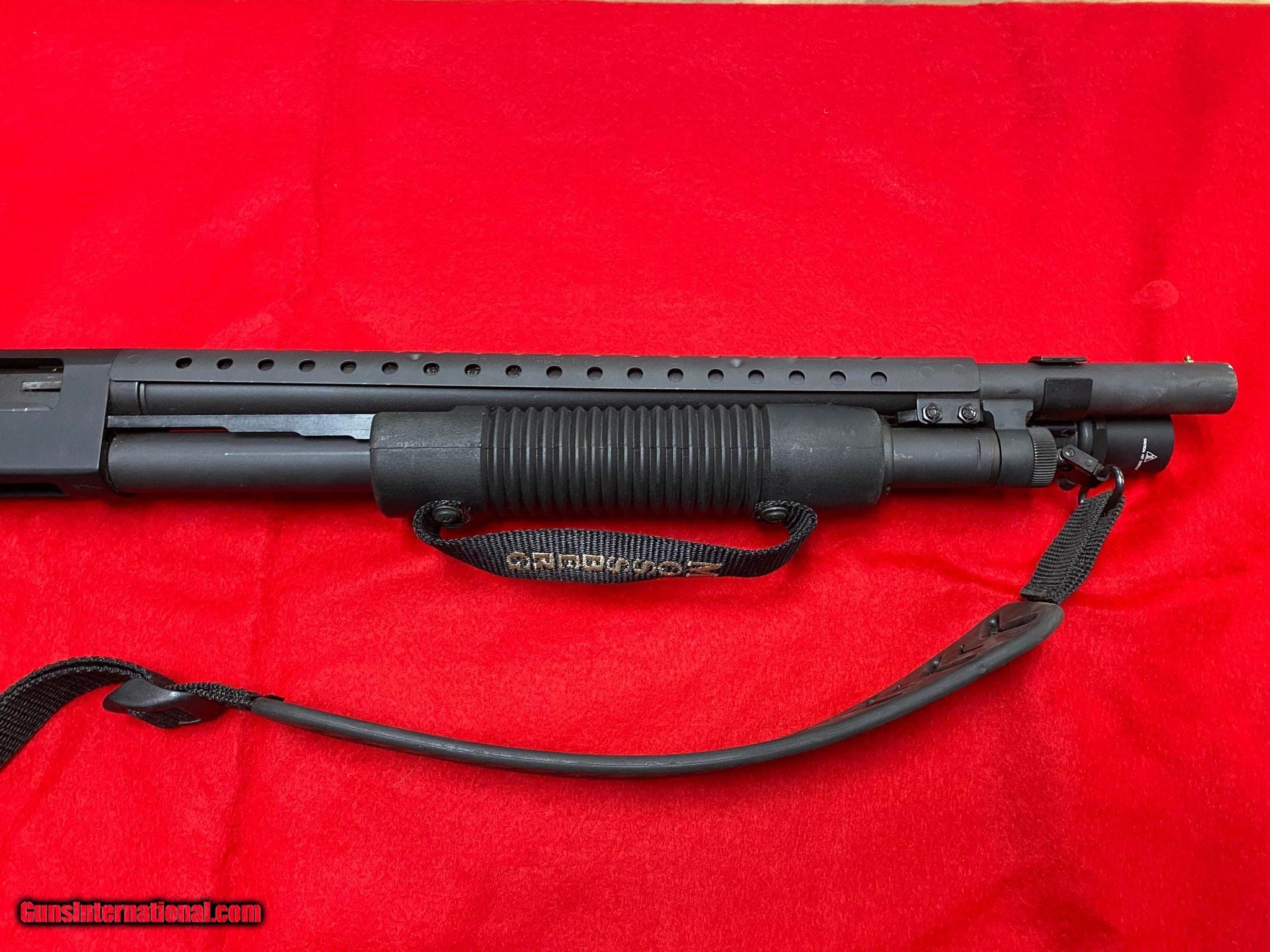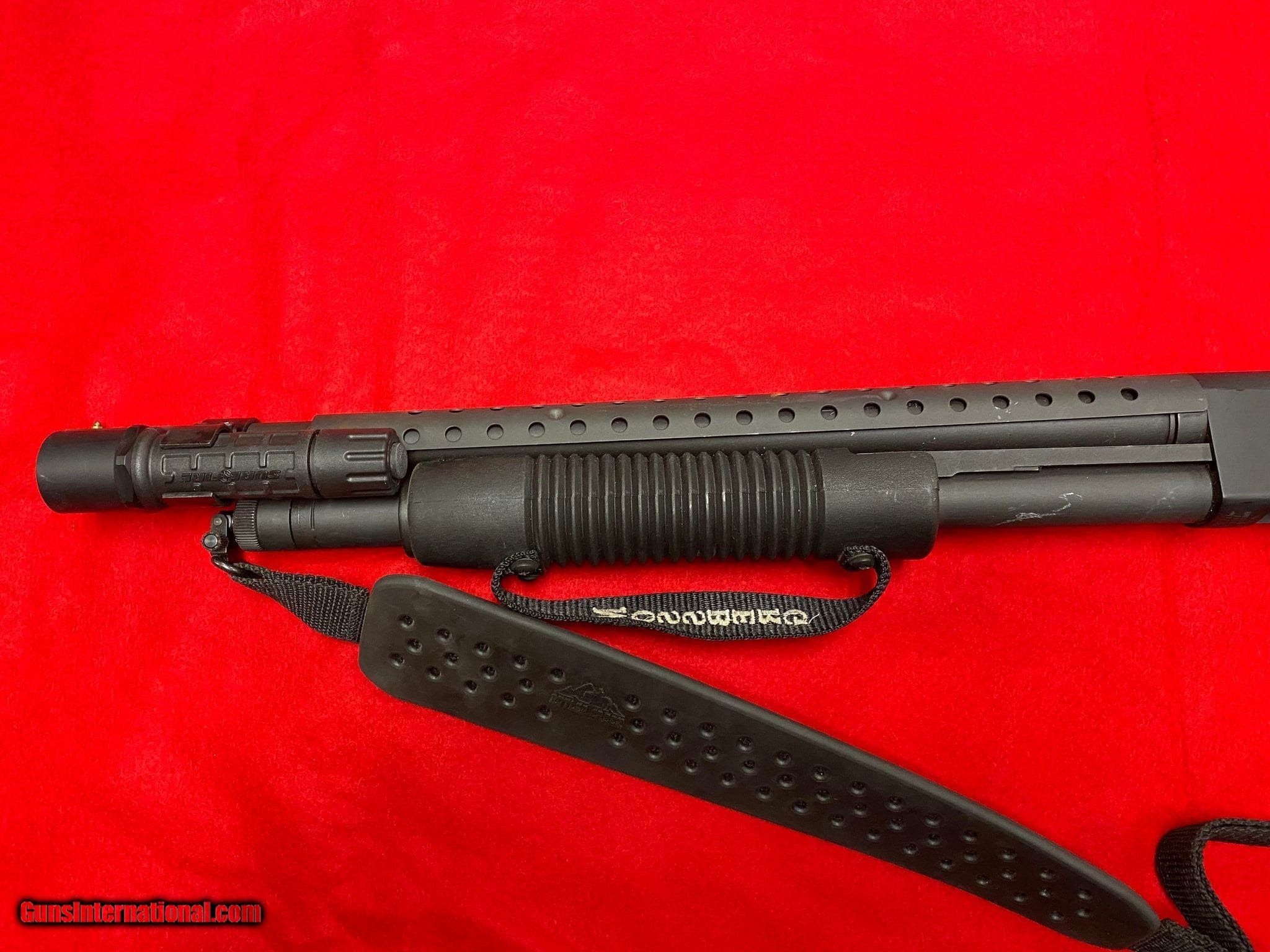 MOSSBERG 500 500A with sling, light, heat guard, and shell holder