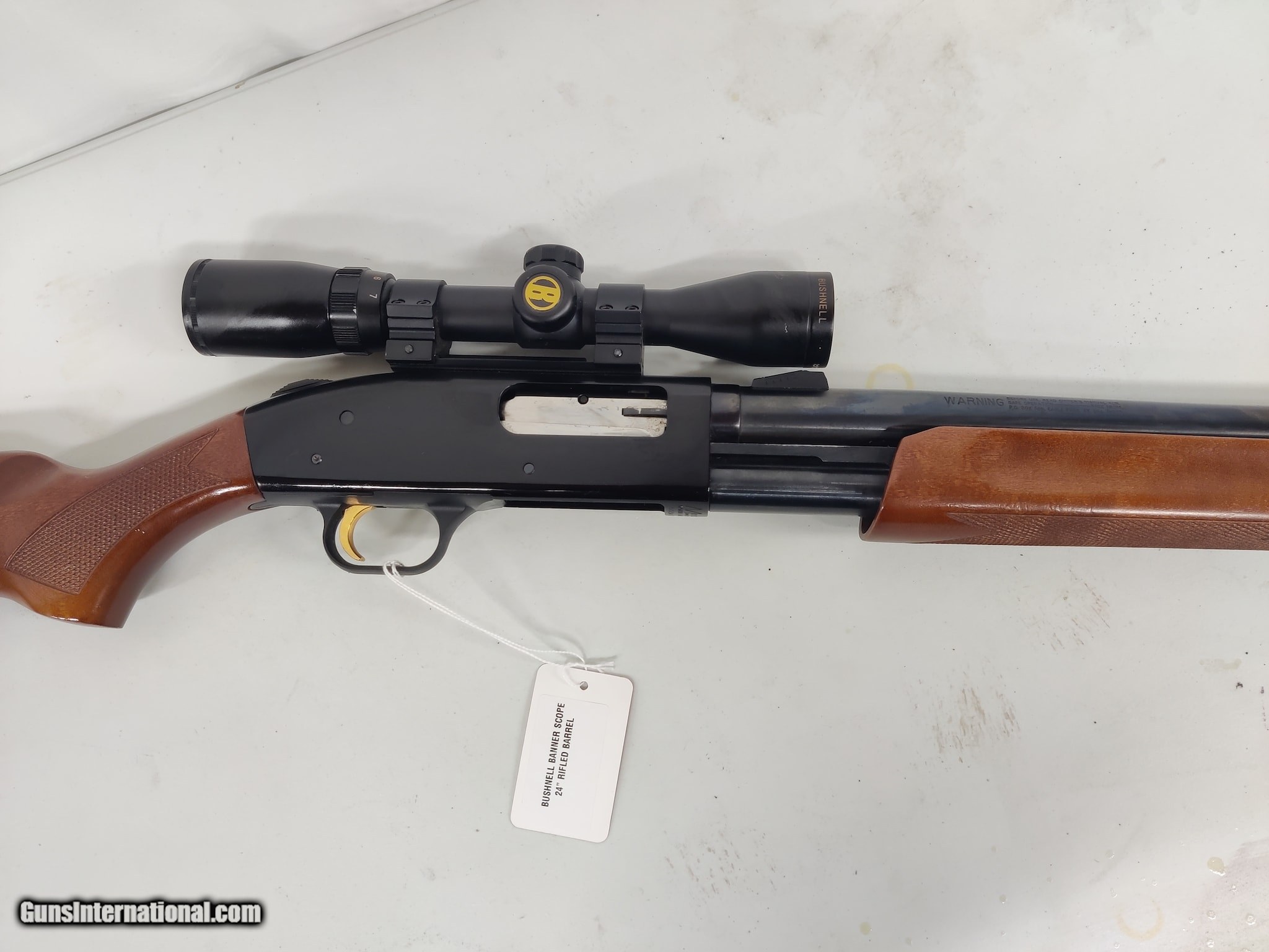 MOSSBERG 500-A Rifled Barrel, Wood Stock, Bushnell Banner Scope 12 GA