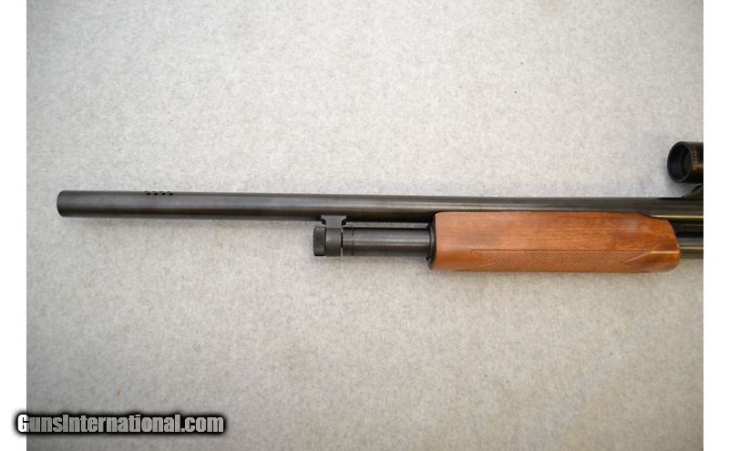 Description: Very good shape overall. Metal is generally clean and is free of rust. The left side of the receiver does have a few rub lines that manifest as a slight shine when the light hits them just right; but there is no finish penetration. Metal has wear marks on the metal where appropriate. Stock has a few very minor marks; none worthy of individual note. 12 Gauge SOLD Chambers: Pump action fed from a tubular magazine and chambering up to 3" shells. Metal Condition: Very good. Wood Condition: Very good. Barrels: 24" Blued; fully rifled and ported. Triggers: Wide "gold" colored metal. Stock Dimensions: Diamond pattern checkered hardwood with a 14" LOP. Fore End: Hardwood with diamond pattern checkered bottom panel. Butt Pad: Ventilated brown rubber. Weight: 8lbs 9oz Sights: No iron sights; comes with a cantilever barrel and a 1-4x32mm scope. Chokes: N/A Item Location: Green Bay |
