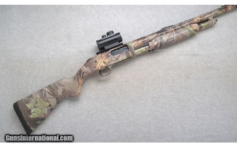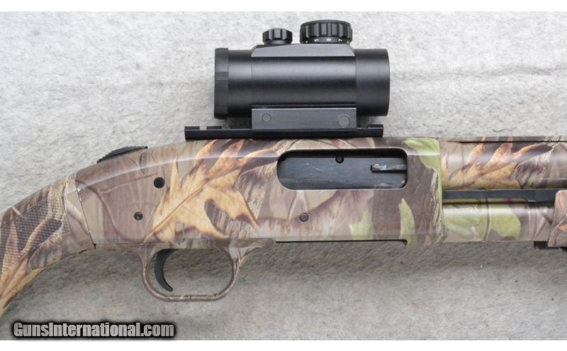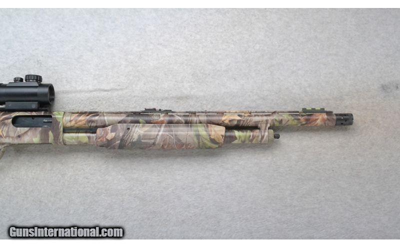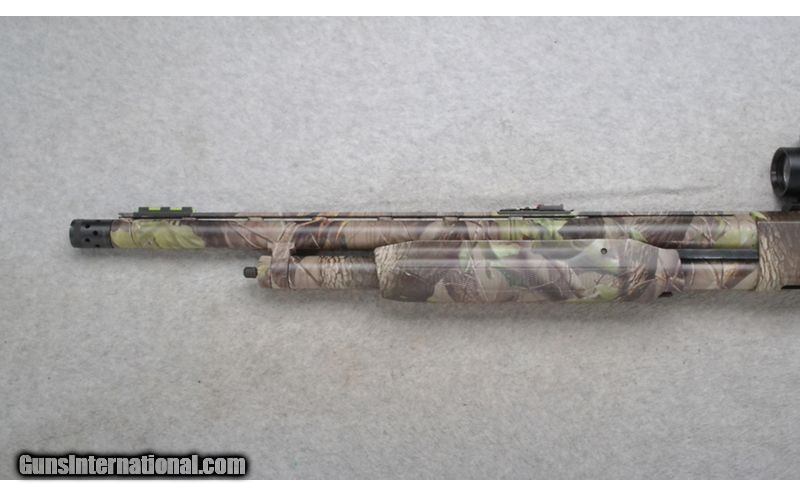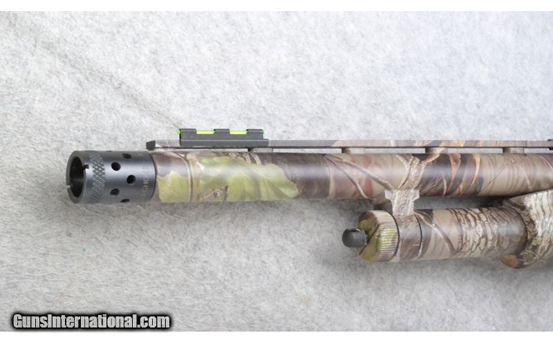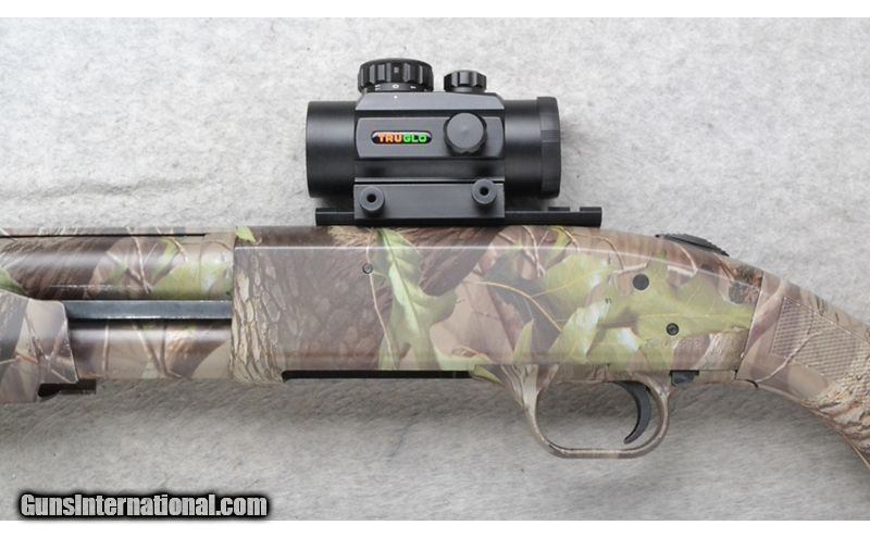 Description: This Mossberg Model 500A is a right hand pump action shotgun in 12 Ga. It has a 20 inch barrel with a ventilated rib. A green high visibility front sight and a red high visibility middle sight. It is outfitted with a TruGlo sight. With a 3 in chamber it has Accu-Choke and comes with one XX-Full choke tube. The butt stock is a checkered grip polymer pistol grip in camo. The forearm is a checkered grip polymer in camo with finger grooves. Realtree Hardwoods Camo. 12 Gauge SOLD Chambers: 3 inch. Metal Condition: Excellent. Bore Condition: Shiny. Barrels: 20 inch barrel with a ventilated rib. Stock Dimensions: LOP 14 inches. Fore End: Checkered grip polymer in camo with finger grooves. Butt Pad: Mossberg black rubber recoil pad. Weight: 6 lb. 12 oz. Sights: Green high visibility front. Red high visibility middle. TruGlo 11 setting sight. Chokes: Accu-Choke. Comes with a XX-Full choke tube. Item Location: Richfield, WI |
