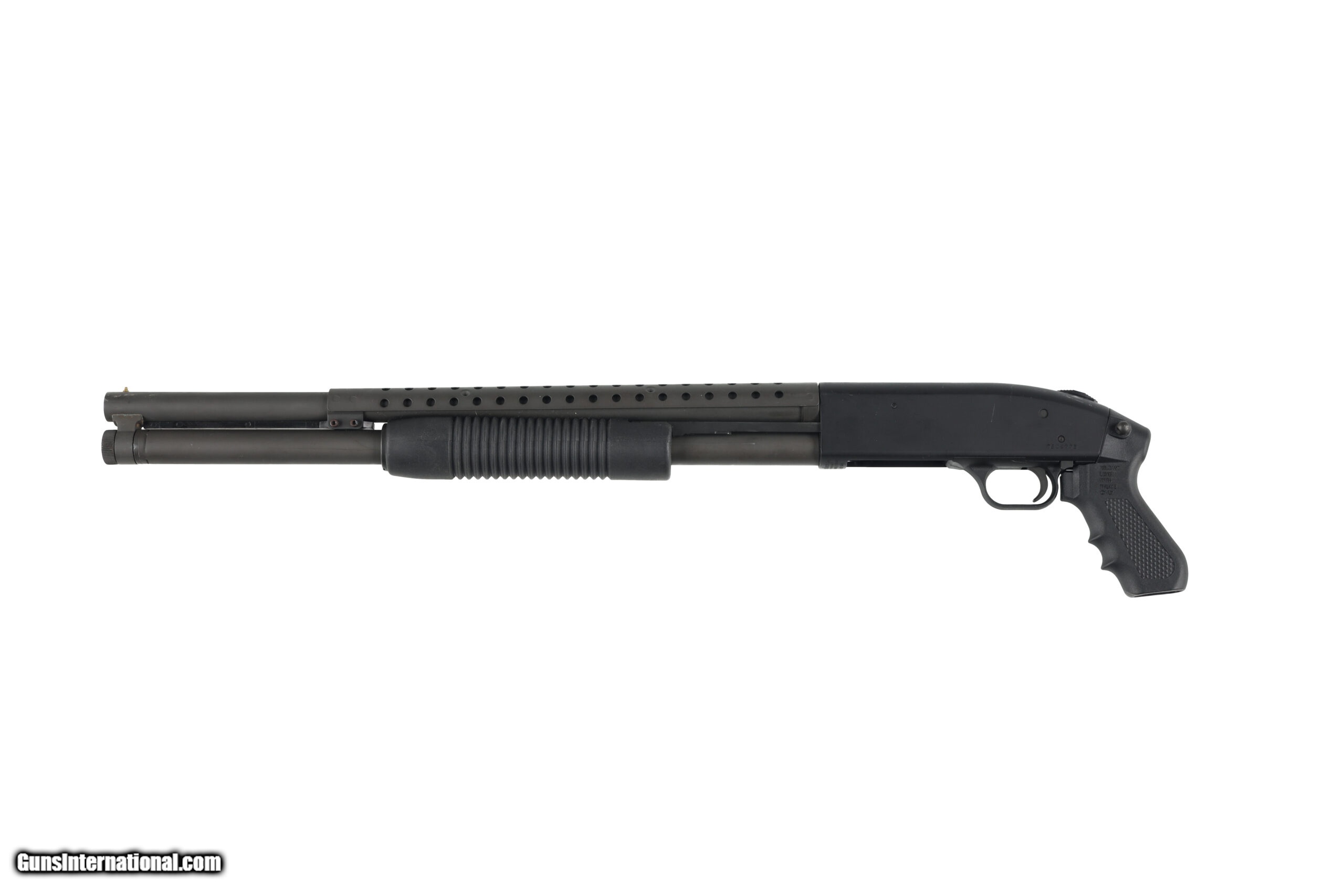Description: This Mossberg 500A tactical shotgun is one of the pistol grip only models, with a 21 3/4" barrel to bring it to a legal length. Overall condition is very good, with only minor wear and a few scratches. Manufactured in: USA Hand: Right Hand Action Finish: Black Metal Finish: Original Barrel Length: 21 3/4" Barrel Condition: Very Good Stock Finish: Original Stock Condition: Very Good Grip: Pistol Forend: Ribbed Tactical Extra Barrels: No. SOLD Manufacturer: Mossberg Model: 500A Chambers: 3 Inches Condition: Preowned Metal Condition: Very Good Action: Pump Action Triggers: Single Gauge Info: 12 Gauge Fore End: Ribbed Tactical Finish: Original Weight: 6.2 lbs Chokes: Cyl Extras: No. Case: NONE |