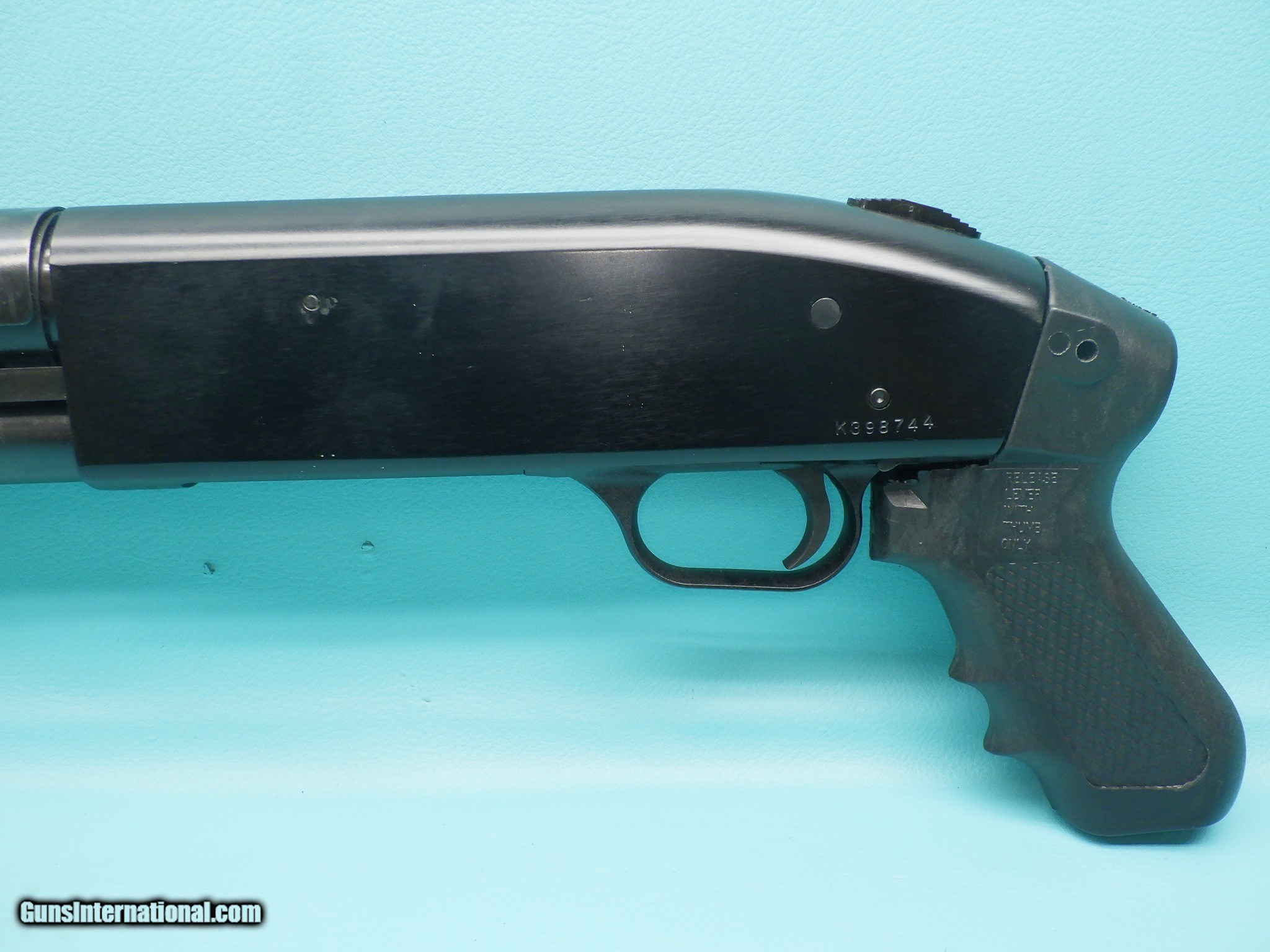 Description: Make: Mossberg Model: 500A Finish: Blued Gauge: 12 Chamber length: 3 inch Action: Pump Barrel length: 18 1/2" Bore(s): Shiny Choke(s): (Fixed) improved cylinder Stock material: Synthetic Sights: Brass bead MFG Date: NA Features: Black synthetic pistol grip, grooved wood forend, 4+1 round capacity, heat shield, top mounted safety, and dual action bar. Extras: None Condition: Nice shape with some signs of light use/wear Shipping Cost: $40.00 The shotgun functions as it should with a smooth action and strong ejection. Please refer to the photos for the overall condition. FFL is required. SOLD Shotgun Gauge: 12 Gauge Manufacturer: Mossberg Model: 500A Serial Number: K398744 Barrel Length: 18 1/2 |