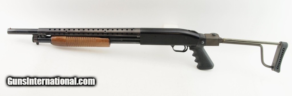 Description: Mossberg 500A Folder 12 GA, 18.5" bbl, bright shiny smooth bore, blued finish, red bead front sight, heat shield over barrel, nice hardwood forearm, black checkered pistol grip, folding wire butt stock, and black vented recoil pad. Add 3% for Credit Card Shipping $35.00 SOLD |