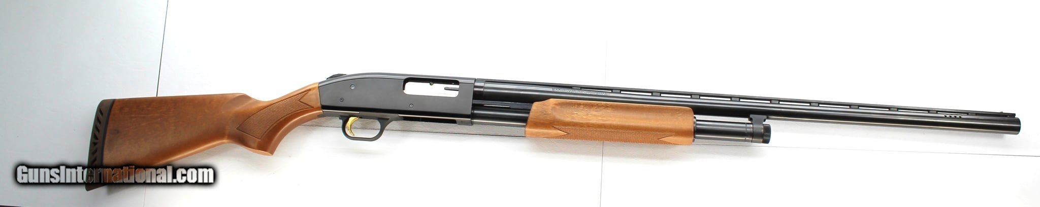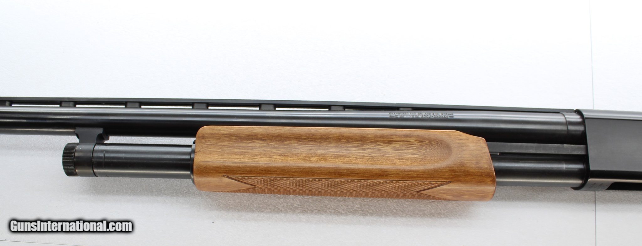 Description: Guns Listing ID: 1364706 SER #R716680, 12 ga., 28” ventilated rib Accu-Choke ported barrel with a bright near excellent bore. The barrel and magazine tube of this shotgun retain about 98% original blue with spots of light oxidation. The balance of metal surfaces retain about 99% original black anodized finish with a few light handling marks. The bolt is bright, the trigger retains 98% original gold plate with spots of light oxidation, and the black polymer triggerguard rates excellent. The checkered hardwood pistolgrip buttstock and forend rate about excellent with a light handling mark or two. The barrel is sighted with a white bead in front and drilled for a mid bead that is missing and one Accu-Choke Imp Cyl choke tube is included. SOLD Manufacturer: MOSSBERG Model: 500A *Gold Trigger* Condition: Used - Non-Certified Barrels: 28 BARREL Gauge Info: 12 GA Finish: BLUE AND BLACK |