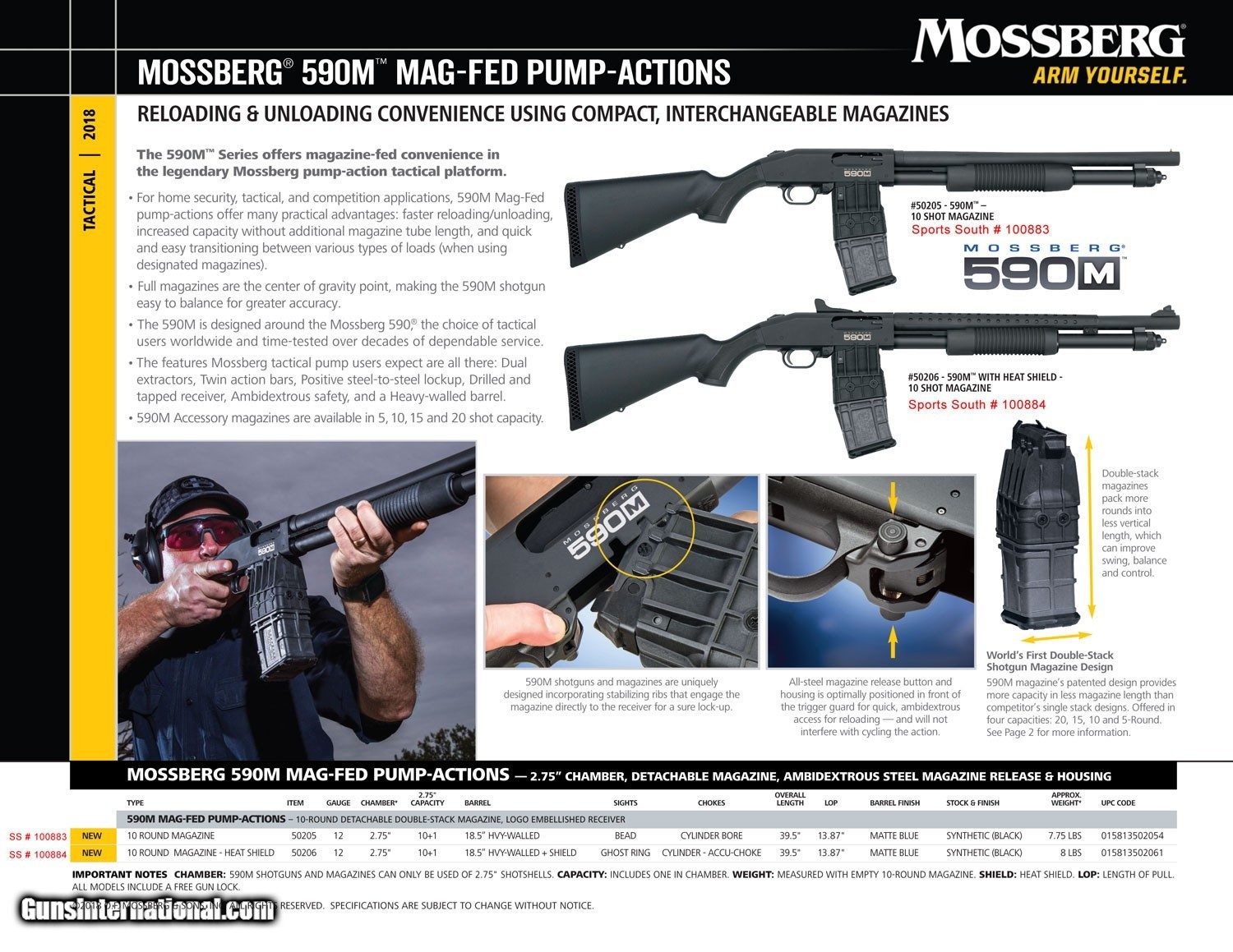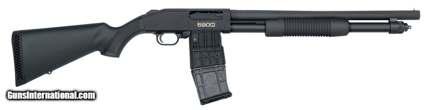 Description: Mossberg 50205 590M Mag-Fed 12 Gauge 2.75" 10+1 18.50" Heavy-Walled Cylinder Bore Barrel, Matte Blued Metal Finish, Drilled & Tapped Receiver, Steel Ambidextrous Magazine Release & Housing, Synthetic Stock ON ITS BEST PRICE! BUY NOW! The 590M offers magazine-fed convenience in the legendary Mossberg pump-action tactical platform. The shotgun and magazine are uniquely designed incorporating stabilizing ribs that engage the magazine directly to the receiver for a sure lockup. The features Mossberg tactical pump users expect are all there: dual extractors, twin action bars, positive steel-to-steel lockup, drilled and tapped receiver, ambidextrous safety, and a heavy-walled barrel.