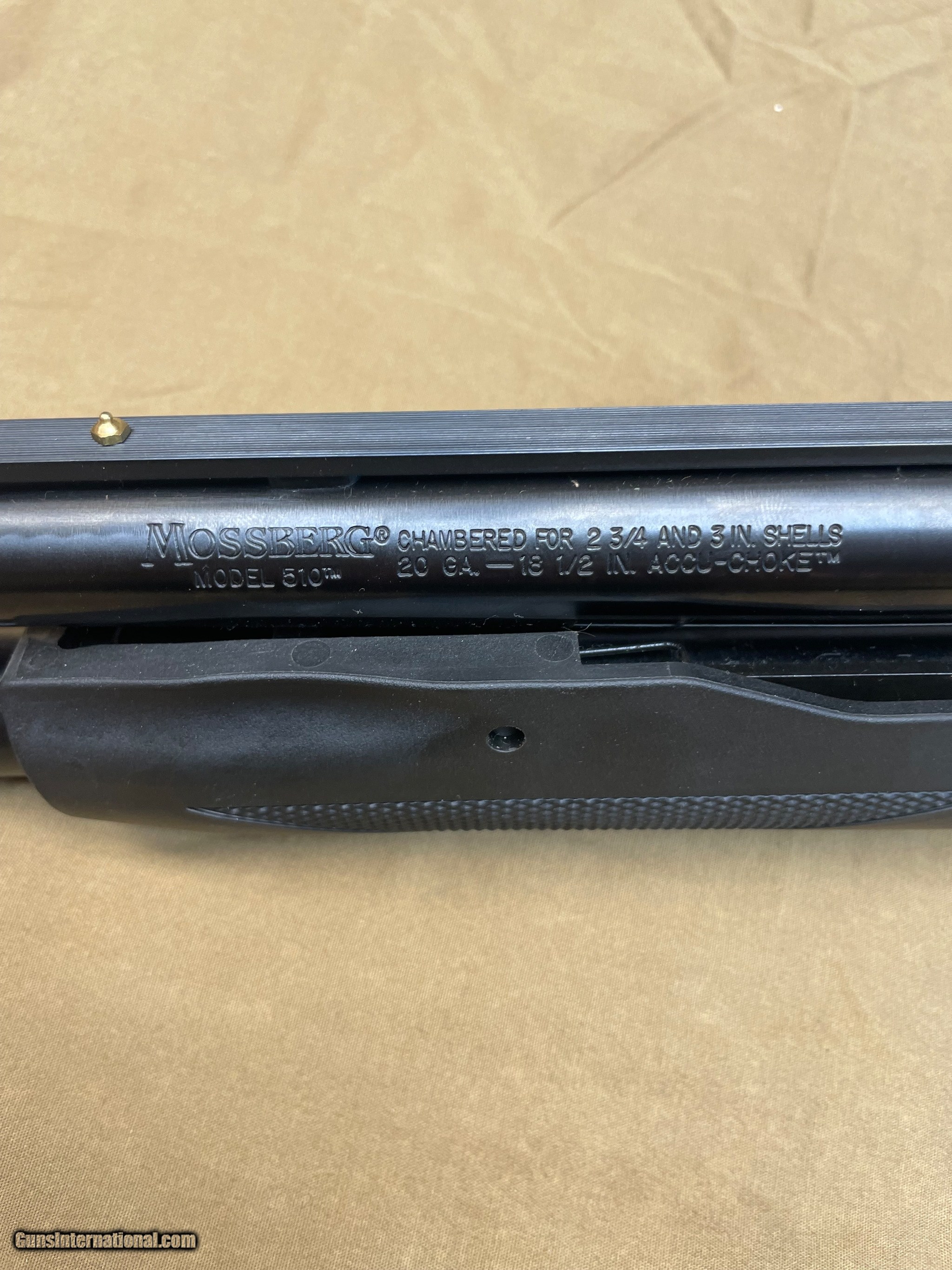 Description: Guns Listing ID: 884023 Mossberg 510 Mini, Compact, Pump Action, 20 Gauge, 2.75\" Chamber, 18.5\" Barrel, AccuSet Chokes, Blue Finish, Synthetic Stock, Bead Sight, 3Rd SOLD Manufacturer: MOSSBERG Model: 510 MINI Condition: Used - Non-Certified Barrels: 18.5 BARREL Gauge Info: 20 GA Finish: BLUED |