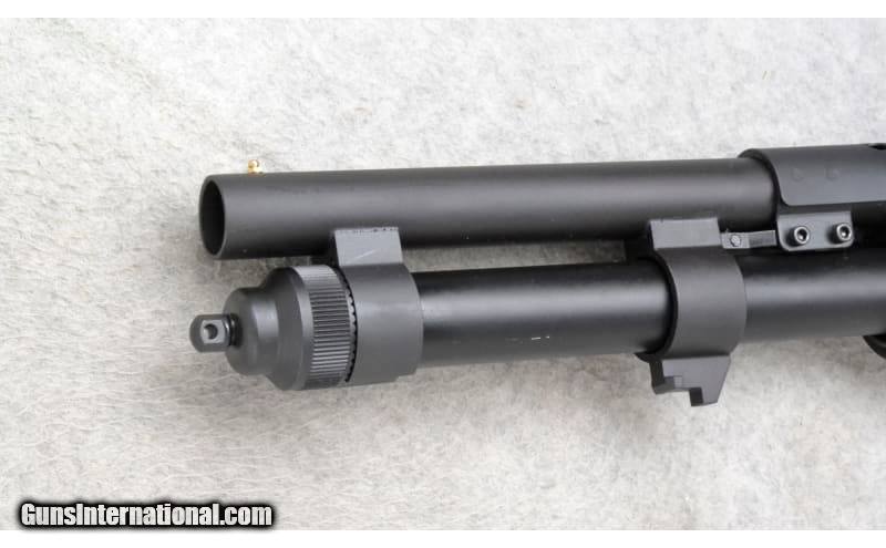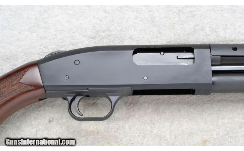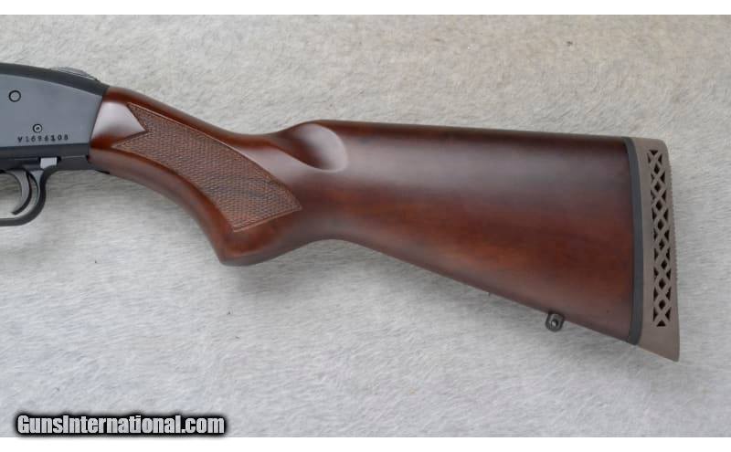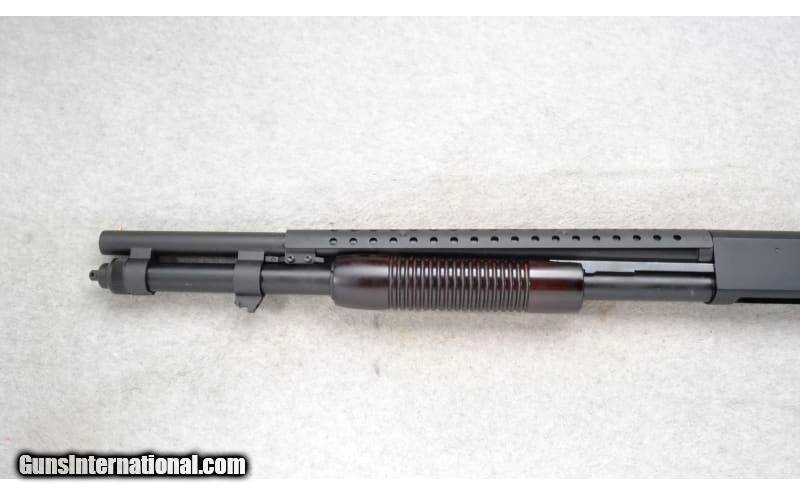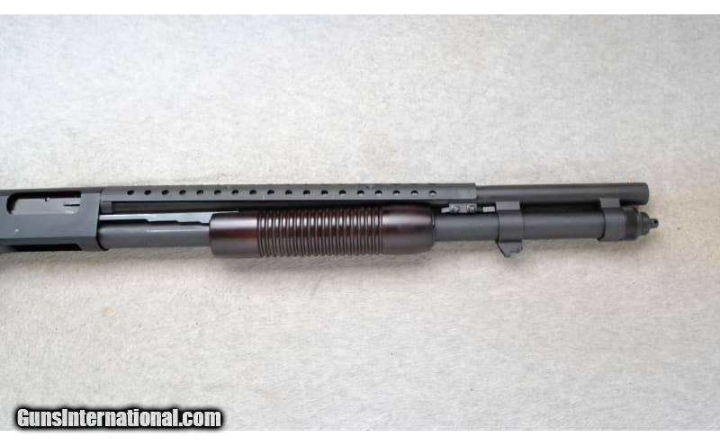 Description: This Mossberg Model 590 is a right hand pump action shotgun in 12 Ga. It has a 21 inch barrel with a top heat shield. A brass bead front sight. It is drilled and tapped. With a 2 3/4 inch chamber it has a fixed Cyl. choke and extended magazine tube. The butt stock is a checkered grip hardwood pistol grip. The forearm is a grooved grip hardwood. 12 Gauge SOLD Chambers: 2 3/4 inch. Metal Condition: Very Good. Wood Condition: Excellent. Bore Condition: Shiny. Barrels: 21 inch barrel with a heat shield. Stock Dimensions: LOP 14 inches. Fore End: Grooved grip hardwood. Butt Pad: Mossberg brown rubber recoil pad. Weight: 7 lb. 2 oz. Sights: Brass bead front. Drilled and tapped. Chokes: Fixed Cyl. Item Location: Richfield, WI |