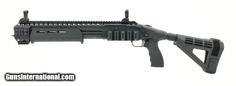 Description: Mossberg 590 Shockwave 12 Gauge shotgun. Tactical model with flip up sights and top rail. With Magpul forend, SB tactical brace and side saddle. Excellent condition.
