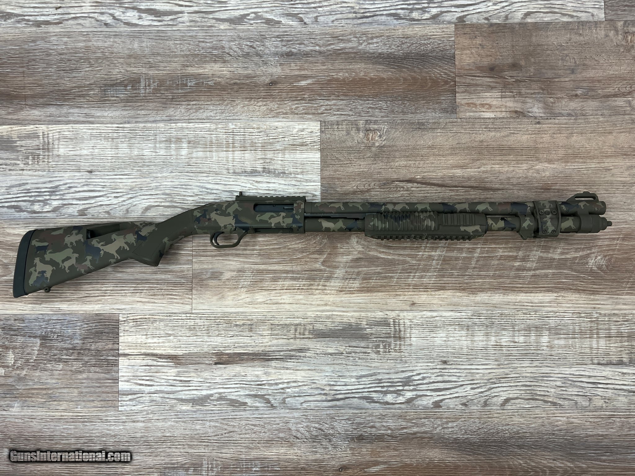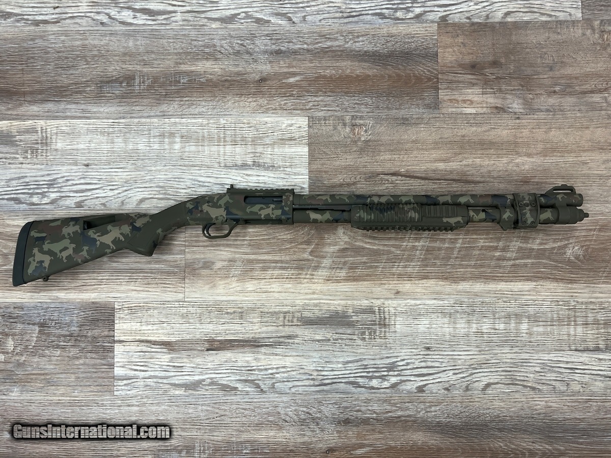 Description: Guns Listing ID: 915631 This pump action shotgun has a 19in barrel with a picatinny hand guard. It has ghost ring sights and polymer furniture. There is a Surefire 600 lumens flashlight and it has a unique paint job, goatflague SOLD Manufacturer: MOSSBERG Model: 590A1 Condition: Used - Non-Certified Barrels: 19 BARREL Gauge Info: 12 GA Finish: CAMOUFLAGE |