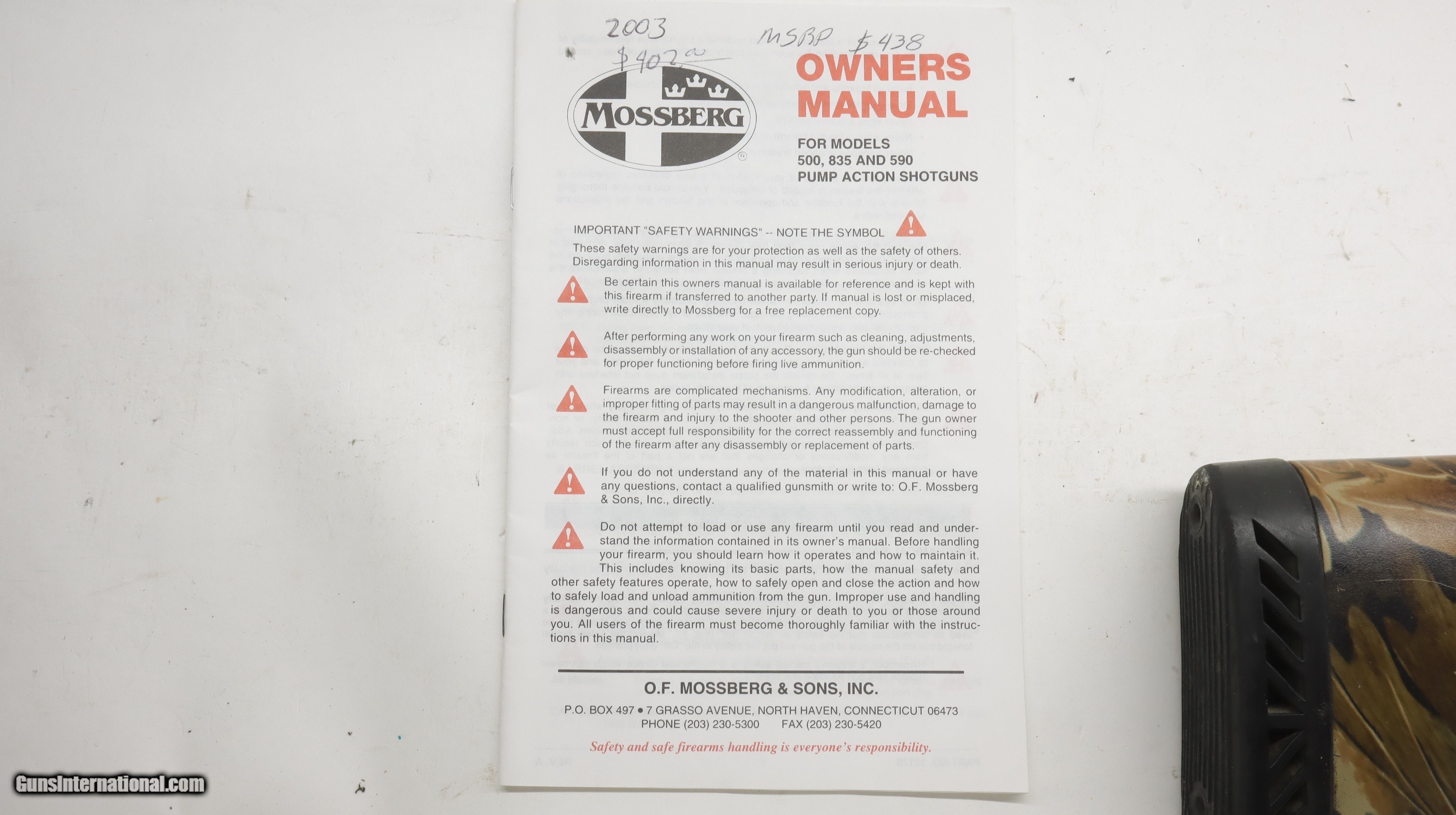 Description: Mossberg model 835 Ultramag, 12ga, 3.5:" Mag with scope. SN is UM3849xx. Factory finish on both stock and metal, factory ported, one factory choke included (Turkey choke). Nice clean gun with owners manual. We will trade for silver and gold. All my guns (except Layaway) come with a non-firing, 3 day unconditional return privilege, from the day UPS delivers to your dealer. Buyer pays shipping both ways if the gun comes back. Please make sure to make it to your FFL to inspect within the 3 days. We accept personal check, any certified funds. We can also take your credit card, +3%. Email me if you would like these pictures sent to you, they will come through bigger and better than on the listing page here. We do offer Layaway. Our standard terms are 25% down, 90 days. Initial deposit is not refundable. Layaway guns do not have an inspection or return policy. Email me with any questions. Please check your local laws to confirm it is legal to own in your state! Buyer pays $60 shipping and insurance in a brand new PLANO hard case to your FFL in the lower 48. AK, HI or PR is extra. I will ship to California, as long as it is legal, NO PROBLEM! I am a licensed FFL, and will include a copy of my FFL with the gun for your dealer’s records. I will ship to a C&R if the gun is eligible. I will ship to California, but you need to confirm the gun is legal where you are, California or other. WE BUY AND CONSIGN GUNS AND GUN COLLECTIONS! We will travel to pick up collections! I am always looking for good clean, old original Winchesters to buy, consign, or trade, especially Pre '64's model 70's and model 54's. WE ALSO TRADE FOR CLASSIC CARS AND TRUCKS! We also trade for gold and silver. SOLD Shotgun Gauge: 12 Gauge Manufacturer: Mossberg Model: 835 Barrel Length: 24 Condition: used |