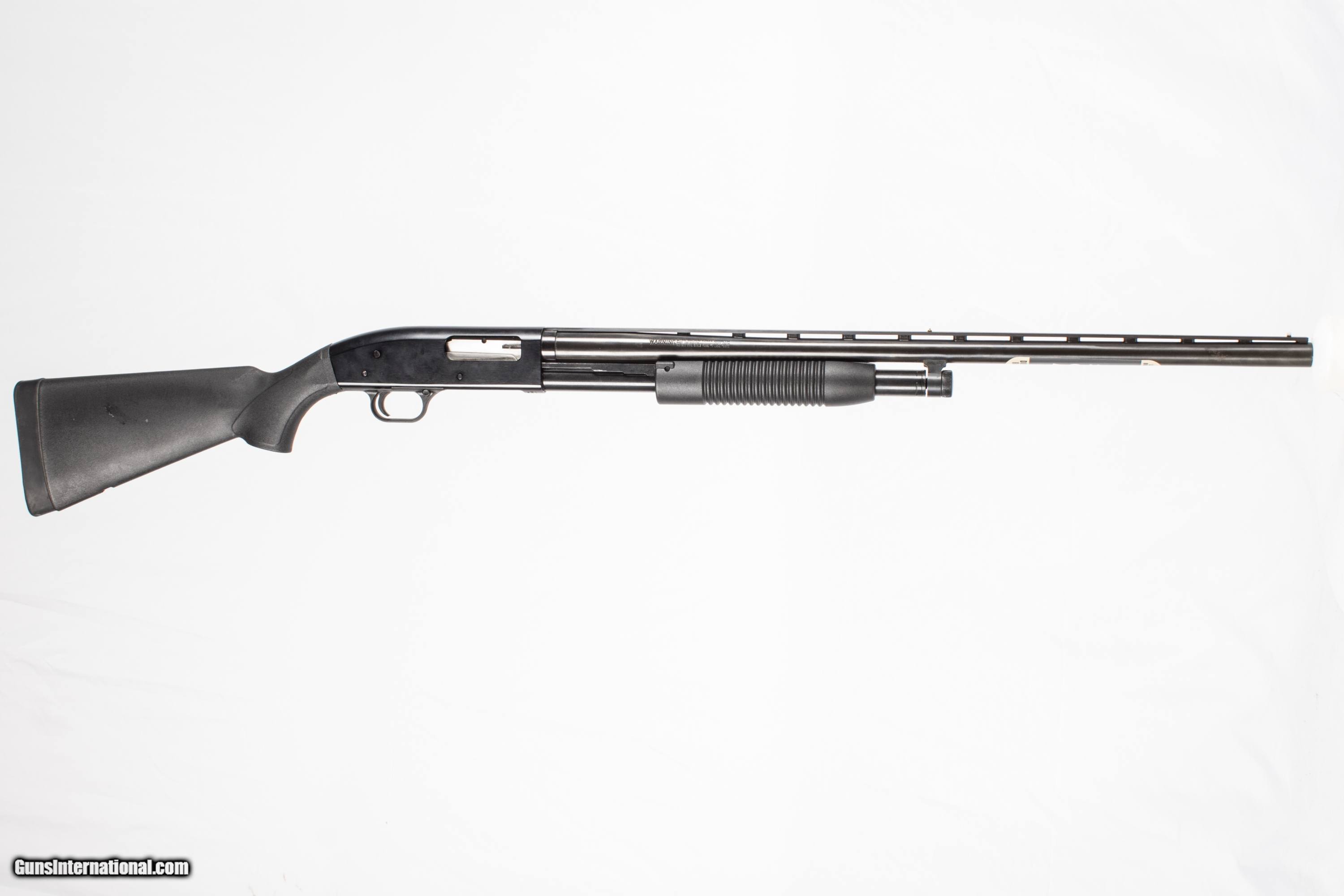 Mossberg Maverick 88 with a 28 inch barrel chambered for 3 inch 12 gauge shells bright & shiny bore screw in choke and 14 1/2 inch LOP. This gun is in excellent condition and is covered by Dury's Lifetime Warranty.