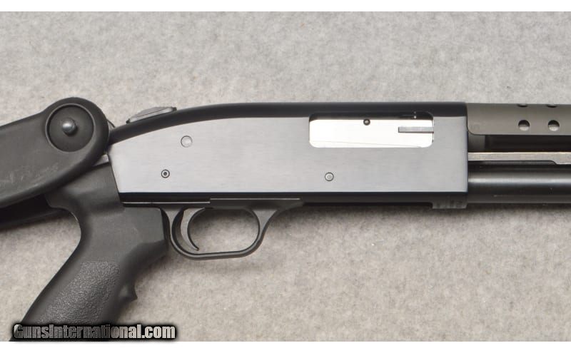 Description: This is a nice Mossberg Model 500 Tactical pump action folding stock shotgun in 20 gauge. The blued barrel and receiver frame are excellent. The blued 18 1/2" barrel is excellent with a bright shiny bore. The factory trigger is firm with a crisp release. The black polymer pistol grip and folding stock are excellent. This Mossberg 500 pump action shotgun does not come with a box or any accessories. 20 Gauge SOLD Chambers: 2 3/4" or 3 Metal Condition: Excellent Bore Condition: Excellent Barrels: 18 1/2 Triggers: Factory Black Curved Smooth Stock Dimensions: LOP 14 1/4" Height 7" Length 38 1/4 (28 1/2") Fore End: Black Ribbed Polymer Butt Pad: Black Folding Leaf Weight: 6 lbs. 3 oz. Sights: Front Brass Bead Chokes: Cylinder Item Location: West Chester, OH |