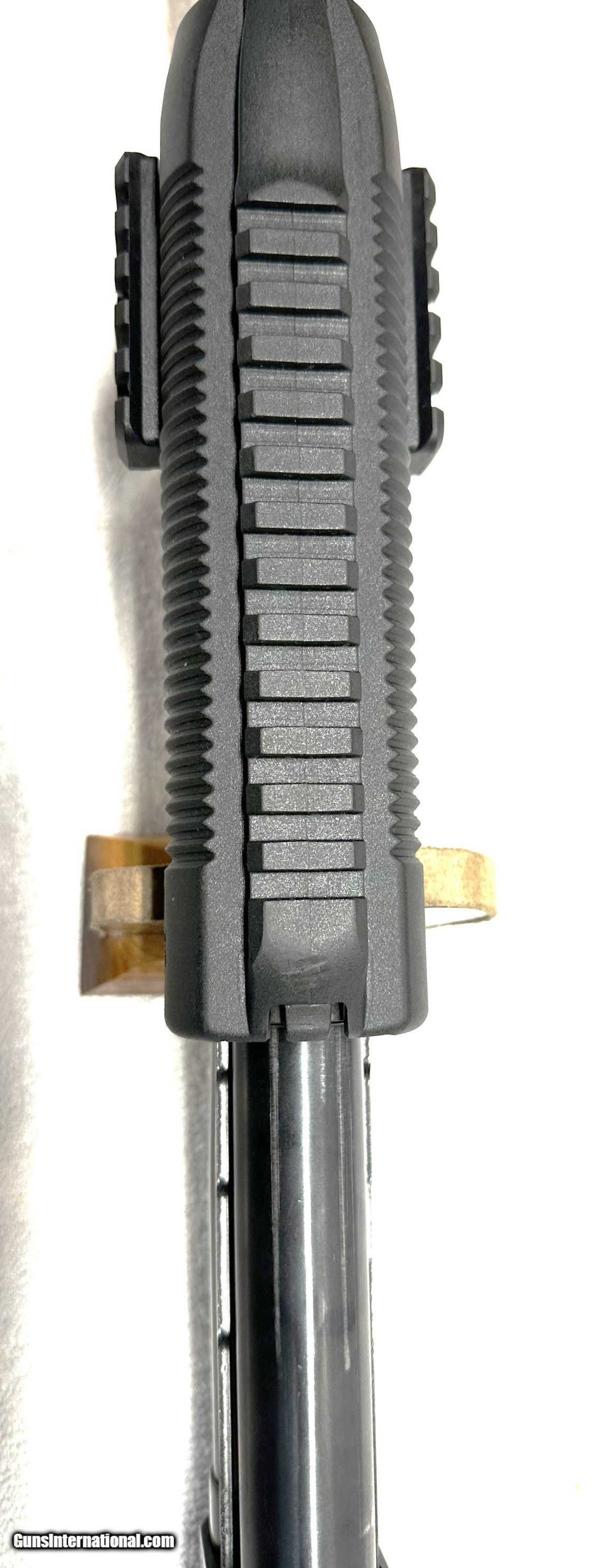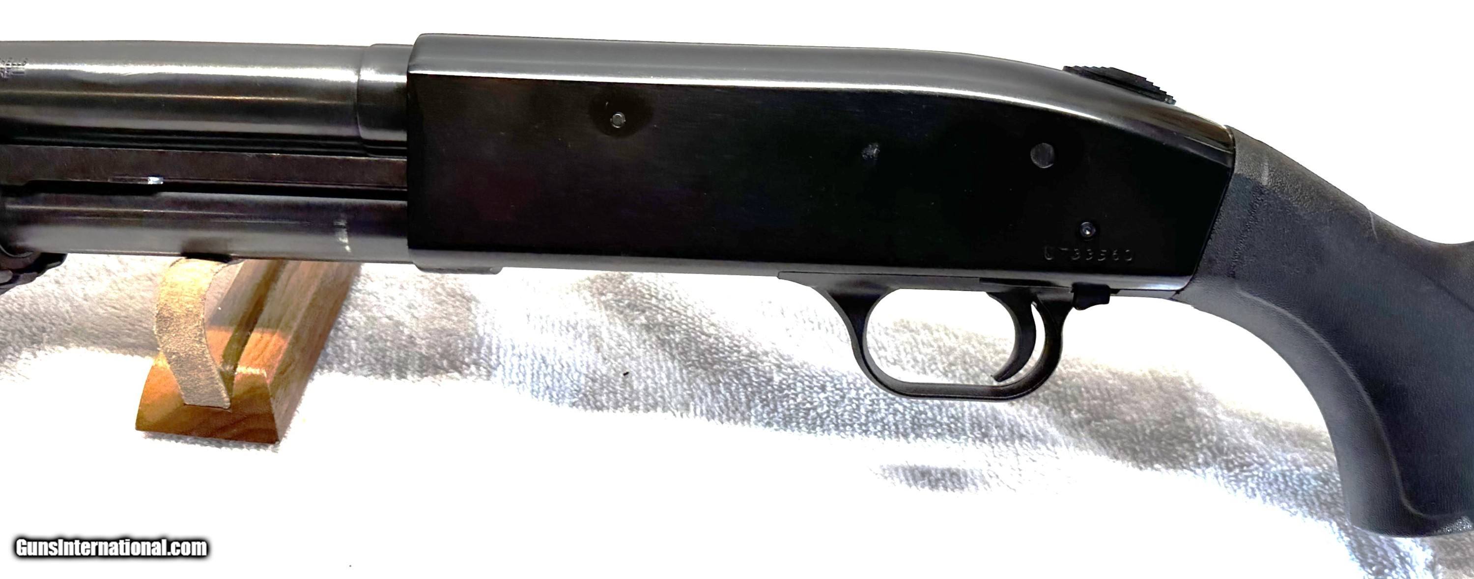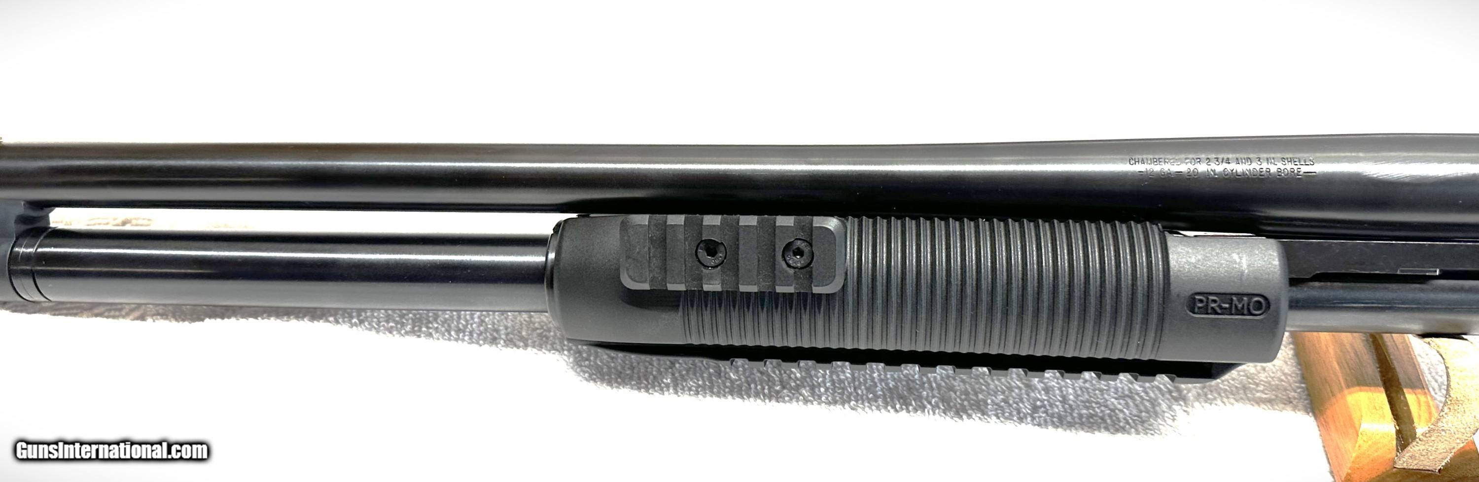 Description: Mossberg Model 500 Riot , 12 Ga, 20" barrel, Extended magazine. VG bore. Black synthetic stock with custom PR-MO rail system. 99% condition. S/N V73356X SOLD Shotgun Gauge: 12 Gauge |