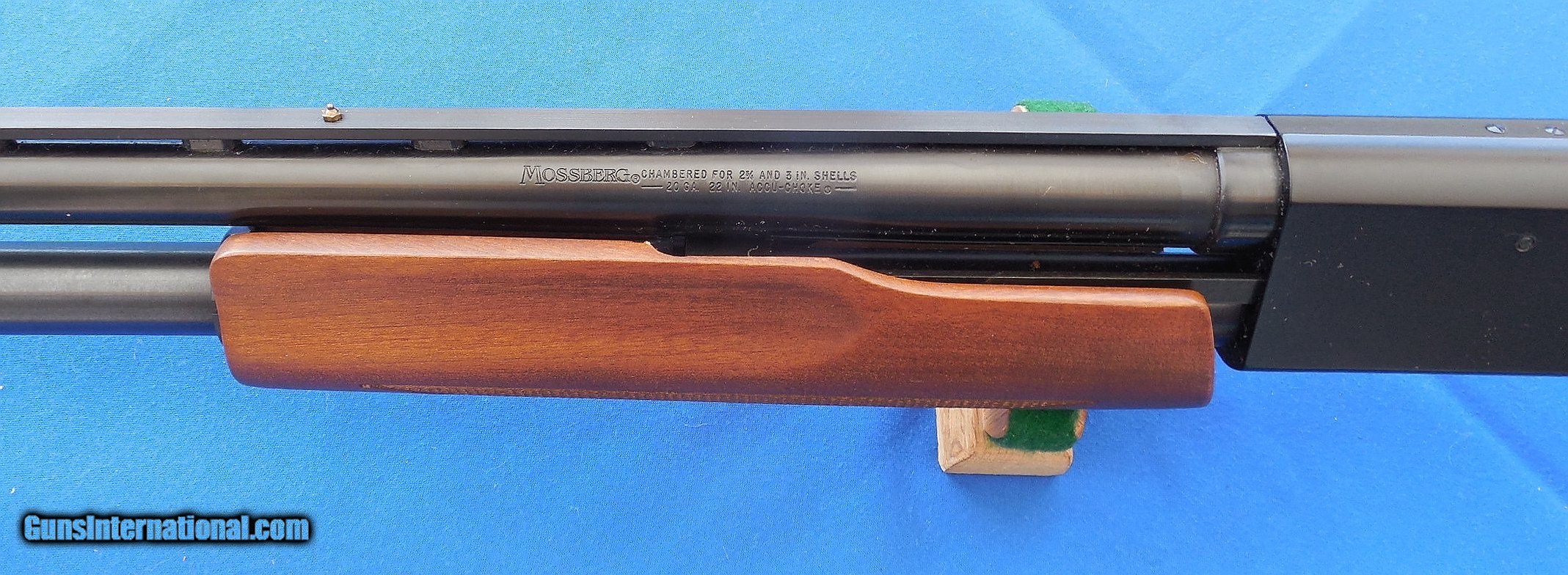 Description: SOLD Pending Funds / Mossberg Model 500 Shotgun. serial # T 666070, cal. 20 ga, with a 22” ribbed ACCU-Choked barrel and a excellent bore. The metal surfaces retain about 100% original blue. The checkered walnut pistol grip buttstock and forend rate excellent with the Mossberg Decal still affixed to the left buttstock. The front sight has a small white bead. This shotgun as photographed and described is in overall very good plus plus - excellent condition all it needs is its box. Inv. : # CJN 06 SOLD |