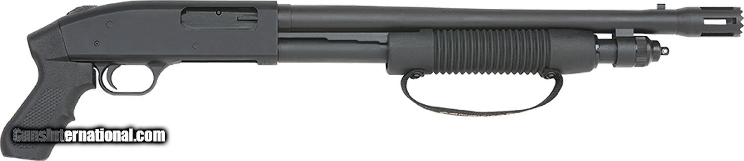 Description: NEW IN STOCK Mossberg 590, Cruiser, Pump Action, 12 Gauge, 3" Chamber, 18.5" Cylinder Barrel, Blue Finish, Pistol Grip, 7Rd, Bead Sight 50697