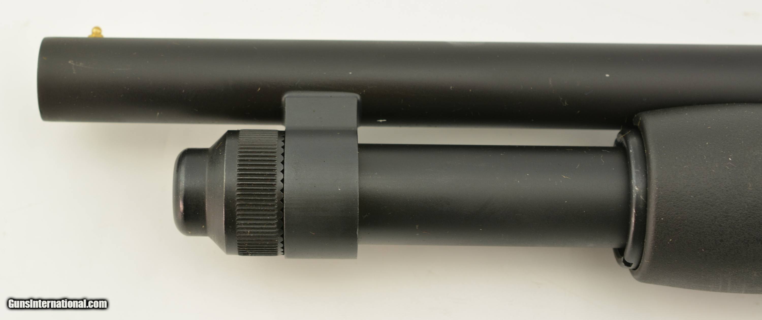 Description: Serial #V1233134, 12 Gauge (2 ??" & 3"), 18' inch barrel with a cylinder bore. This is the Mossberg Model 590 slide action shotgun featuring synthetic stock and forearm with an extended magazine tube. The Tactical / Home Defense shotgun is in excellent condition retaining virtually all, 96-97% of the original matte finish on the barrel and frame with some light use marks on the magazine tube and top of the receiver with some roughness around optics mount screw holes. The black synthetic stock and forearm are in excellent condition with some light use marks. It comes in the original box numbered to the gun with owners manual. FFL SOLD |