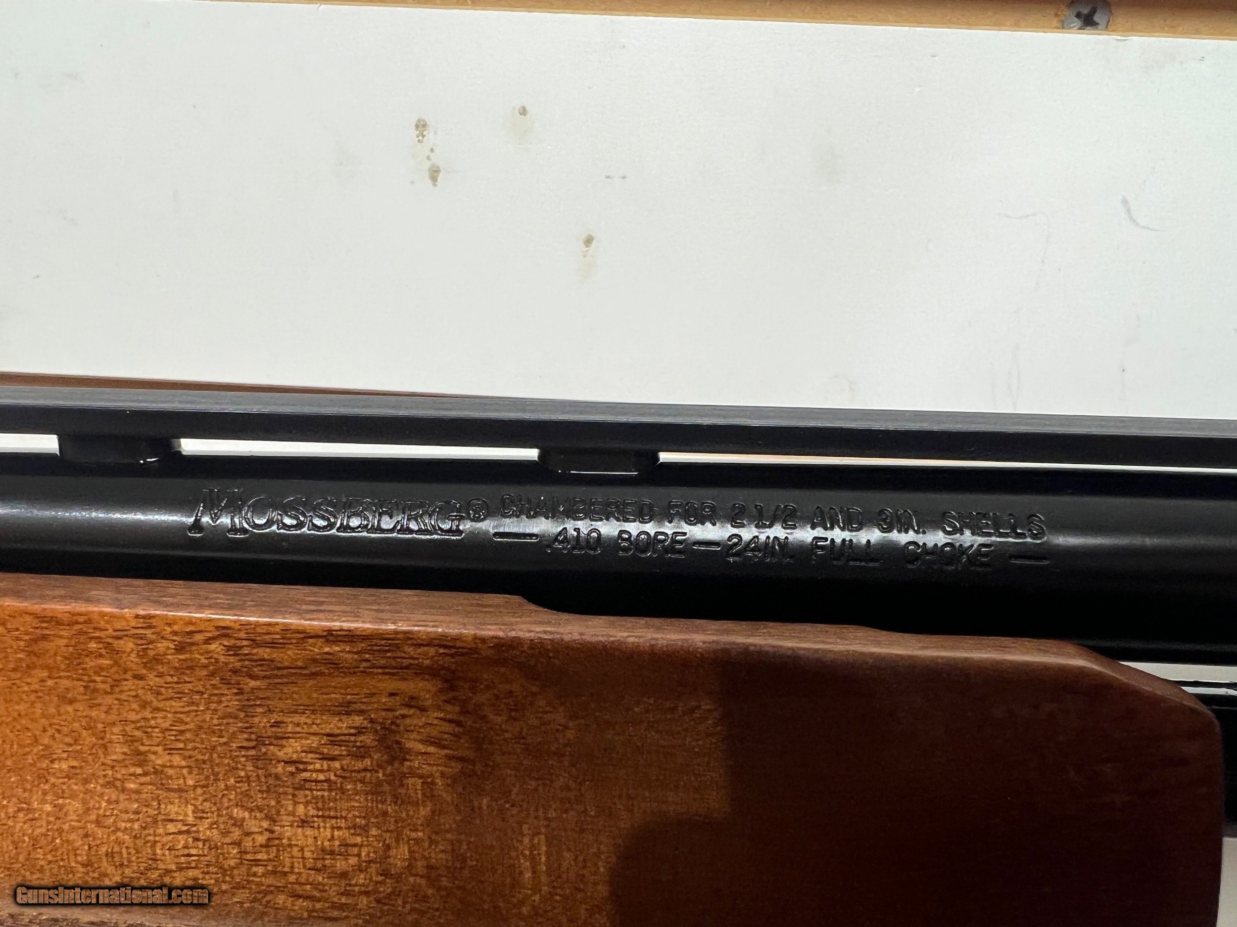 Description: new MOS 500 FIELD 410M/24F HRDWD new in box (CALIBER:410 GAUGE); (MAG CAPACITY:2.5 5+1); (MODEL SERIES:500); (CAPACITY:2.5 5+1); (FINISH:BLUE); (STOCK:CHECKERED HARDWOOD); (SIGHTS:BEAD); (OVERALL LENGTH:43.75); (FEATURES:SLING SWIVEL STUDS); (GUN TYPE:SHOTGUN: PUMP ACTION) ;(ACTION:PUMP ACTION); (BARREL LENGTH:24 VENT RIB); (DEPT:LONG GUN) Buyer pays shipping Millers Gun Center Located in New Castle, Delaware "Home of TAX-Free shopping" No Credit Card Fees SOLD Serial Number: V1495532 |