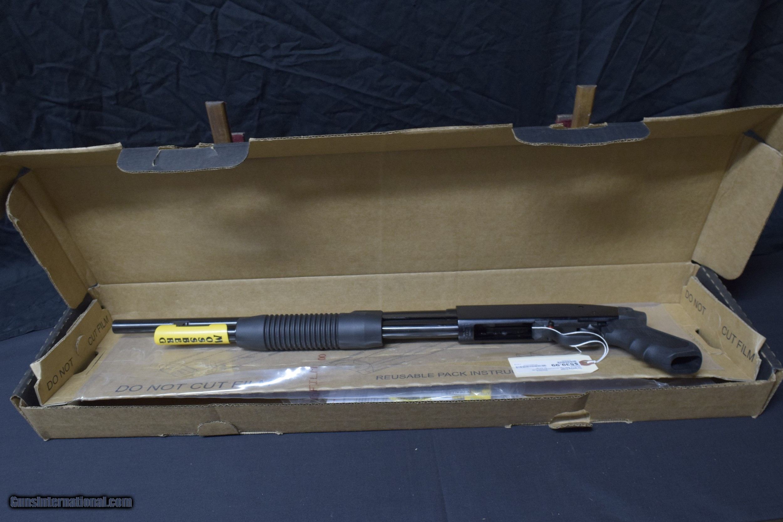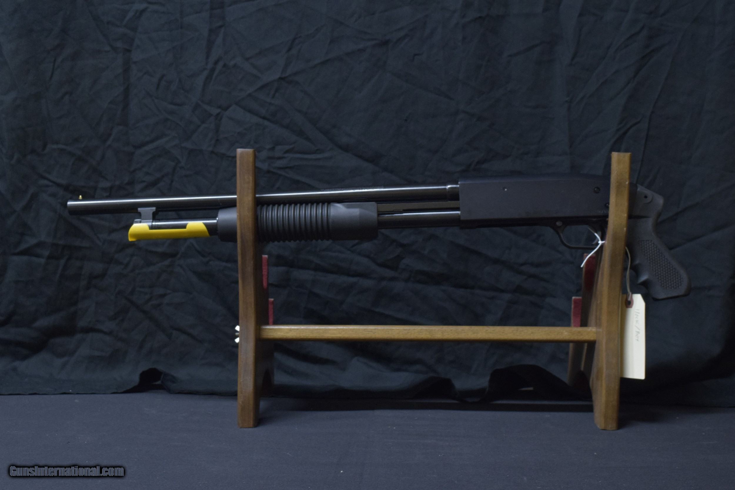 Description: Maverick 88 Cruiser models are offered in 6-shot (18-1/2 inches barrel) or 8-shot (20 inches barrel) configurations, and all are fitted with our traditional pistol grip. Chainsaw top handle, stand-off barrel, or 500 flex system, for ease of changing to a full-length stock if desired. The cross-bolt safety featured on all Maverick 88 models provides the benefit of an ergonomic and quick engagement of the safety on these pistol grip configurations. This package comes with the original box. The overall condition is great with some wear on the receiver. Pre-Owned - Mossberg Maverick M88 Pump Action 20GA 18.5"