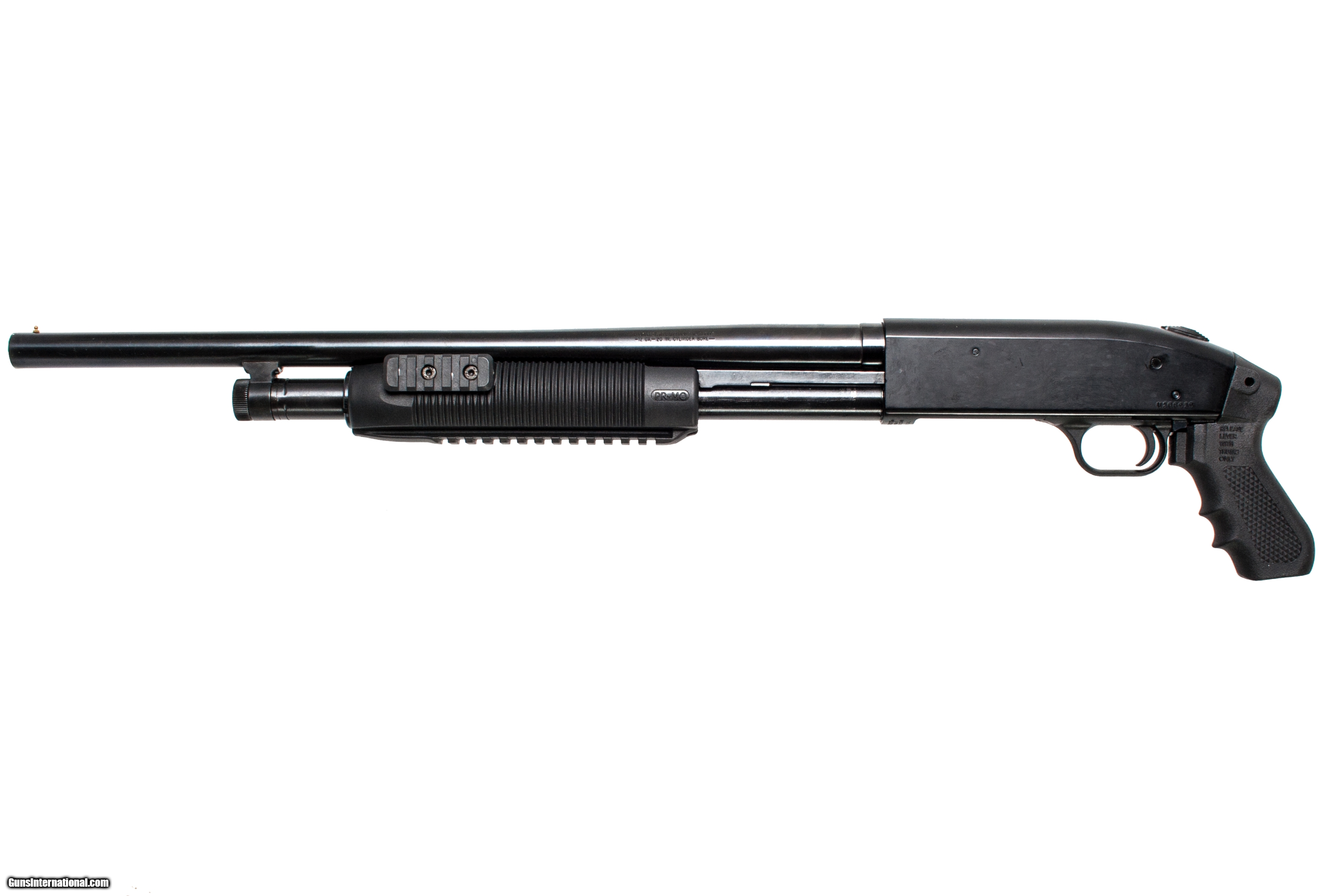 Mossberg 500 chambered in 12 ga with a 20 inch barrel and an extra butt stock. This gun is in excellent condition and is covered by Dury's Lifetime Warranty.