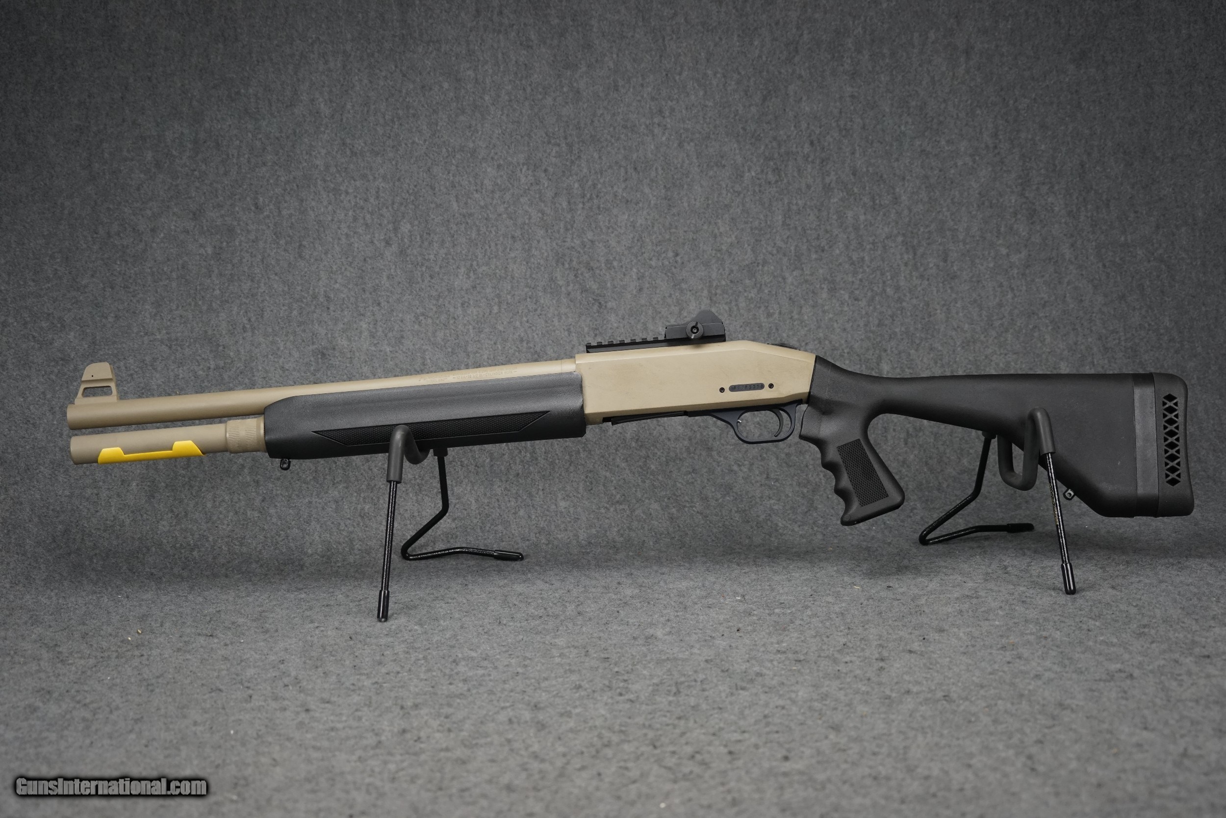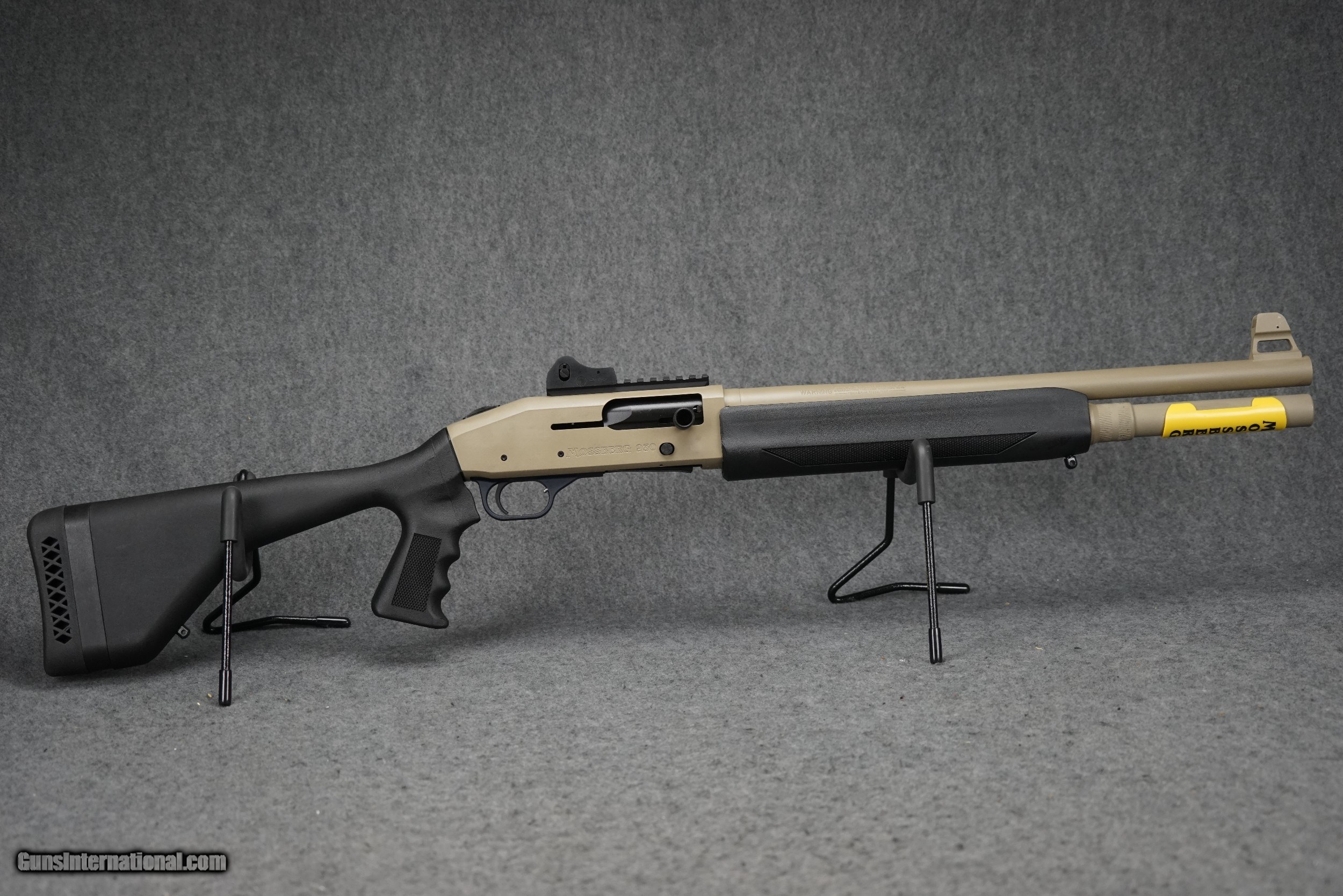 Description: The 930 platform boasts a reputation as the rugged, dependable autoloader perfect for both hunting and security applications. It features dual gas-vent system, vent rib barrel, quick-empty magazine release button for easy unloading, drilled and tapped receiver, and adjustable drop at comb with stock drop spacer system. The Tactical model is ideal for when every second counts. Its SPX model features a ghost ring rear & fiber optic front sights, cylinder bore, and matte finish. Gauge 12 Capacity 7+1 Chamber 3" Barrel Length 18.5" Sight/Base Ghost Ring, Front FO Choke Cylinder Bore LOP Type Fixed LOP 13.75" Barrel Finish Tan Stock Finish Synthetic (Black Pistol Grip) Weight 7.25 Length 38.75" SOLD Shotgun Gauge: 12 Gauge Manufacturer: Mossberg Model: 930 SPX Tactical Barrel Length: 18.5 Condition: BRAND NEW |
