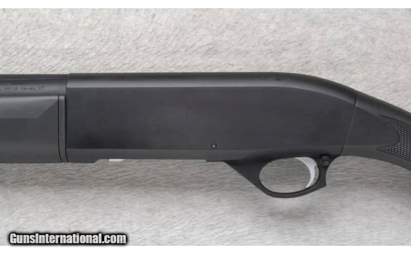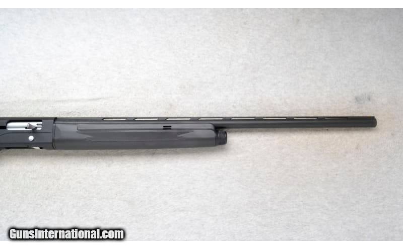 Description: This Mossberg Model SA-20 is a right hand semi-auto shotgun in 20 Ga. It has a 26 inch ventilated rib barrel. A brass bead front sight. With a 3 inch chamber it comes with 5 choke tubes. The butt stock is a checkered grip black polymer pistol grip. The forearm is a checkered grip black polymer with finger grooves. 20 Gauge SOLD Chambers: 3 inch. Metal Condition: Very Good. Some very minor use marks. Bore Condition: Bright and shiny. Barrels: 26 inch ventilated rib barrel. Stock Dimensions: LOP 14 1/4 inches. Fore End: Checkered grip black polymer with finger grooves. Butt Pad: Ribbed black rubber recoil pad. Weight: 6 lb. 4 oz. Sights: Brass bead front. Chokes: Comes with 5 choke tubes. Item Location: Richfield, WI |