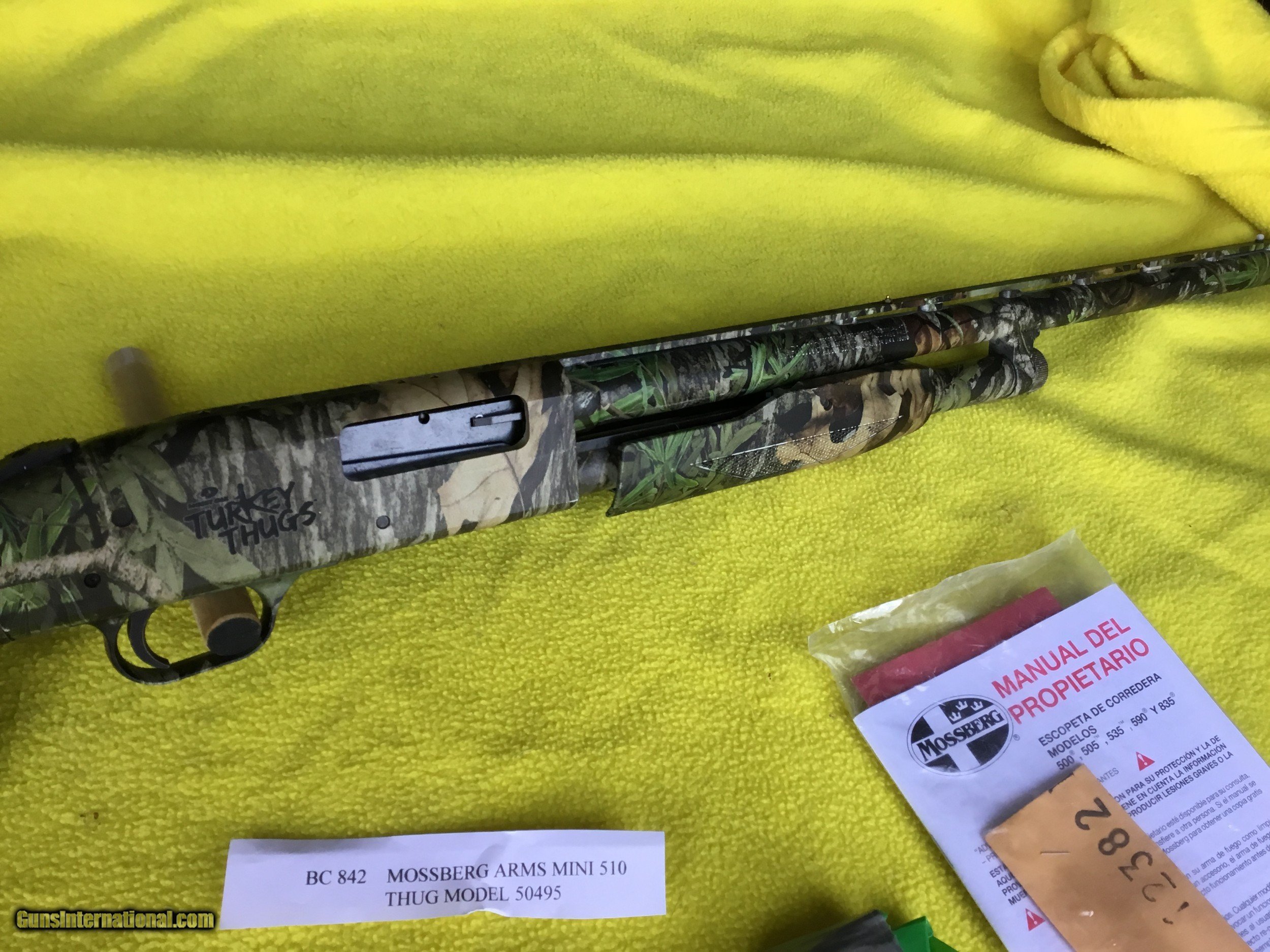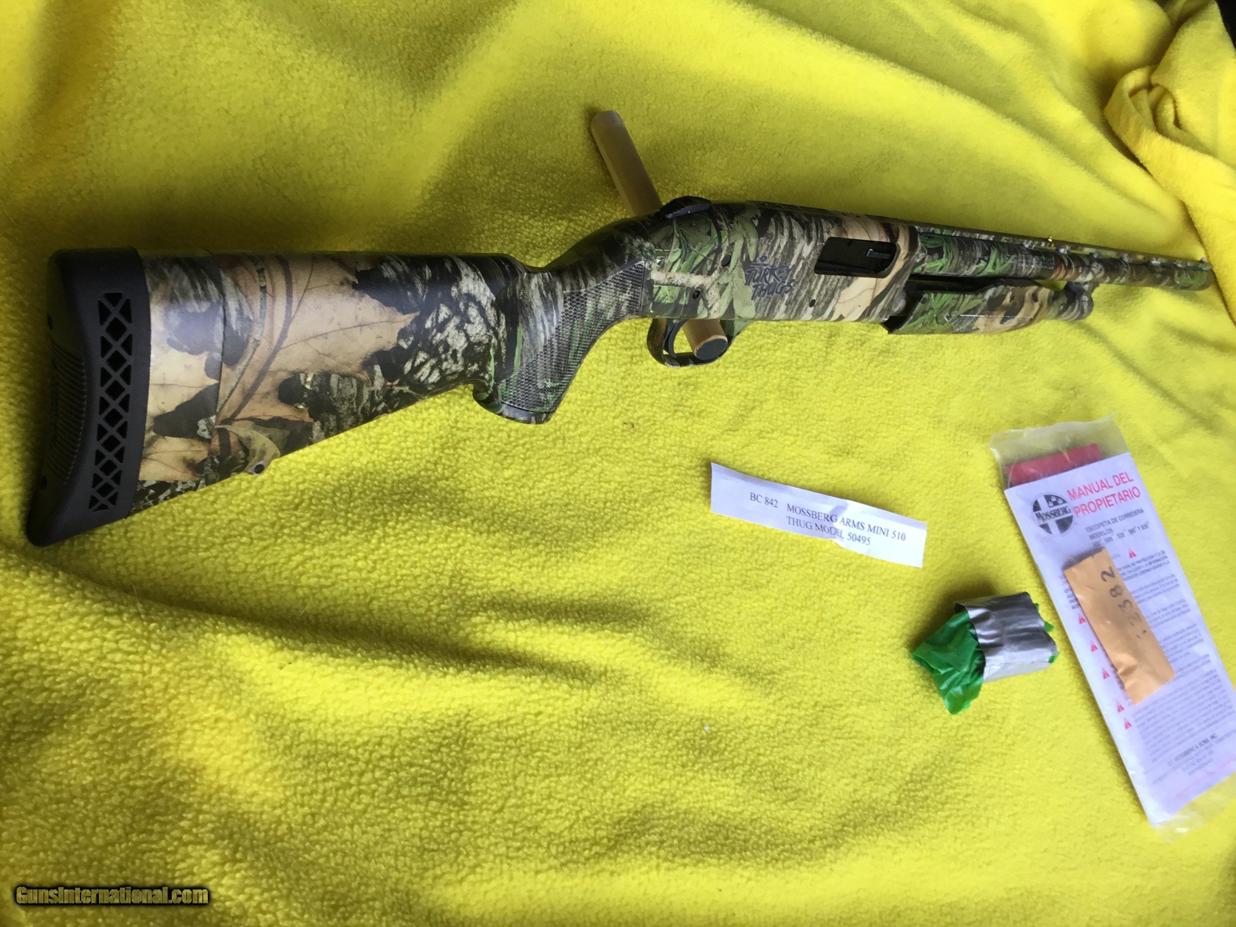 Description: Mossburg Arms Mini 510 Thug; Model 50495; Serial Number U985409 $480.00 plus $60.00 s/h, credit card + 5%; new without box 20 gauge shotgun SOLD Shotgun Gauge: 20 Gauge Manufacturer: Mossburg Model: 50495 Serial Number: U985409 Condition: 100 % Metal Condition: 100 % Chokes: 4 |