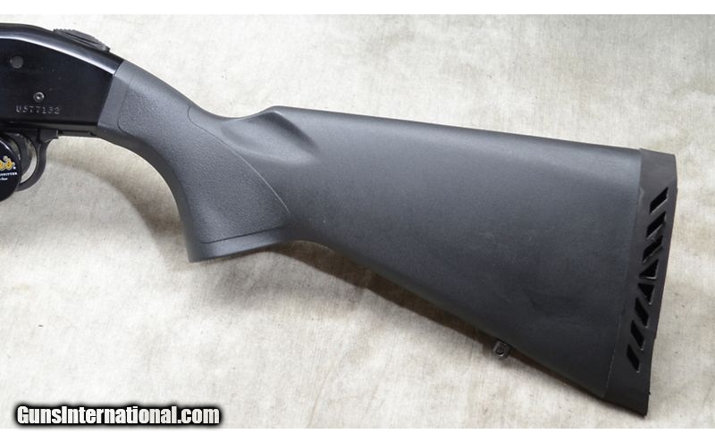 Description: Nice little pump for a nice little walk in the woods. All black plastic, ventilated rib, lightweight and fast handling. .410 Gauge SOLD Chambers: 5 Metal Condition: Excellent. It could pass for new. Wood Condition: Excellent. It could pass for new. Bore Condition: Bright and shiny. Barrels: 24 inch Triggers: Factory trigger. Stock Dimensions: 13-inch LOP. Fore End: Black plastic. Butt Pad: Ventilated rubber pad. Weight: 6 lb - 1 oz. Sights: Ventilated rib with white and brass beads. Chokes: Fixed full choke. Item Location: Rogers |