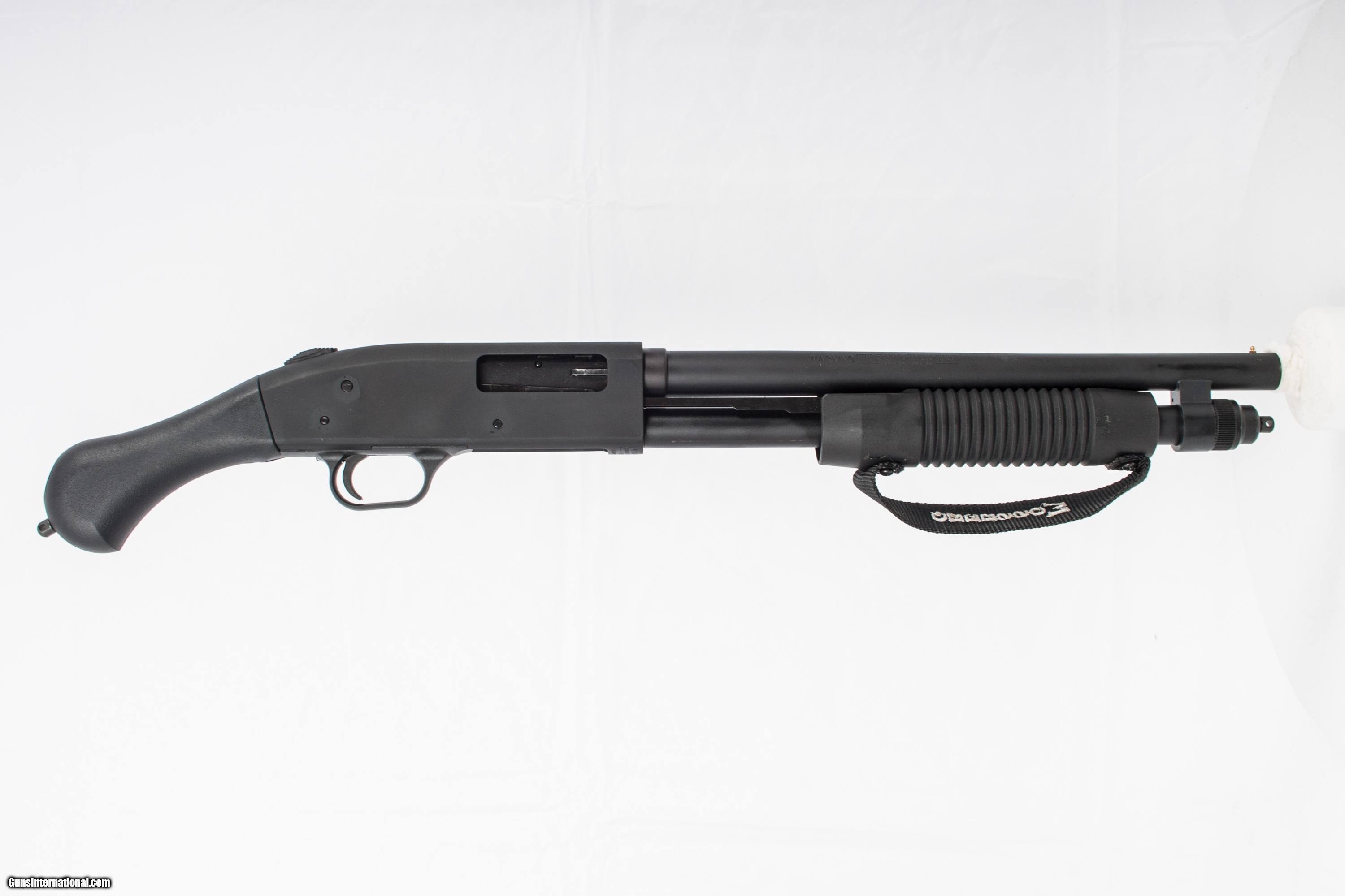 MOSSBERG 590 SHOCKWAVE CHAMBERED IN 20 GAUGE WITH A 14.5 INCH BARREL. THIS GUN IS IN EXCELLENT CONDITION AND IS COVERED BY DURY'S LIFETIME WARRANTY.