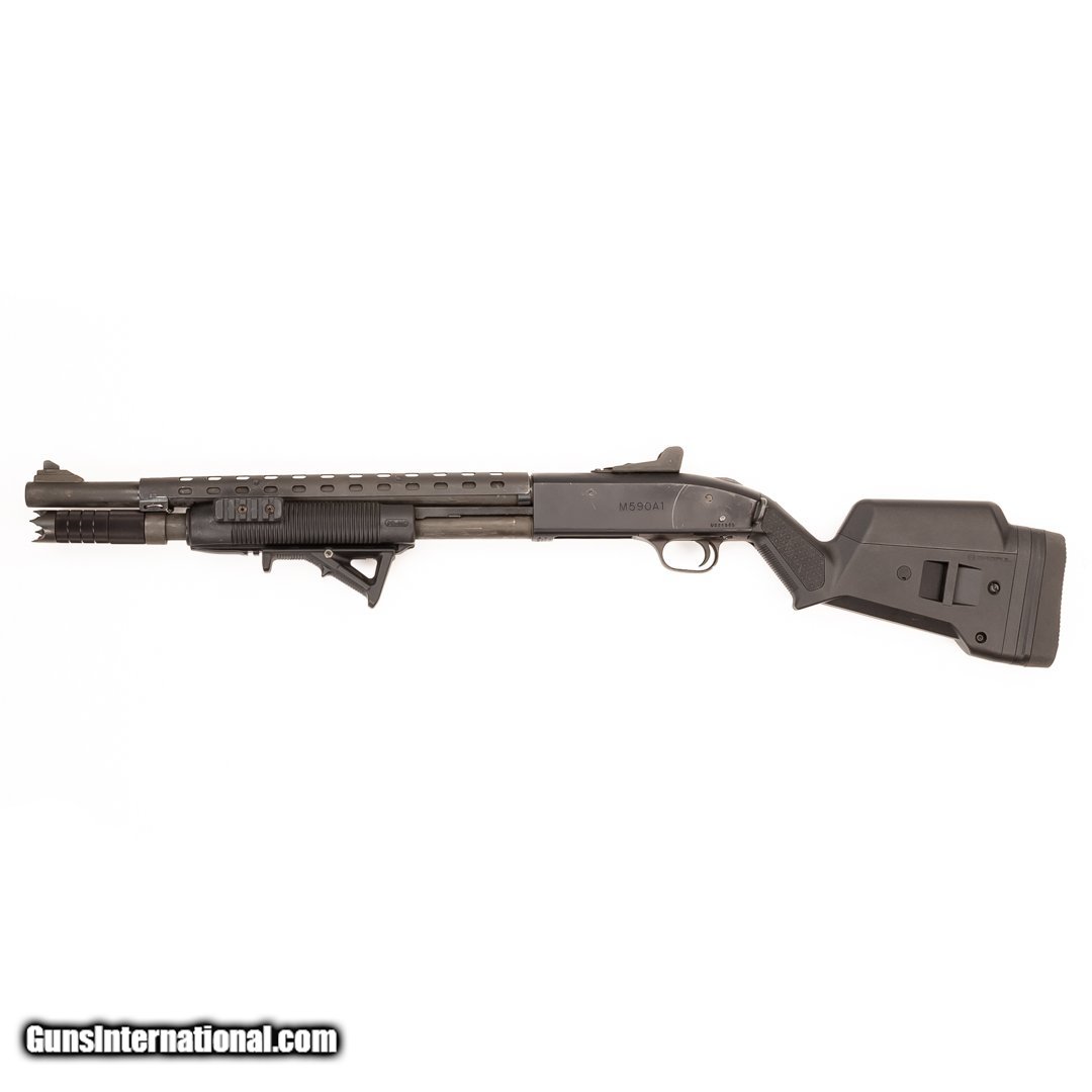 Description: Guns Listing ID: 1337866 This Mossberg has a 3\" chamber and a CYL bore barrel and is loaded with extras! It features a Magpul stock, angled foregrip, Taccom Standoff magtube extender, Fab Defense pump with 2\" side Picatinny rails, heat shield, and a rear peep sight. It comes with an extra Knoxx pistol grip adjustable stock with a 5-shell side saddle and battery holder. Get the best bang for your buck when you get a Certified Used Firearm . When you see the Certified Used stamp on any of our firearms, you can be confident that you‚‚re getting exactly what you want – a gun only in very good to excellent condition and held to the highest quality standard. All Certified Used Guns come with a ‚‚no questions asked‚‚ return policy . PLUS, ALL CERTIFIED USED GUNS SHIP FR SOLD Manufacturer: MOSSBERG Model: M590A1 Condition: Used - Non-Certified Barrels: 18.5 BARREL Gauge Info: 12 GA Finish: BLACK |