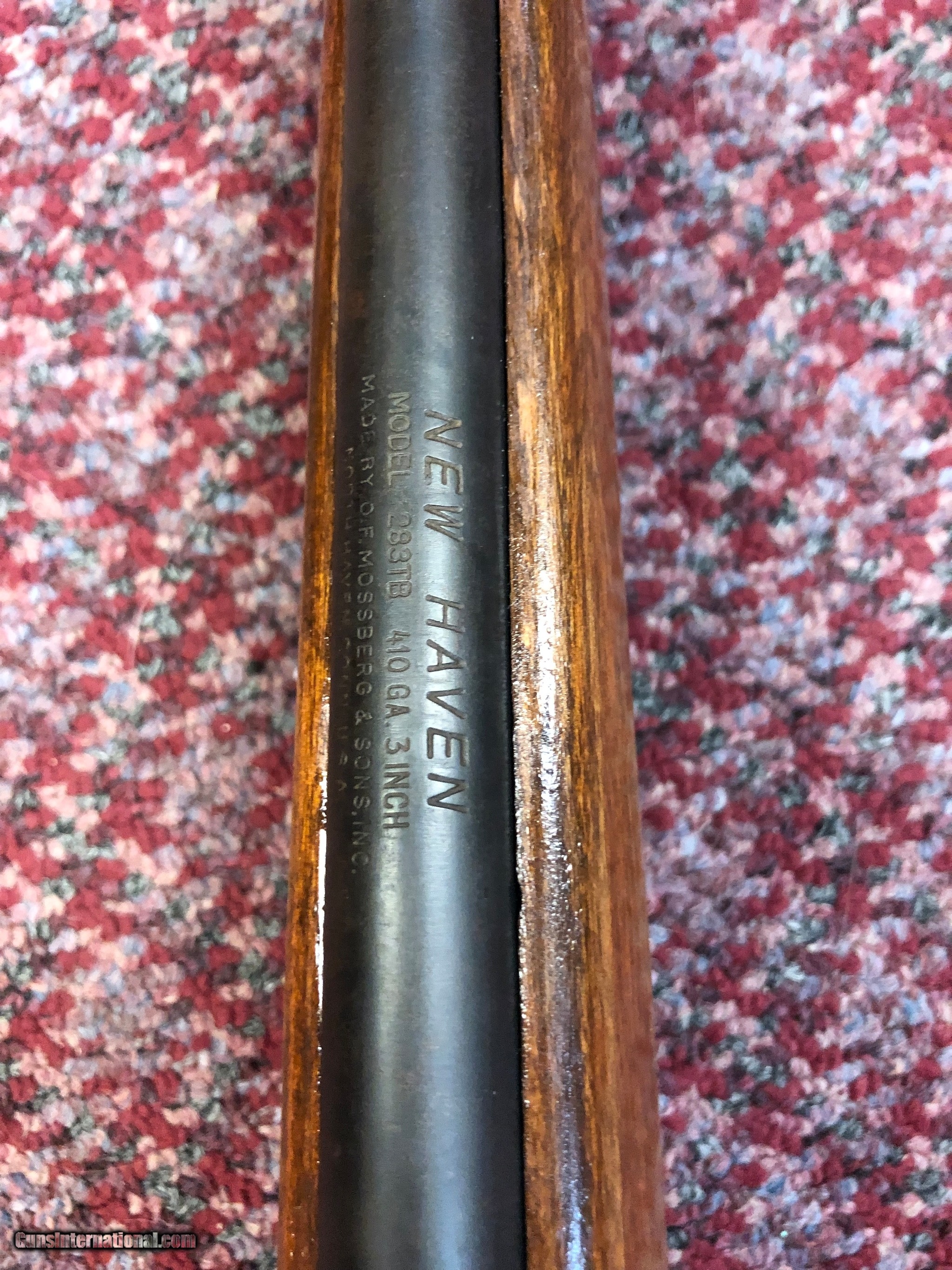 Description: Guns Listing ID: 1115921 Slight scuffs/scratches Slight rust SOLD Manufacturer: MOSSBERG Model: New Haven 283TB Caliber Info: .410 GA Condition: Used - Non-Certified Barrels: 24 BARREL Finish: WOOD AND BLACK |